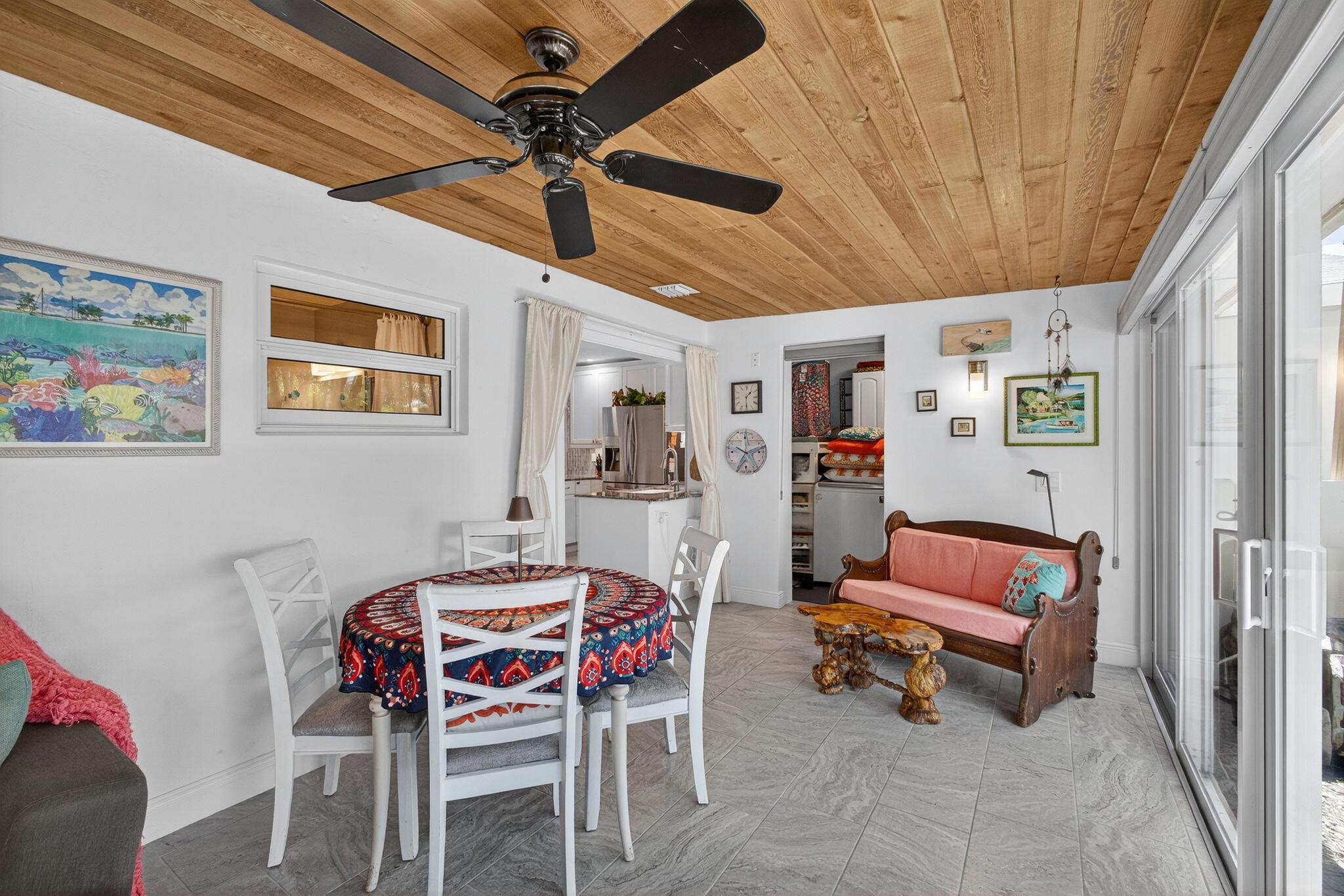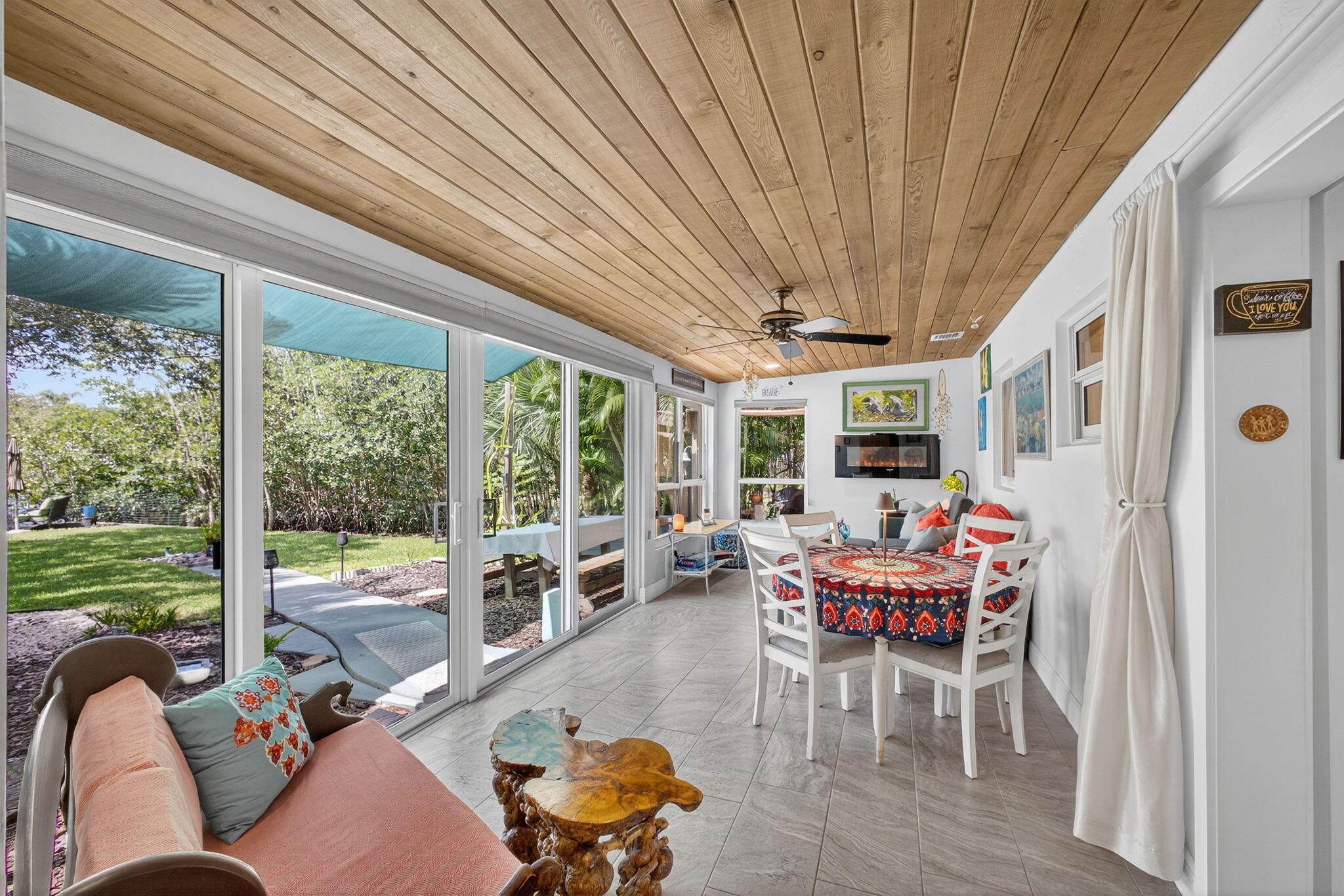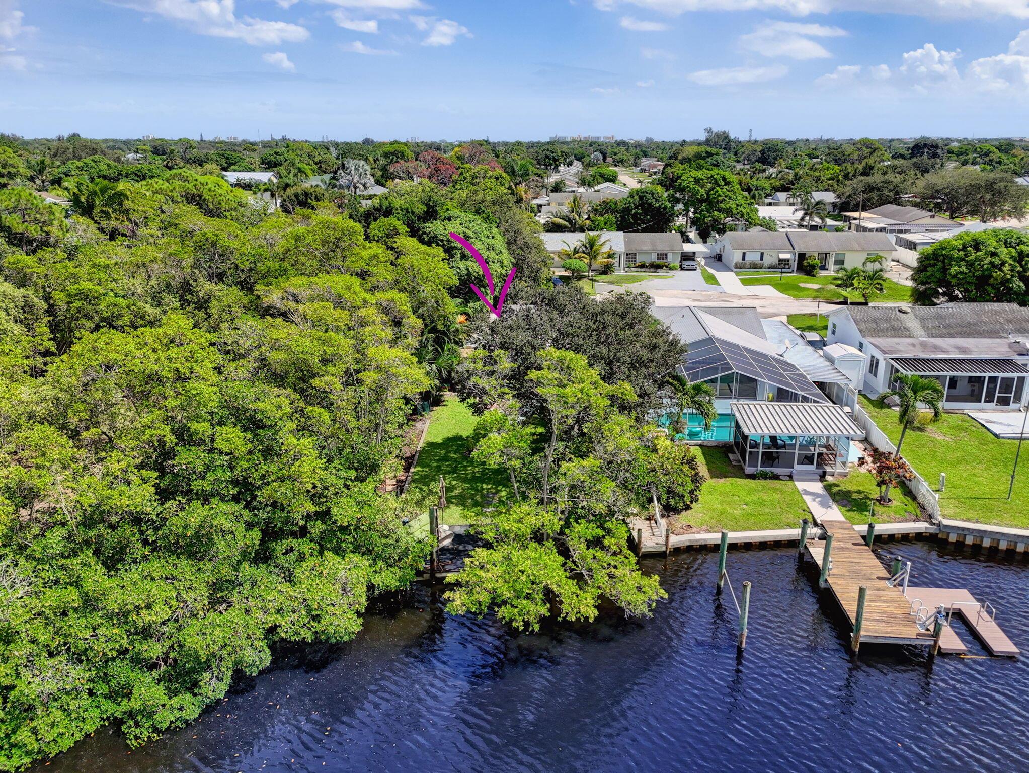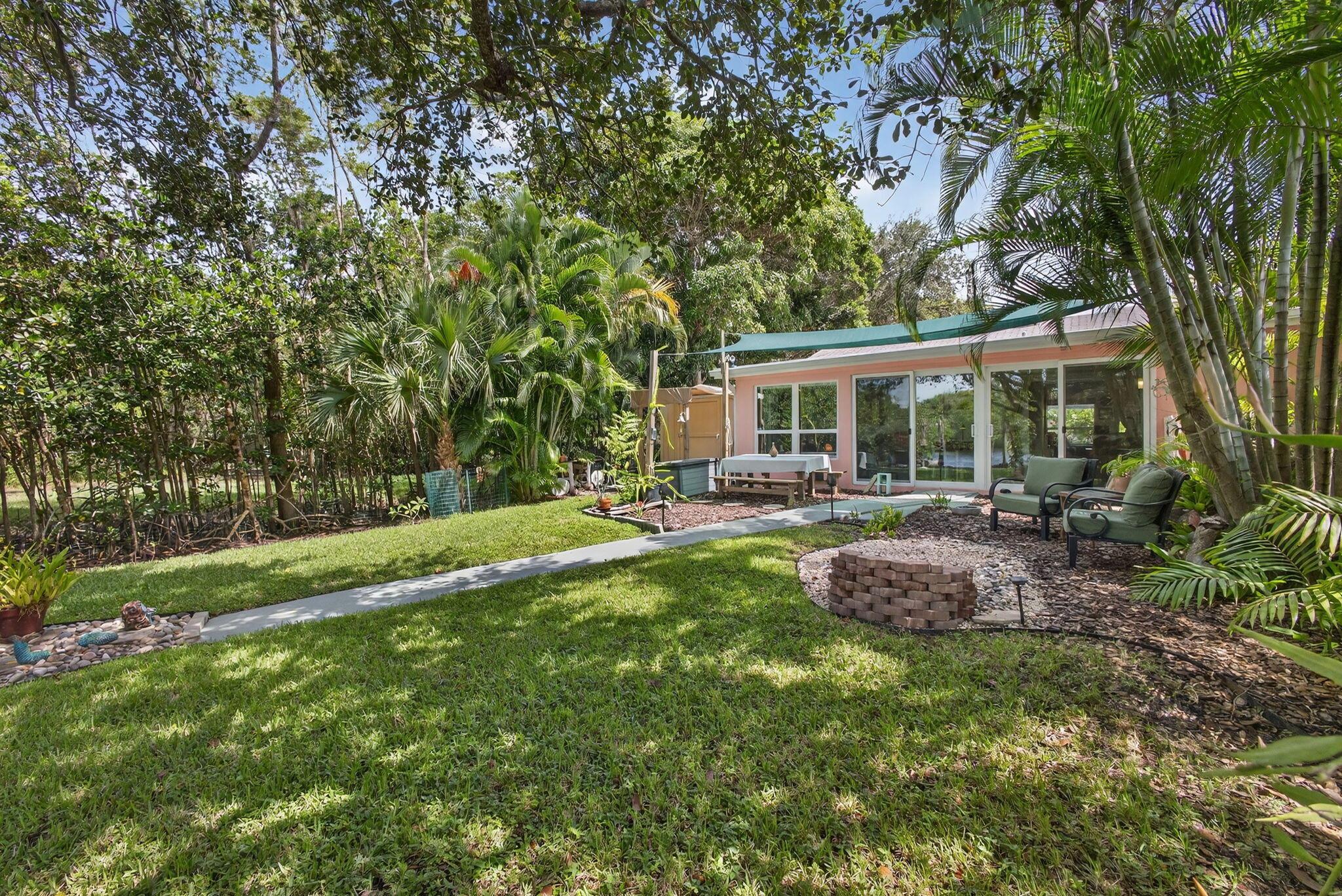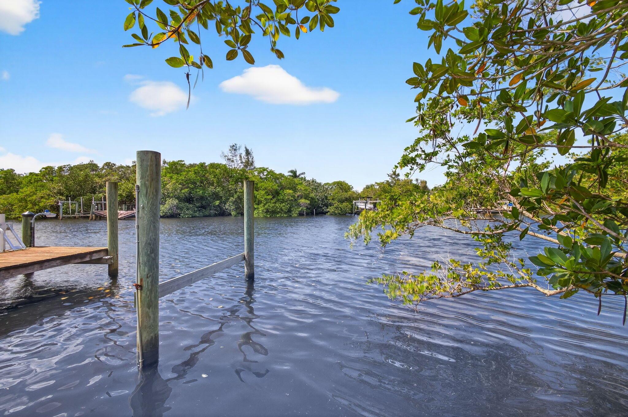 Discover a rare retreat on Jones Creek with direct water access and complete privacy. Perfectly serene and spacious yard inviting relaxation, capturing the essence of effortless Florida Living. Step outside to your own floating dock, gather around the fire pit under the stars, and launch your kayaks or paddleboards straight from your backyard, where the creek flows to the Loxahatchee River and Jupiter Inlet. Inside, an open-concept kitchen shines with custom cabinetry, granite countertops, and stainless-steel appliances, creating a stylish and functional heart of the home. The primary suite features a spacious walk-through closet and a spa-inspired bath with designer tile and quartz finishes. The guest bath includes a jacuzzi tub, perfect for unwinding after a day on the water.