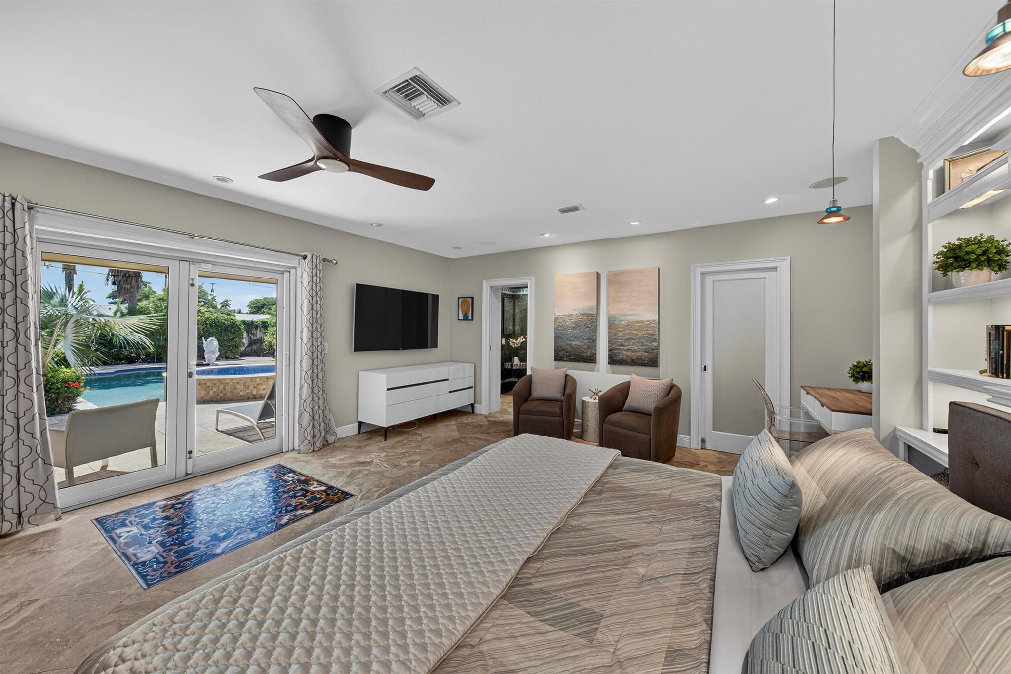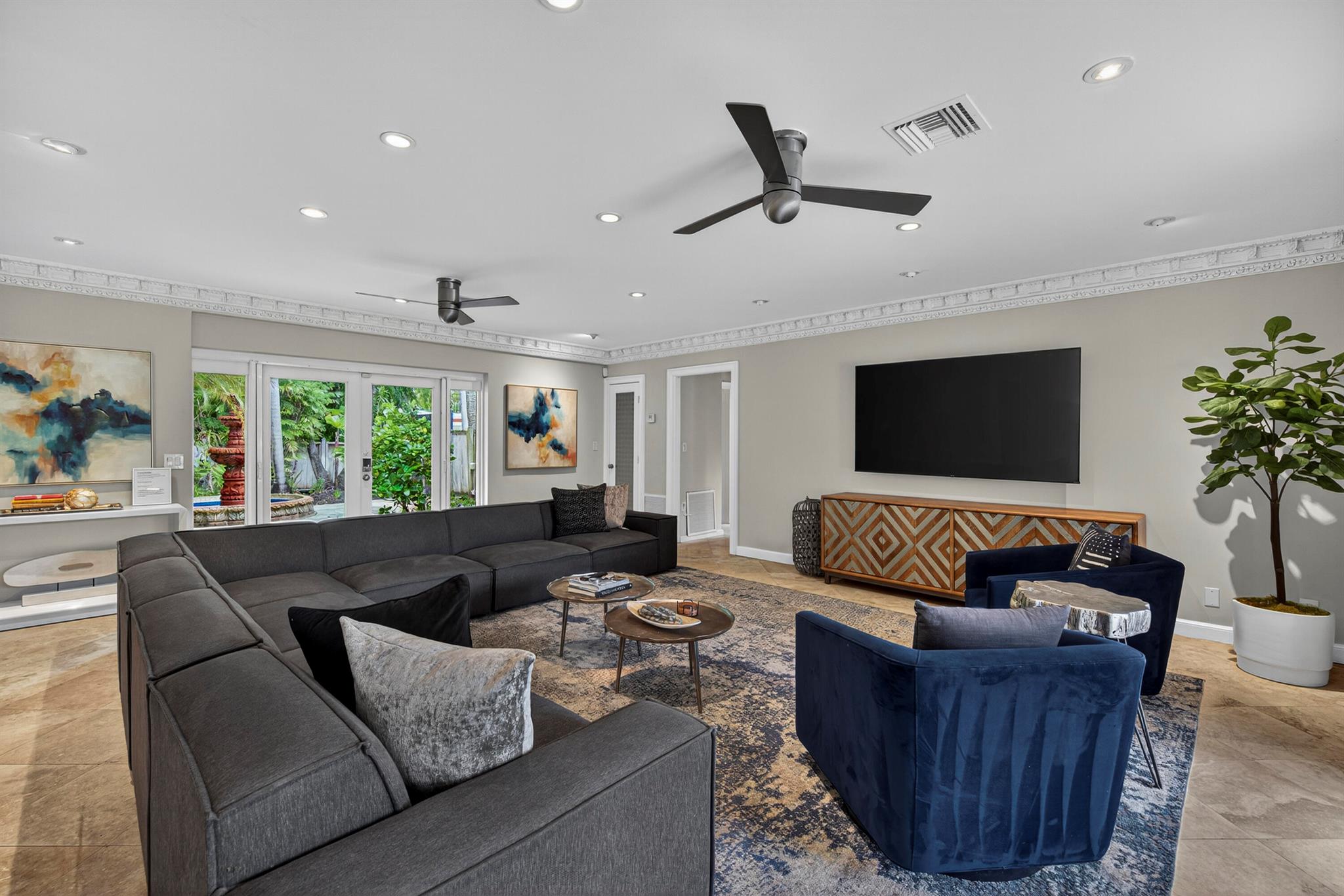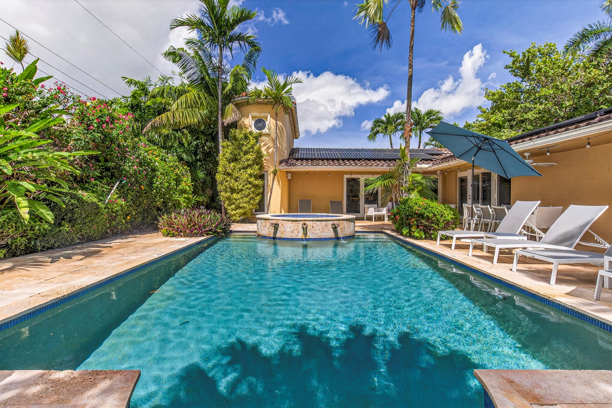 Discover this tropical paradise hidden gem in the heart of Fort Lauderdale. This stylish 4 bedroom, 2 bathroom furnished home features bright, open living spaces, gourmet chef's kitchen, built in closets, and modern finishes. Both bathrooms include walk-in, roll-in showers for comfort, accessibility and a touch of spa like luxury. Enjoy an expansive backyard oasis with sparkling, heated pool, hot tub and extensive outdoor seating, ideal for sun soaked afternoons, evening cocktails or dining under the stars. The front boasts a lush tropical patio with beautiful fountain, creating a serene welcome as well as a wonderful setting for morning coffee or peaceful relaxation. Located minutes from beaches, boating, dining and nightlife, this one captures the best of South Florida living.
