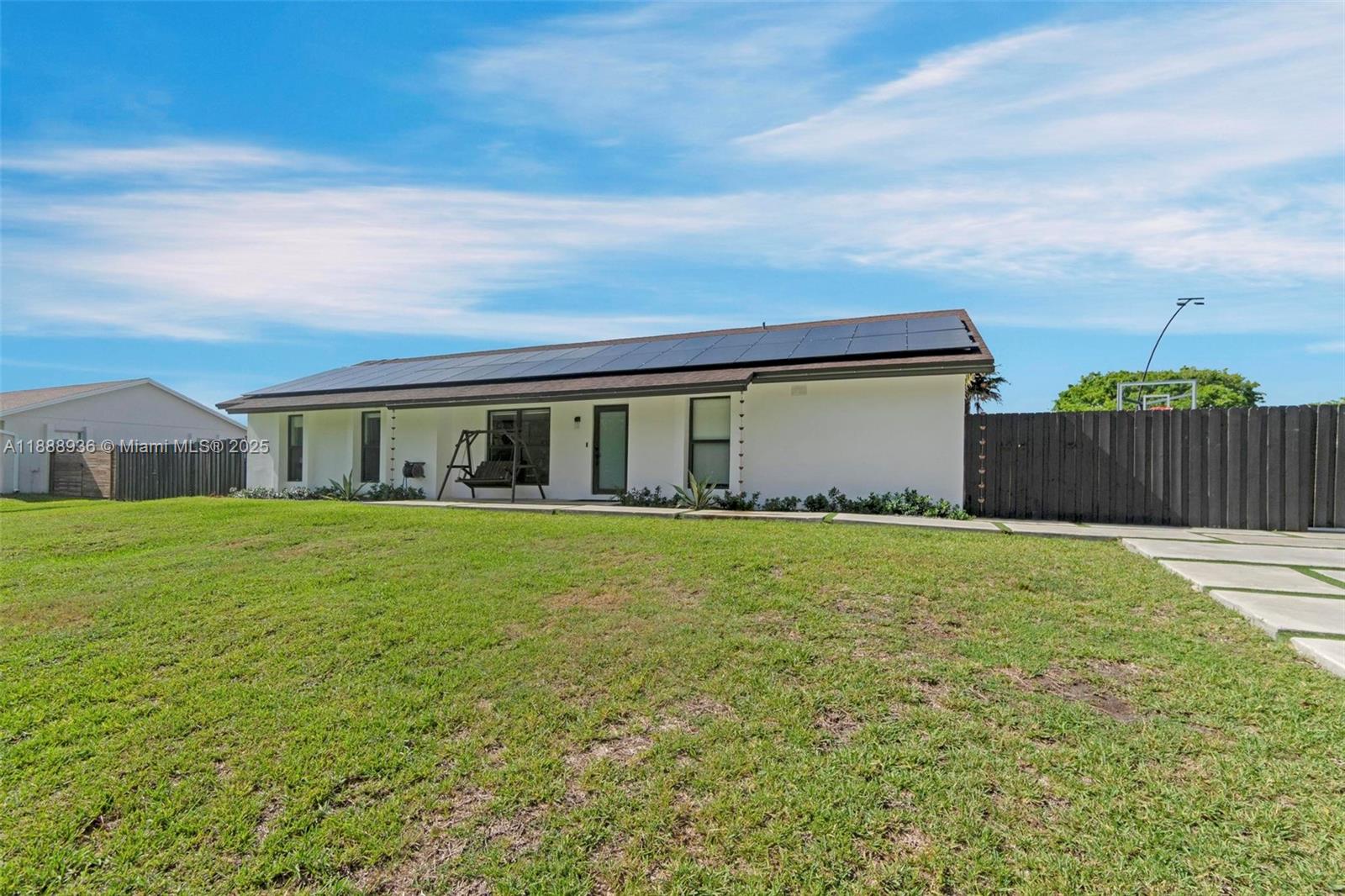 Experience Florida living in this 3/2 home with vaulted ceilings, a luxurious infinity pool, and your own private basketball court, with the option to rent a golf cart for added convenience. The home is enhanced with alkaline water, impact-rated French doors, and windows that bathe the interiors in natural light. Enjoy the benefits of low electrical bills thanks to solar panels. Additional features include an automatic mosquito misting system, landscape lighting, and a versatile AC-equipped garage that can serve as an office or extra room. The charming eat-in kitchen with a breakfast nook connects to the family room, while the spacious gated side yard is ideal for parking your boat or RV. For ultimate Florida lifestyle, this home offers all the amenities you desire.