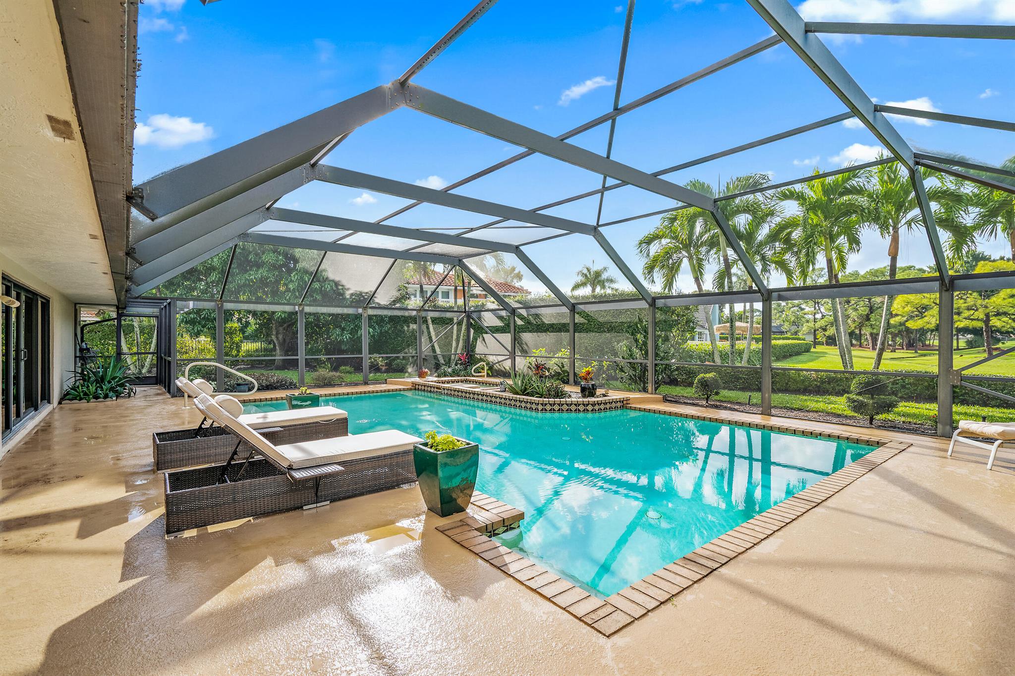AVAILABLE starting 12/1/25 -12/27/25. Then available again in April of 2026.This beautifully maintained three-bedroom, three-bathroom pool home in PGA National offers a view of the Fazio 4th fairway. This home features a large heated pool with a spa and sits on a tranquil, beautifully landscaped property in the heart of paradise. Great for entertaining, this home features a separate formal dining room, living room, and den with a wood-burning fireplace. Beautiful Saturnia tile throughout the main areas. Oversized laundry room. Impact windows and doors throughout. PGA National is conveniently located in the heart of Palm Beach Gardens, so you'll have easy access to I-95 , the Florida Turnpike & ten minutes to the most beautiful beaches!