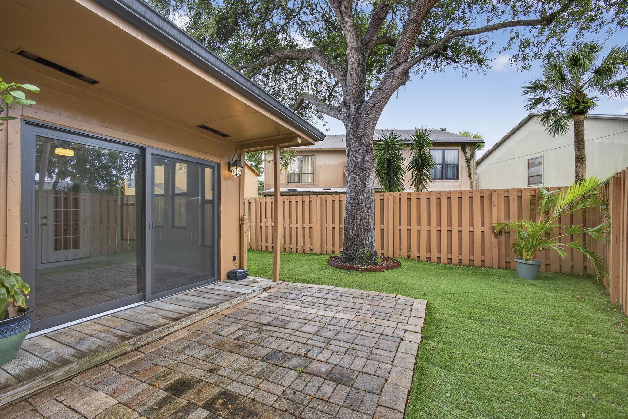 Welcome to this spacious 3-bedroom, 2.5-bath townhome in the Sandtree community, located in the heart of Palm Beach Gardens. Nearly 1,500 sq. ft. of living space with an open floor plan downstairs, tile flooring throughout, and a large family room that opens through sliding glass doors to a private fenced patio and backyard.This townhome is well-maintained with a newer roof, A/C, hurricane-impact windows, plantation shutters, a tankless water heater, and a whole-house Rain Soft water softener system. The open kitchen features GE black stainless-steel appliances, a breakfast bar, and a dining area. Upstairs offers wood flooring, three bedrooms, and two full bathrooms. The primary suite includes a private en-suite bath and walk-in closet.