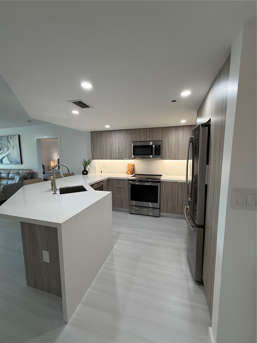 Enjoy stunning water views from this tastefully remodeled2/2 condo located in a sought-after boutique building. This stylish condo is being offered fully furnished.Spacious split floor layout for privacy and comfort. Modern open kitchen with top notch appliances. Elegant bathrooms with designer touches . Private balcony overlooking the water and multimillion dollar homes and yachts. In unit laundry. NEVER RENTED before.Steps from shopping, dining and the beach. Whether you are looking for short term or 1 year getaway - look no further. The condo offers luxury, convenience and coastal living. The unit is available for minimum rent of 3 months at $5500 per month. Also available for 6 months at $4500 and 12 months at $4000. Building requires a deposit. SCHEDULE YOUR PRIVATE SHOWING TODAY!
