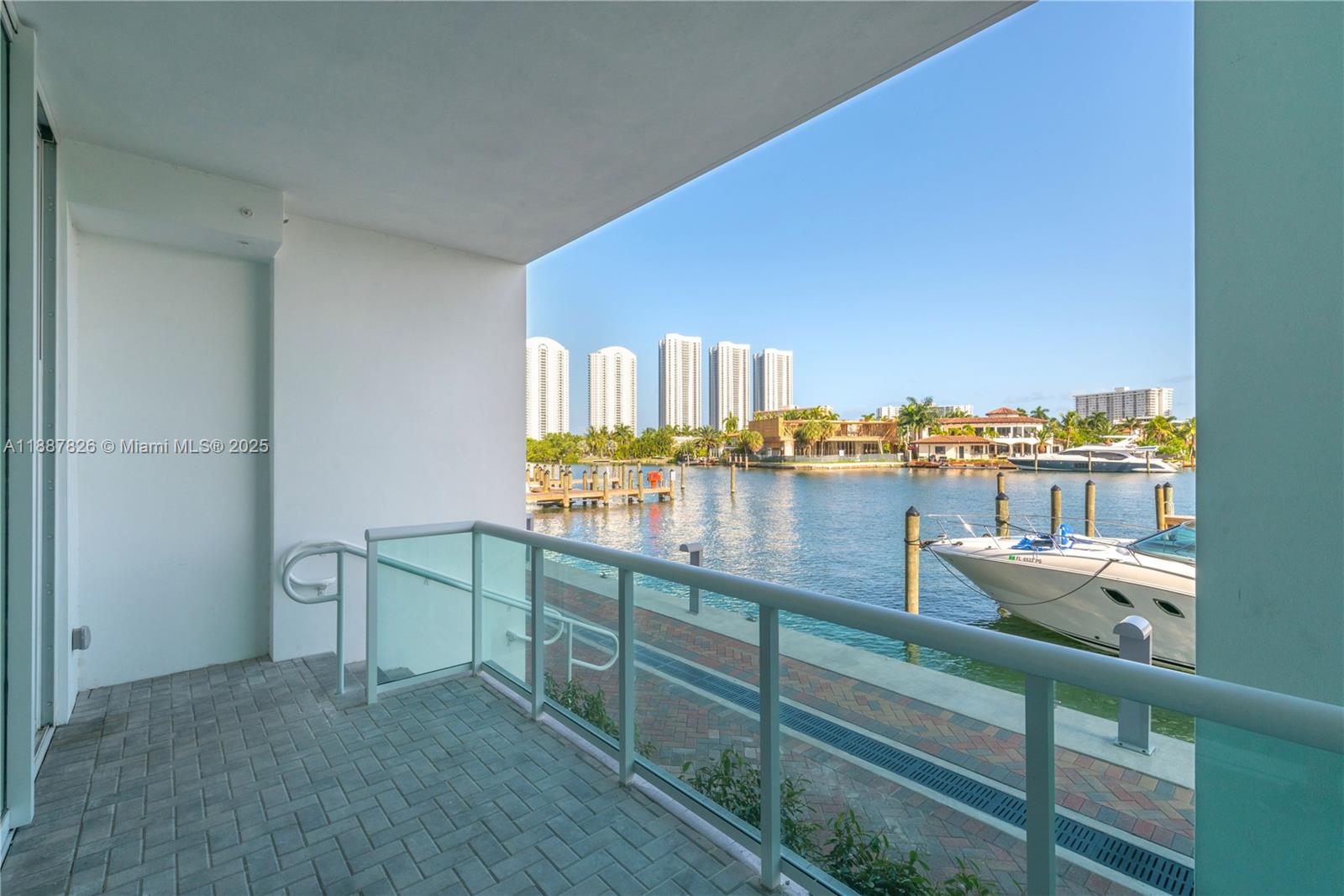Rare 2-story corner townhouse at 400 Sunny Isles with soaring double-height ceilings and stunning direct bay views. This spacious and highly upgraded residence offers 2 bedrooms, 3 full bathrooms, plus a den that can easily be converted into a third bedroom or office. Modern finishes throughout include motorized shades, custom built closets, and elegant tile flooring. The bright open layout features floor-to-ceiling windows and a seamless connection to a private balcony with direct marina access, perfect for boaters. Two assigned parking spaces are included. Enjoy resort-style amenities such as a full-service marina, pool deck with cabanas, state-of-the-art fitness center, spa, tennis courts, and 24-hour concierge and security. Available December 1.
