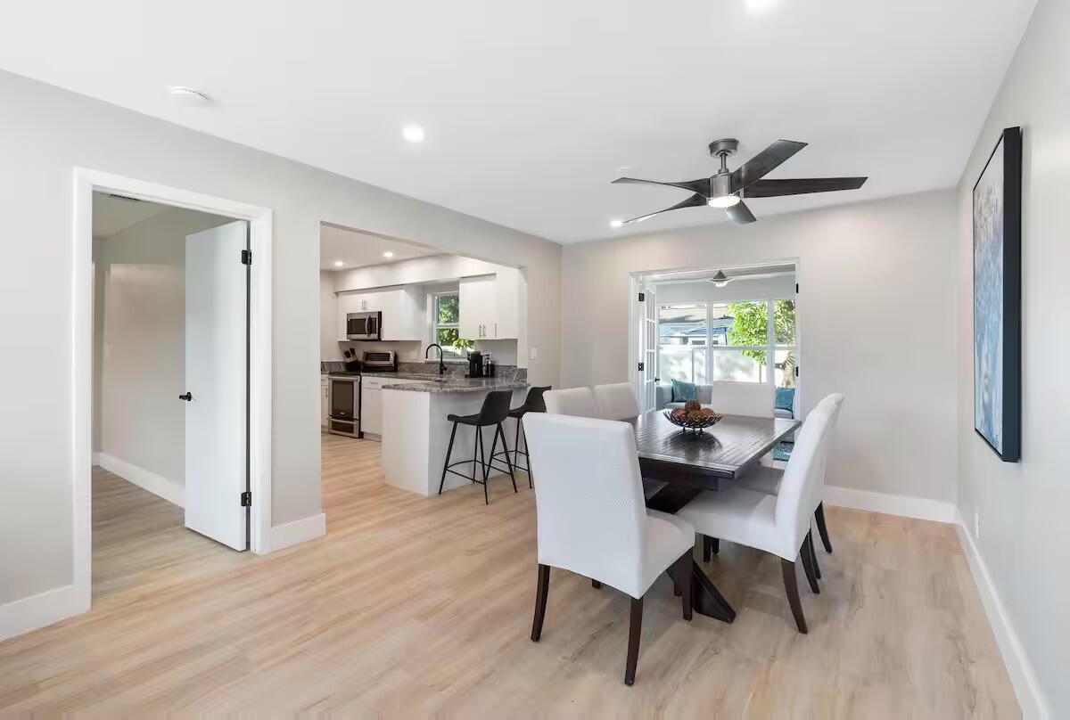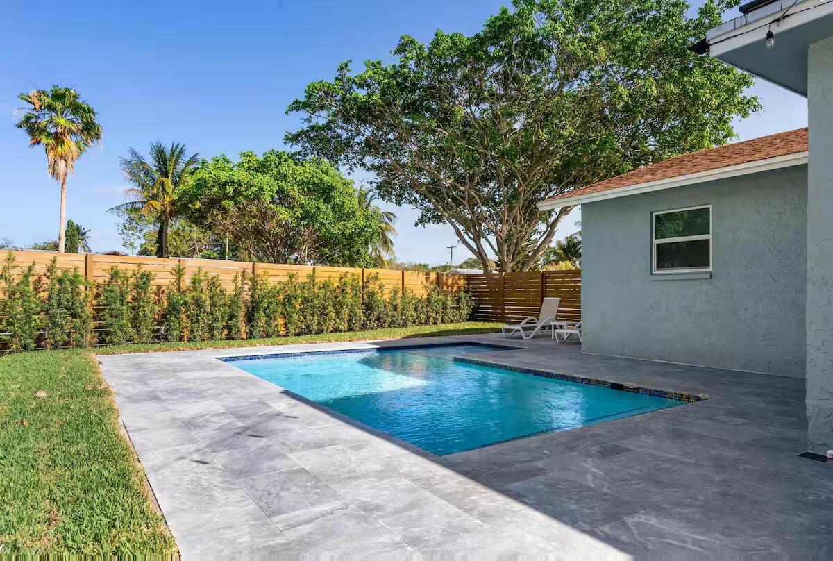 Stunning 4-Bed, 2-Bath Saltwater Pool Home w/ fenced yard in East Delray Beach - Available furnished/unfurnished for Short/Long-Term Rental. Welcome to this beautifully renovated single-family home offering comfort, style, & a true South Florida lifestyle. This spacious 4/2 property is in perfect condition & designed w/ both relaxation & entertainment in mind. Internet up to 300 mps, pool, lawn, & pest control are included for added convenience. Interior Features: Fully renovated w/ newer flooring, countertops, kitchen cabinetry, & appliances.Master suite with king-sized bed, walk-in closet, and private bath. Washer/Dryer inside. Additional bedrooms: one queen, one full, & one full with trundle. Bright open living and dining areas, plus a sunny Florida room with a private work space.
