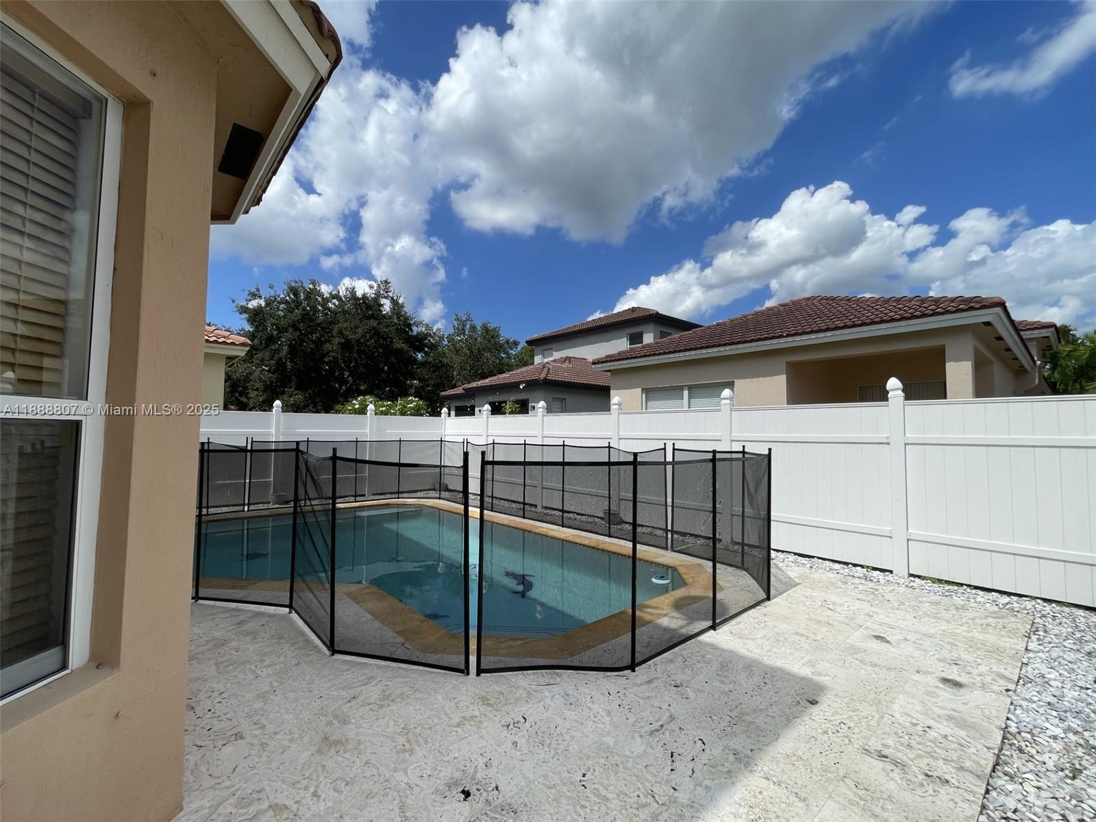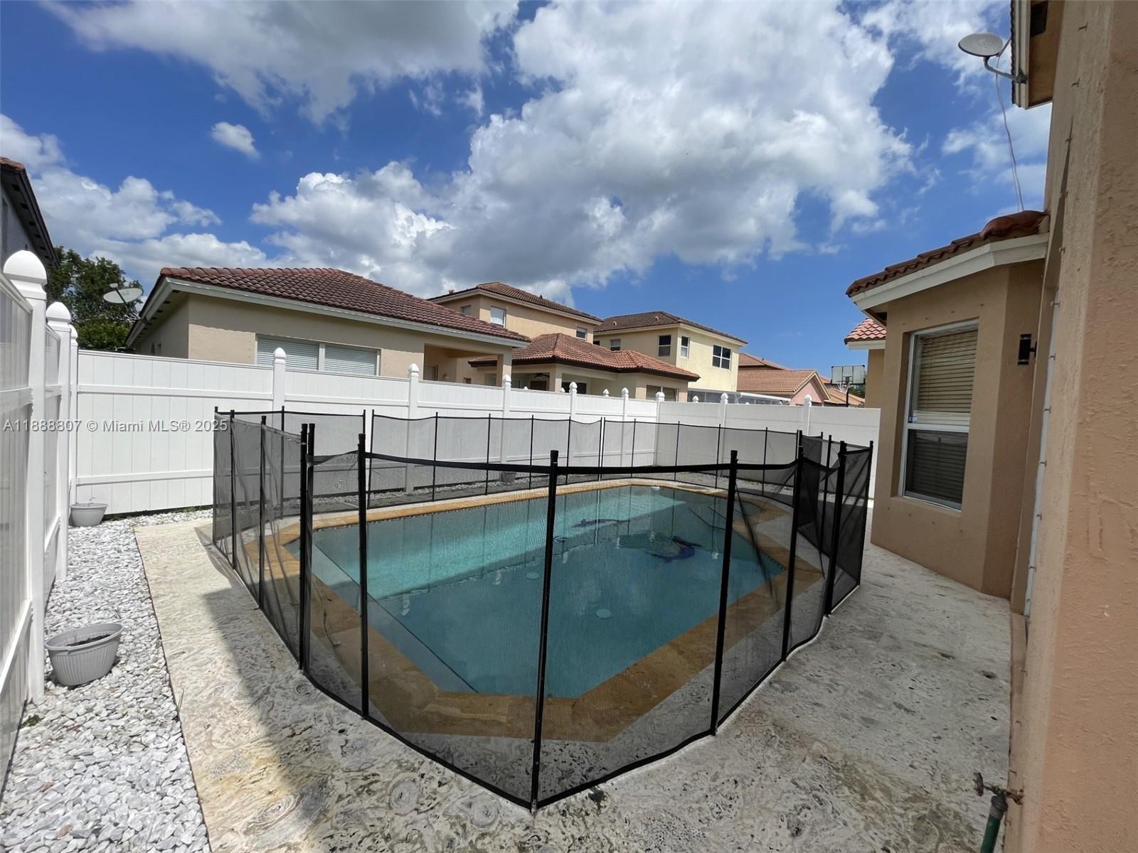This beautiful two-story residence offers 2,146 sq ft with 4 bedrooms, 2.5 baths, a double-car garage and a private pool in a fenced backyard. The kitchen boasts wood cabinets, granite counters, and top-tier Stainless Steel appliances. Tile and laminate flooring throughout. This gated community offers a clubhouse, Olympic-style pool, gym and playground area – a true paradise. Minutes away from Baptist Hospital, the Florida Turnpike, charter schools, shopping, and entertainment.