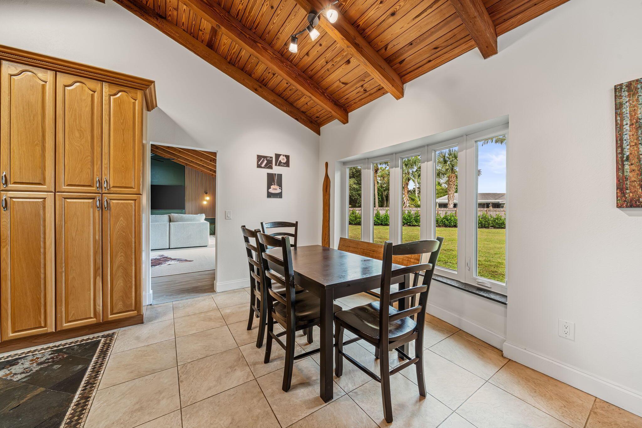*SHORT-TERM/SEASONAL RENTAL* This fully furnished 3-bedroom, 2.5-bath home features an open floor plan with soaring wood-beam ceilings and tongue-and-groove accents throughout the main living, kitchen, and dining areas creating a warm, inviting atmosphere. The kitchen is fully stocked and includes a bar area with a wine and beverage fridge, perfect for entertaining. The bedrooms are comfortably appointed with two queen beds and one king bed. Additional highlights include a dedicated office space with a printer/scanner/copier, a large-screen TV, & ceiling fans in every bedroom, the living area, and the screened-in patio. Enjoy filtered water throughout the entire home thanks to the whole-house water filtration system no need to ever buy bottled water! Minutes to Wellington Equestrian area!