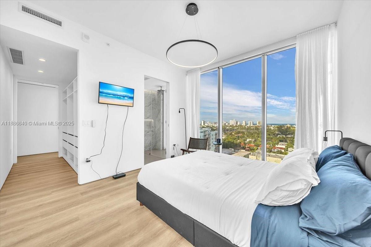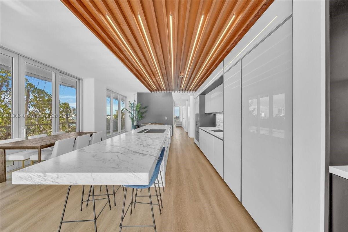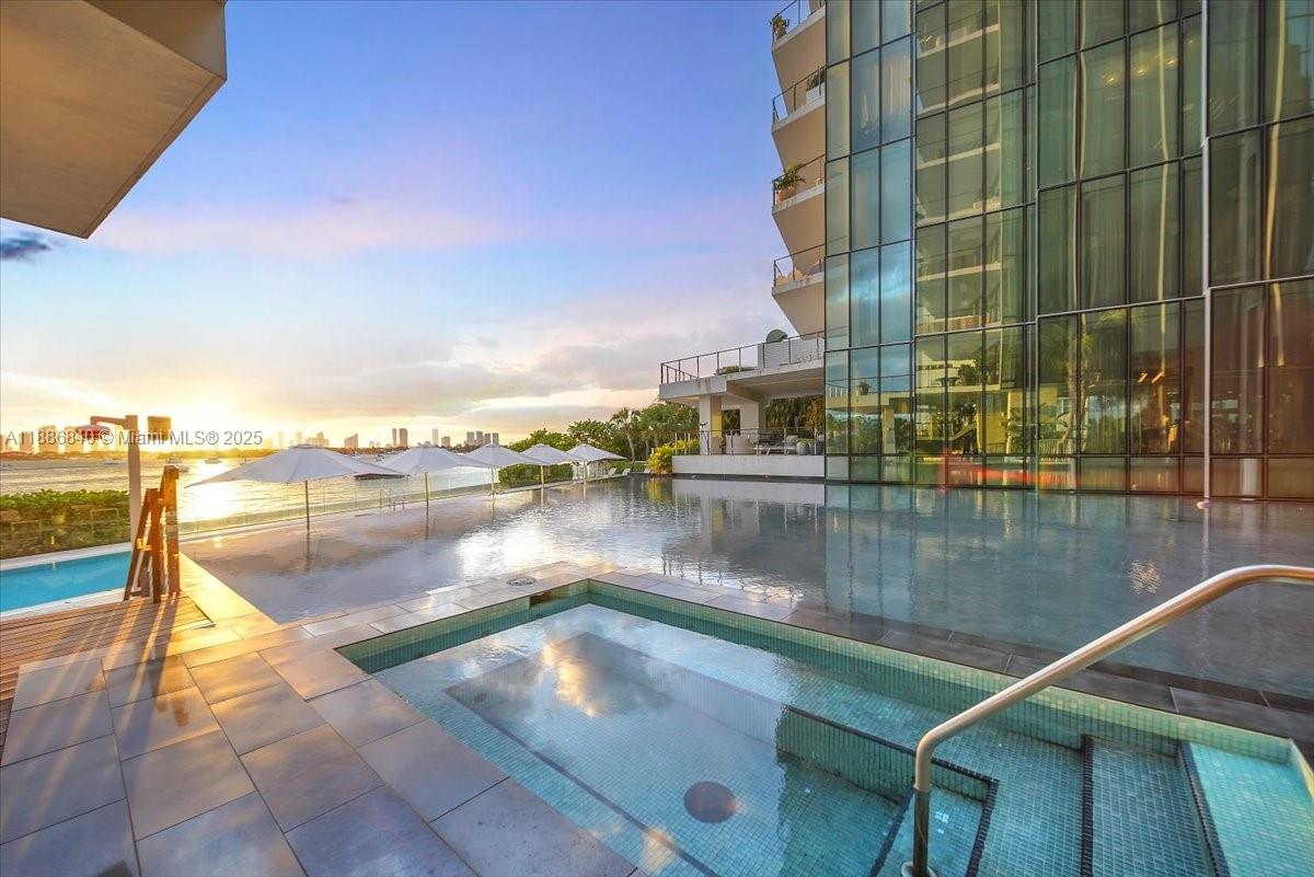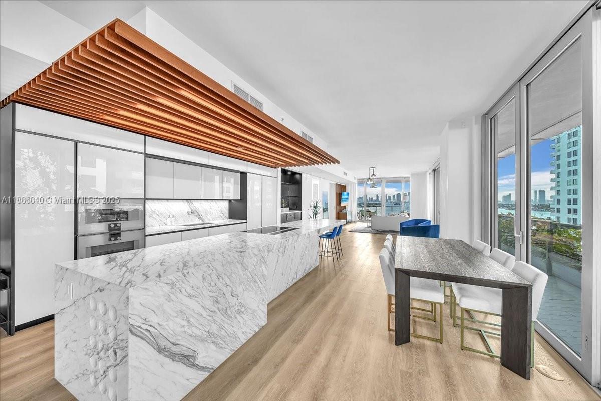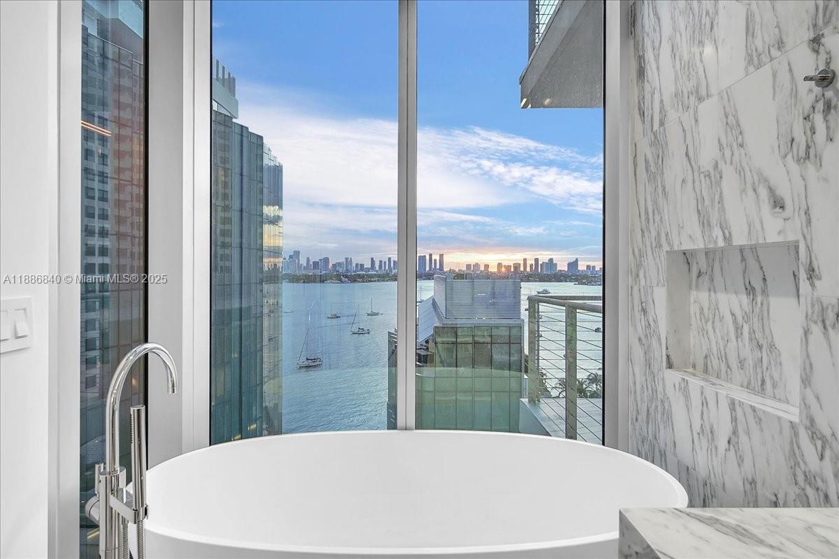 Enjoy breathtaking sunrise & sunset views from this flow-through corner residence at Monad Terrace, designed by Pritzker Prize winner Jean Nouvel. A private elevator opens into this three-bedroom, three-and-a-half-bath home in the sky, with floor-to-ceiling sliding glass doors and a fifteen-foot-deep wraparound terrace framing sweeping views of the Downtown Miami skyline, Biscayne Bay, & South Beach. The kitchen features Gaggenau appliances and Calacatta marble countertops, creating a striking setting for entertaining. The primary bathroom offers a steam shower and soaking tub with bay views. Monad Terrace is an architectural jewel of just 59 homes, surrounded by a central lagoon and lush climbing gardens. Bayfront pool, jacuzzi, & gym. Close to Sunset Harbour & South of Fifth.
