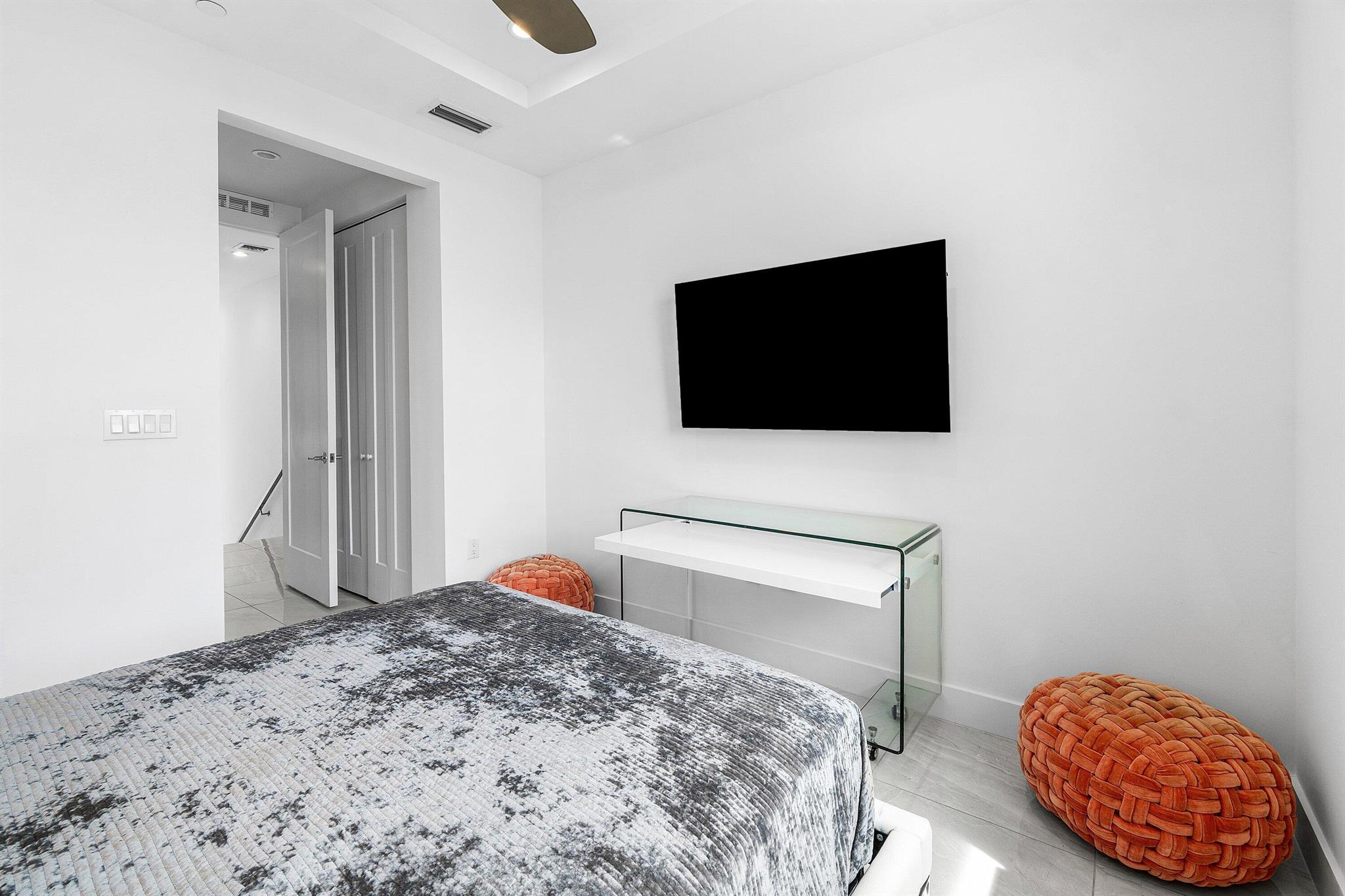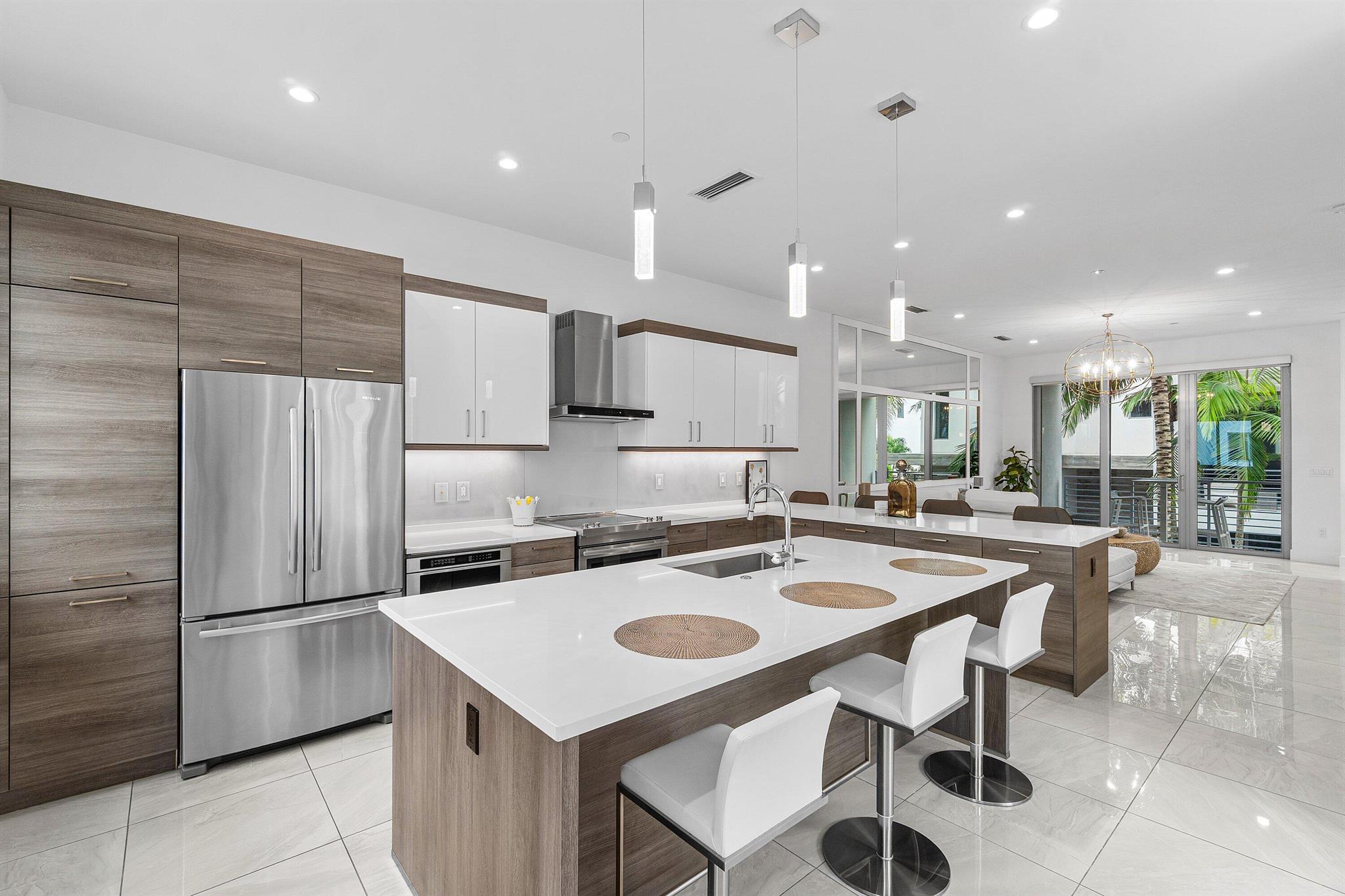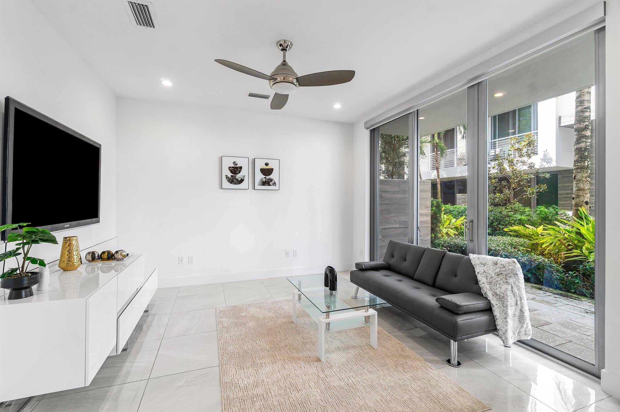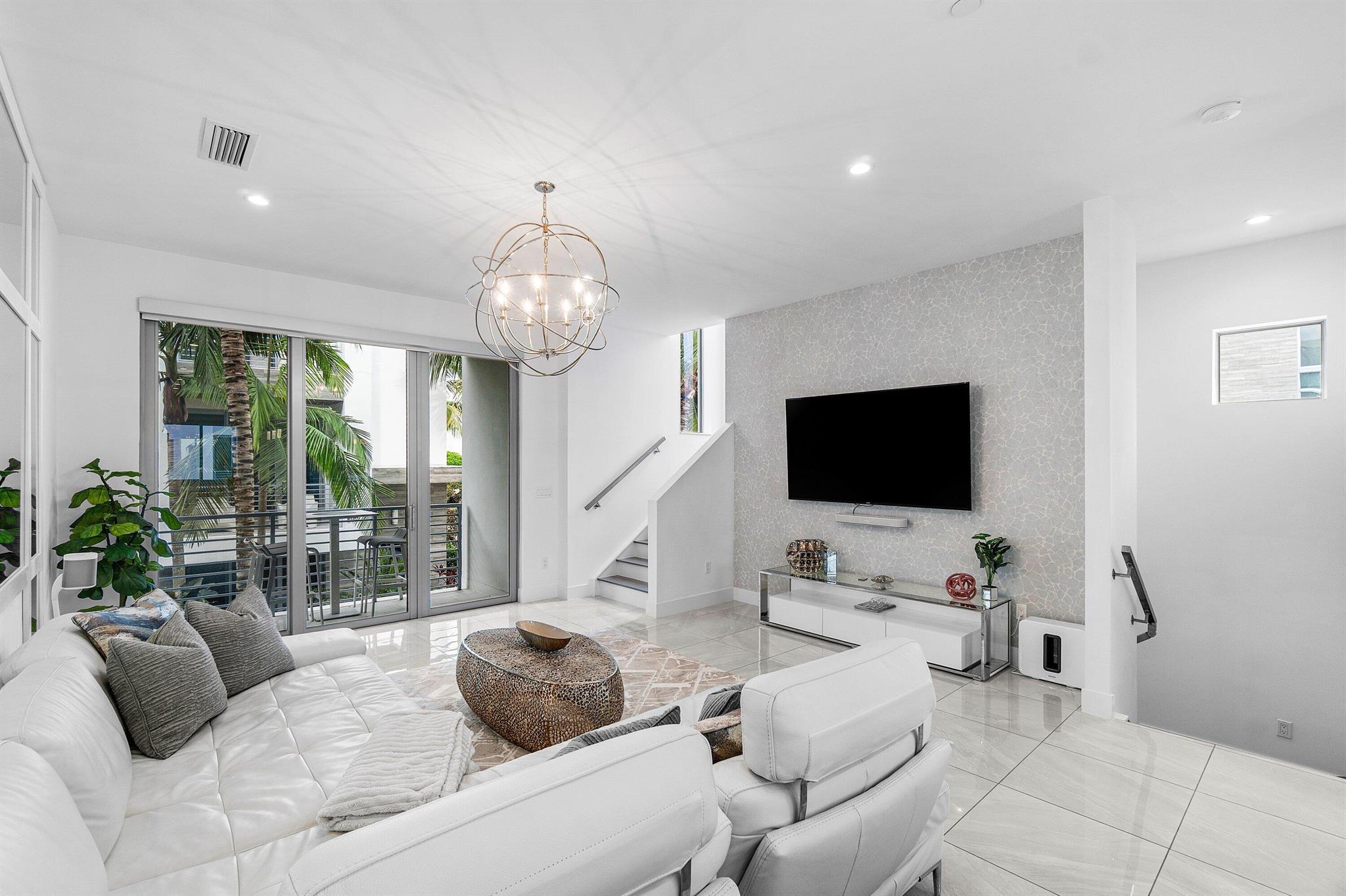 Experience Luxury Living at Its Finest This stunning 3-bedroom, 3.1-bathroom, 3-story corner townhouse, complete with a 2-car garage, is now available for immediate rent in the exclusive MODERNE BOCA community. Offering a harmonious blend of contemporary elegance and modern convenience, this fully furnished home is a true masterpiece of design and functionality. Sophisticated Interiors Step into a sunlit oasis where sleek lines and high ceilings create a spacious, airy ambiance. The abundant natural light pours through extra windows, accentuating the exquisite details that set this home apart. Enjoy the convenience of motorized window shades, custom closet cabinetry, and stylish additions like a decorative barn door, mirrors, and an accent wall that adds a touch of