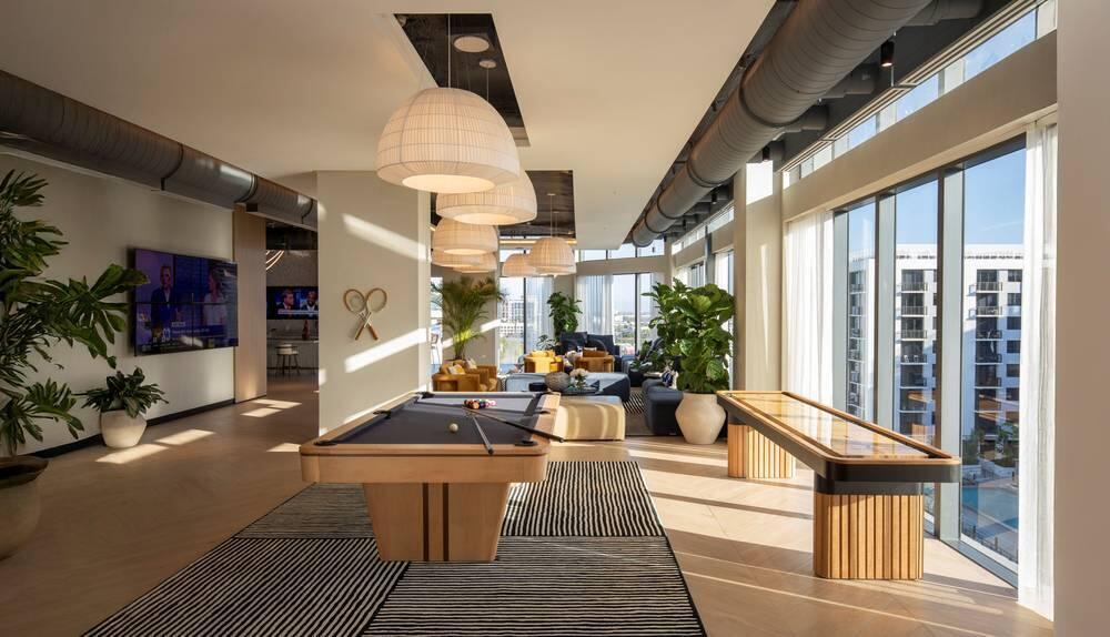The Highley House combines Wynwood's imaginative setting with inspiring, artfully designed interiors and one-of-a-kind amenities, giving residents a world of new perspectives and experiences. The Terrace at golden hour. A pristine, glittering pool overlooking the Miami skyline. Curated work by some of the world's most renowned muralists and artists. Leading-edge fitness and wellness. A fully wired in-house studio for creators of all kinds--and everything in between.