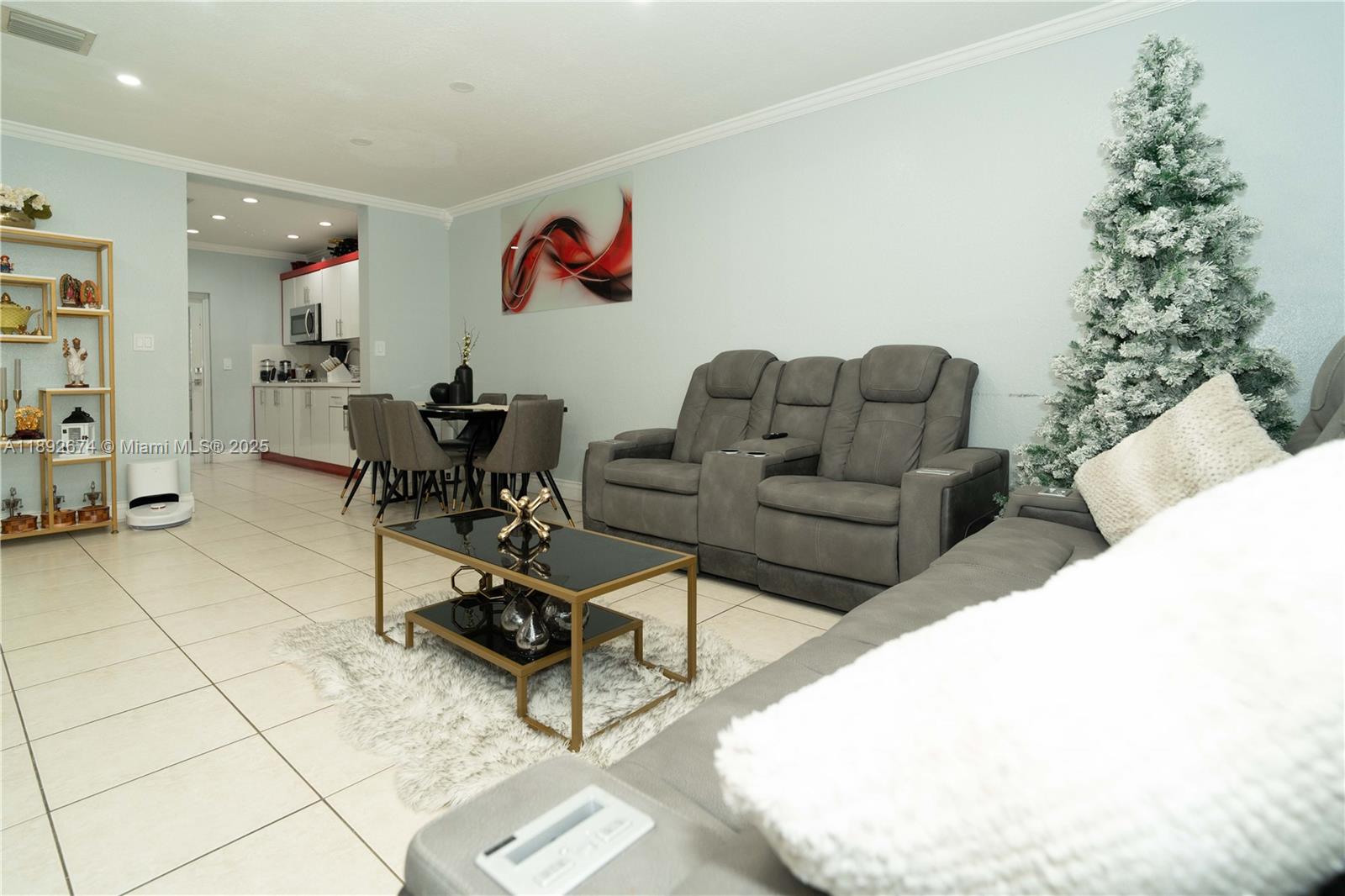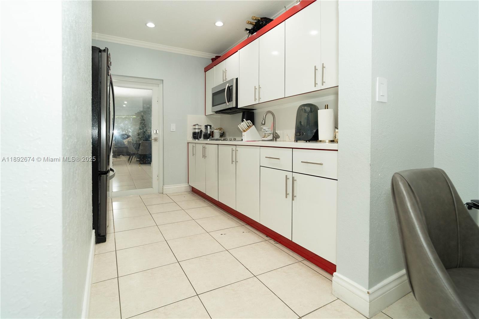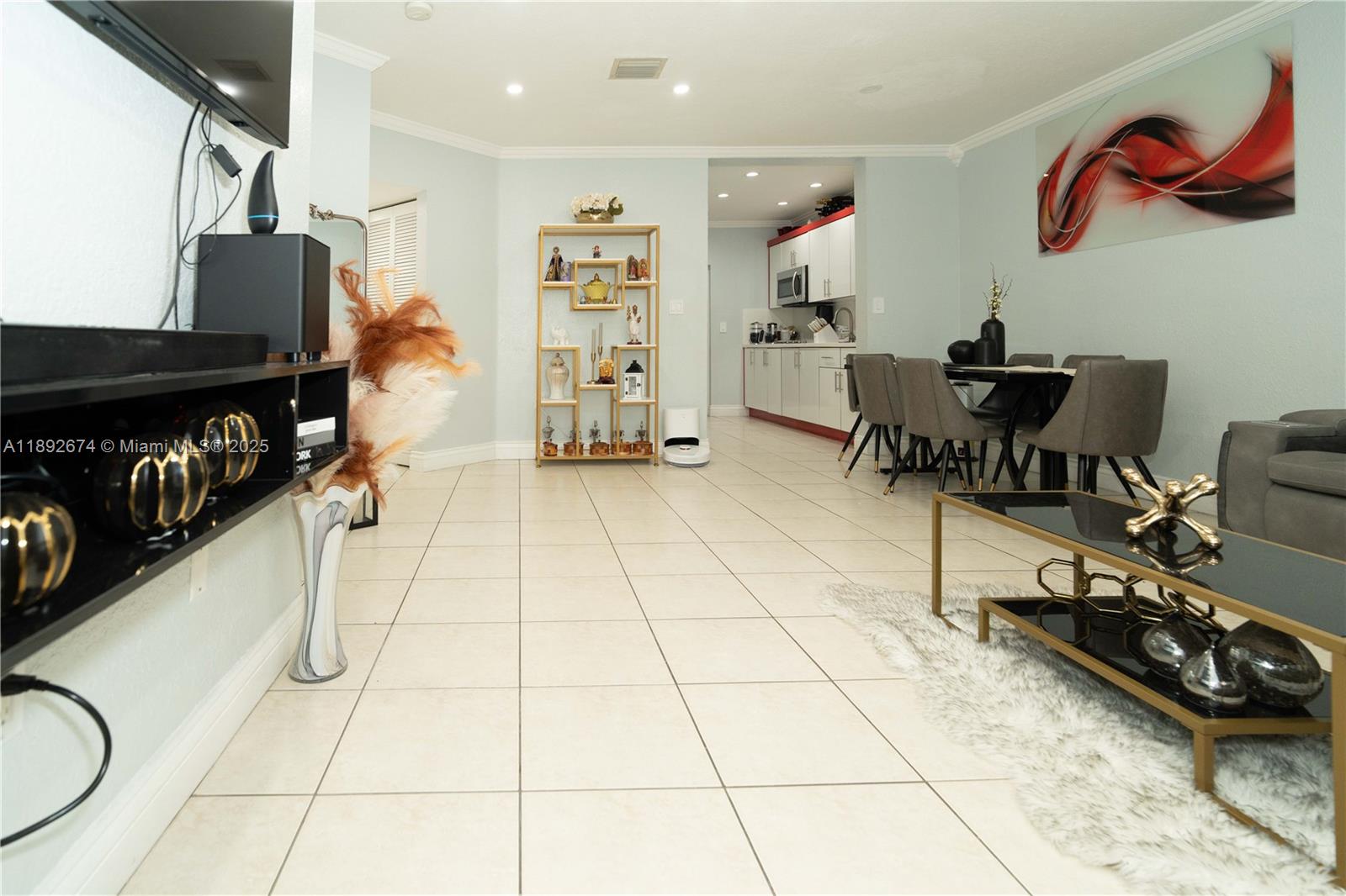 Beautifully remodeled 3-bedroom , 2.5 bath first floor condo in the heart of Hialeah . Features a modern kitchen with new cabinets and stainless steel appliances , updated bathrooms , spacious living and dining areas , and tile floors throughout . Includes in-unit laundry and a private balcony. Conveniently located near shopping , dining and major highways .