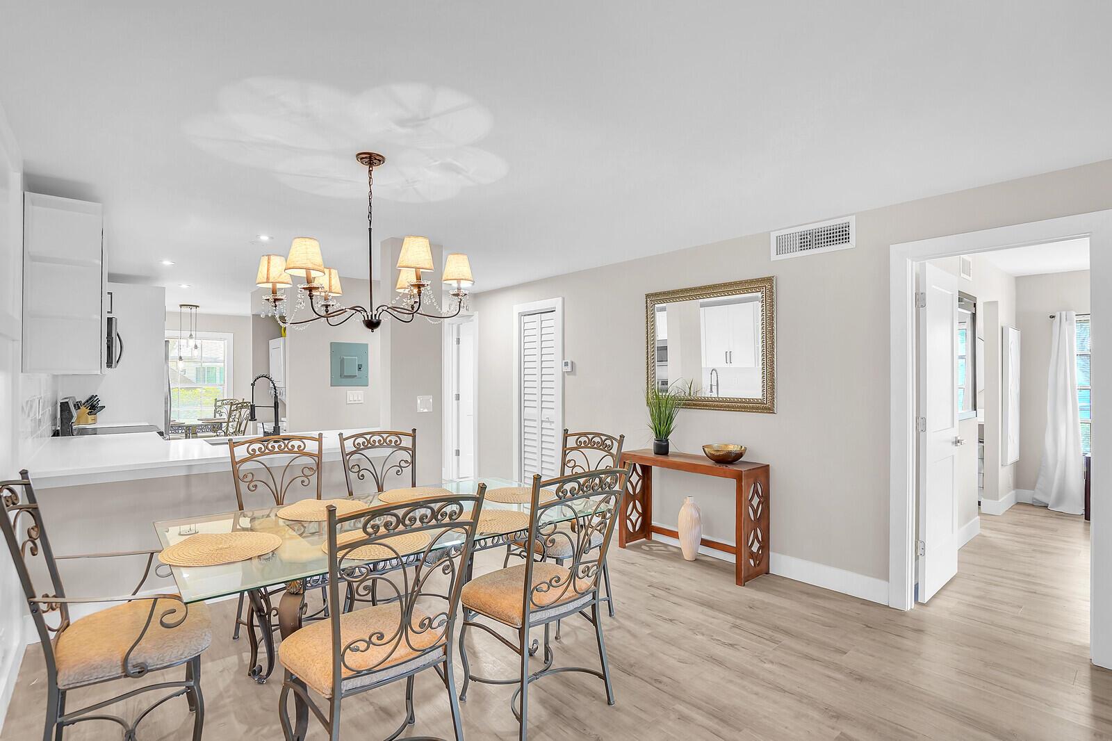 Now available for seasonal rental! Welcome to this bright and spacious residence in the highly desirable Palm Greens at Villa Del Ray community of Delray Beach Beautifully renovated, the 2BR/2BA with open floor plan and LVP flooring throughout, also has an in-unit washer and dryer and convenient parking right at your front door. Exciting new 30,000 sq. ft. state-of-the-art clubhouse is currently under construction, which will feature resort pools, a cafe, gyms - all surrounded by scenic walking trails. Palm Greens is renowned for its vibrant 55+ lifestyle and abundant amenities, including a heated pool, fitness center, library, craft and billiards rooms, pickleball and tennis courts, shuffleboard and a full calendar of social events.