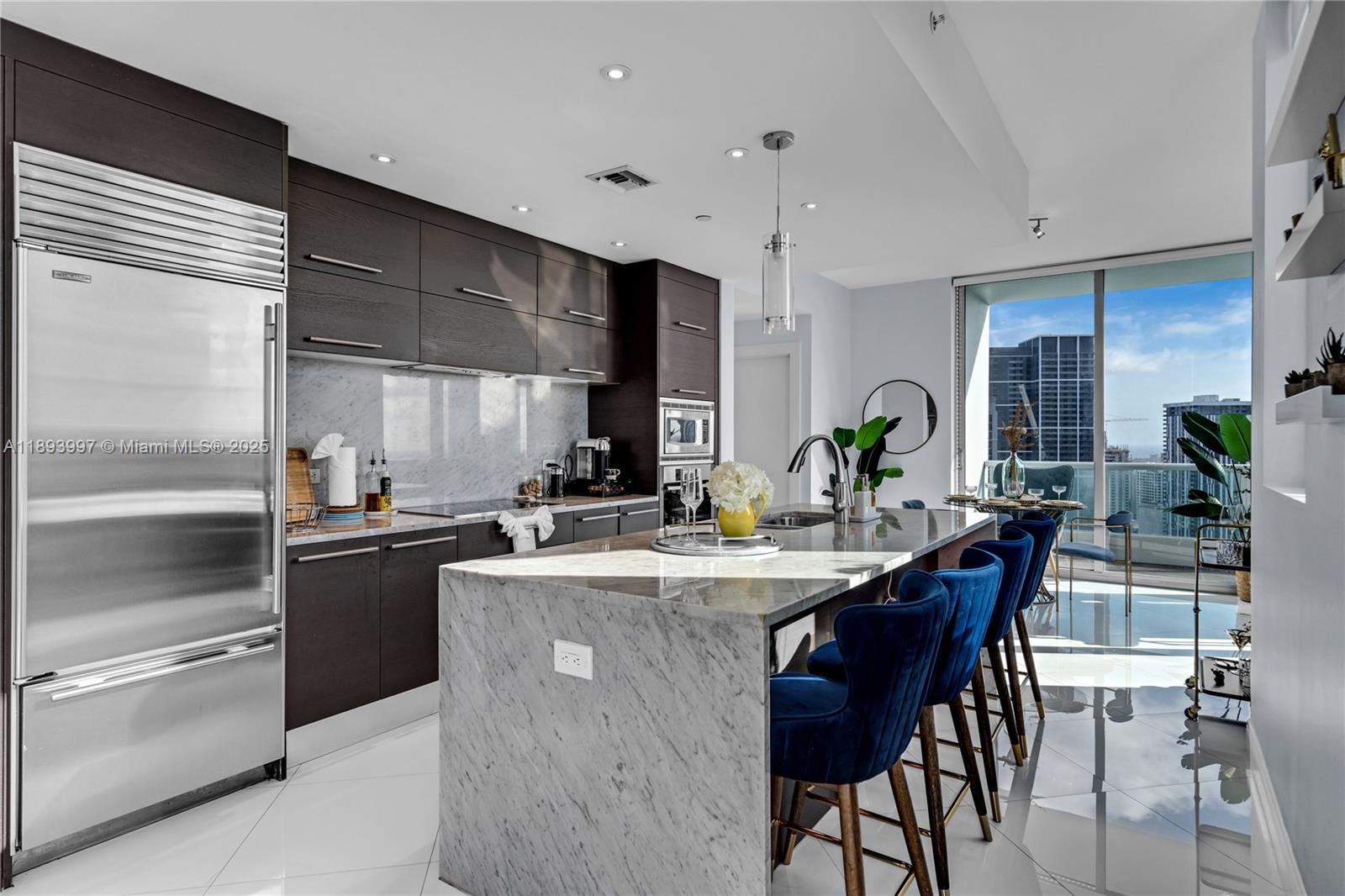 Experience breathtaking panoramic views of Biscayne Bay and Museum Park from this stunning fully furnished corner residence on the 44th floor. Featuring 2 bed/2.5 baths, and 1,237 sq ft of living space + 572 sq ft of outdoor terraces spread across three balconies. Enjoy bright living spaces with floor-to-ceiling windows, and a beautifully designed kitchen with a waterfall marble countertop, Sub-Zero fridge, and Miele appliances. The dining area, elegant living room, and primary suite all open to spectacular views day and night. Residents enjoy full-service luxury amenities including concierge, 24-hour valet and security, spa, fitness center, and two resort-style pools. Available also for seasonal rentals (3-month min). Rates vary by season, inquire with the listing agent for details.