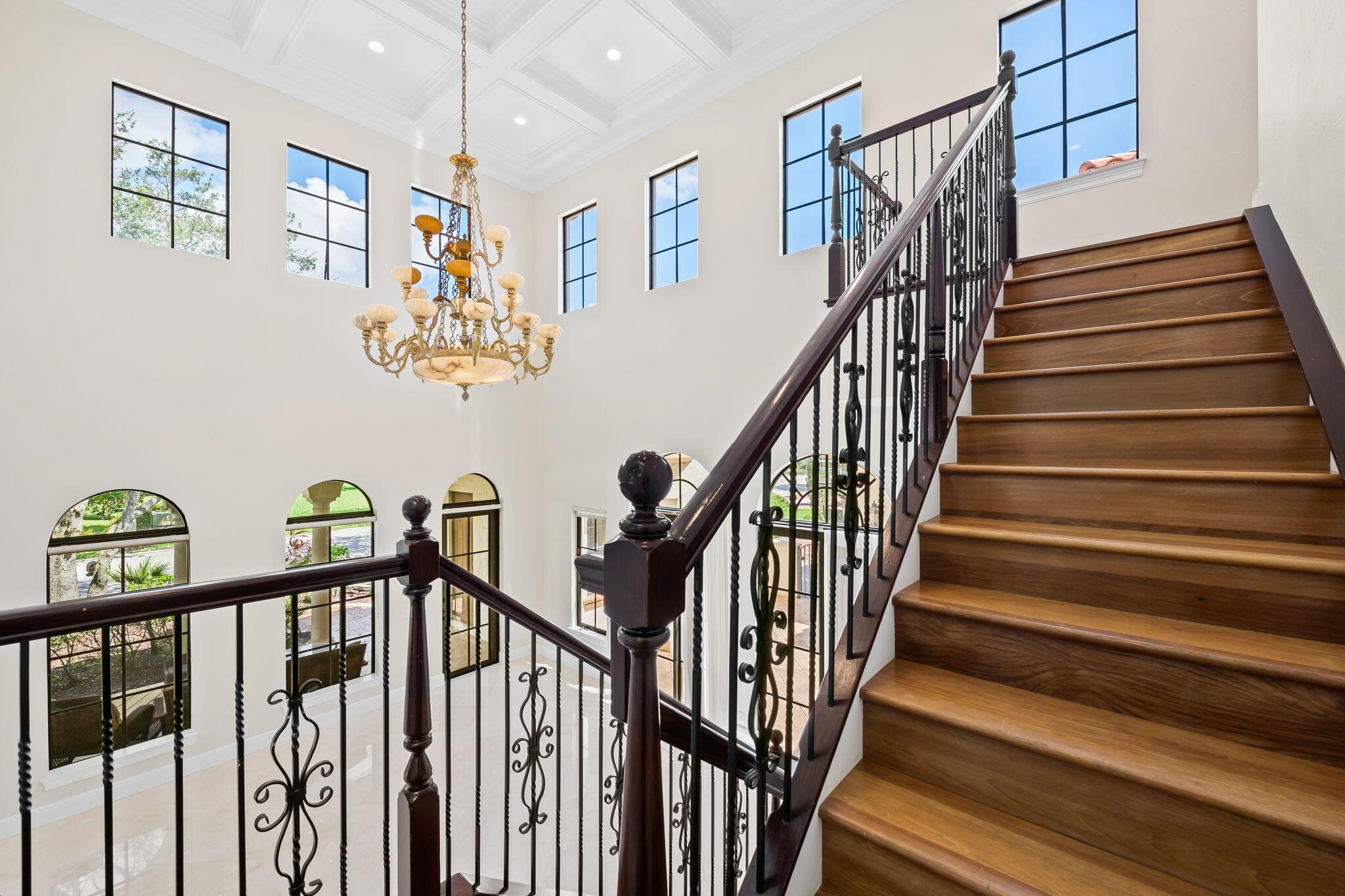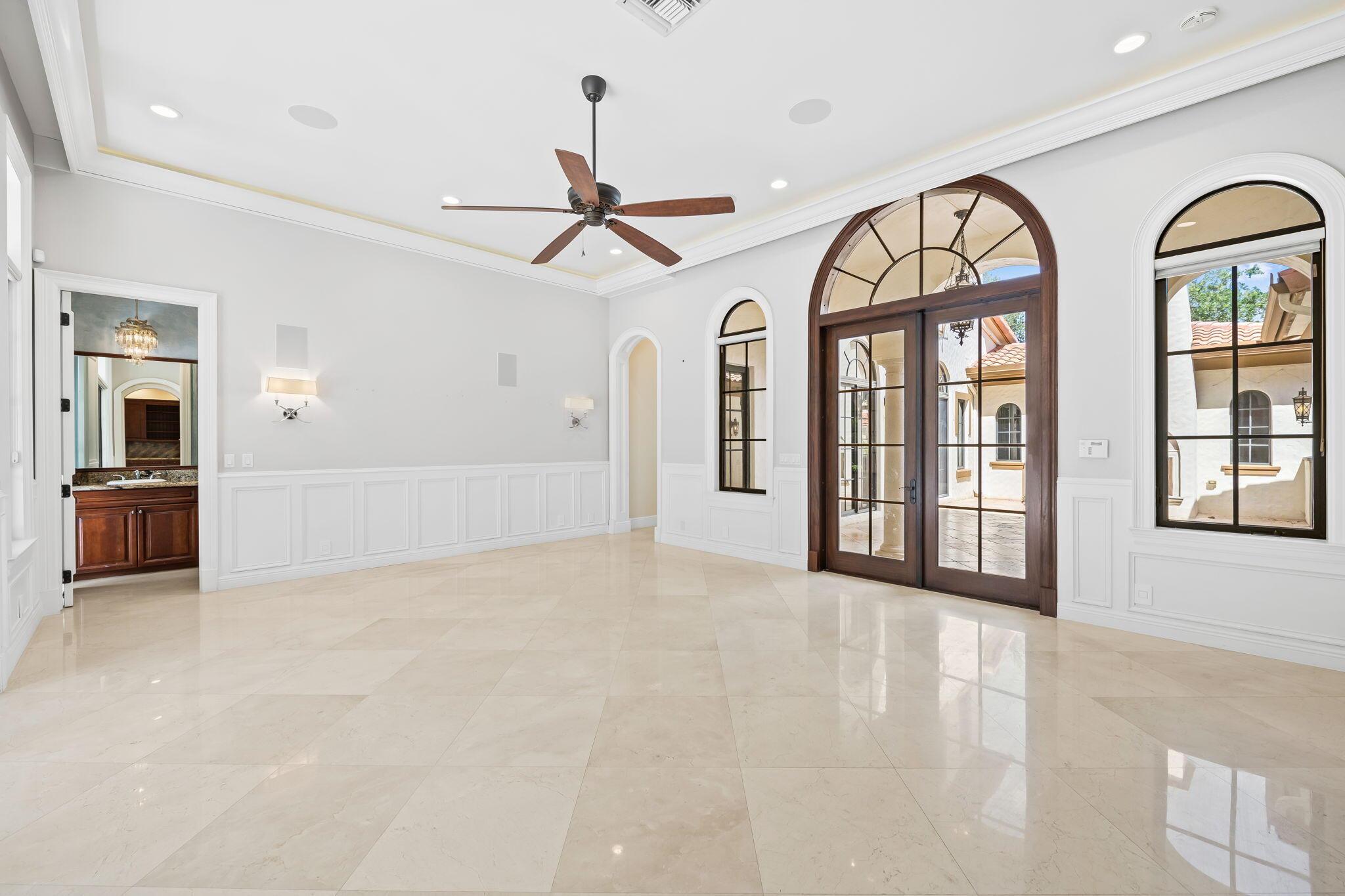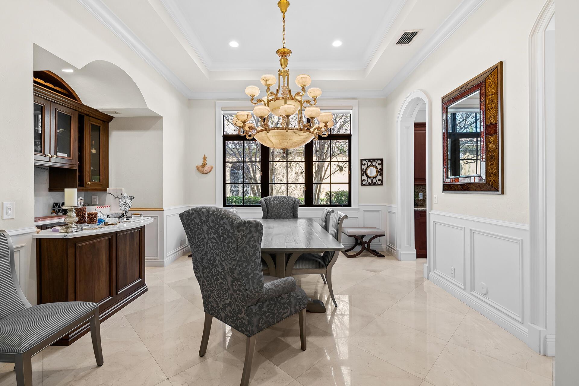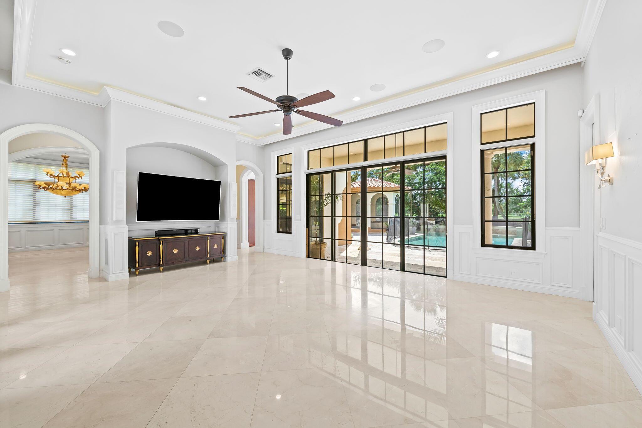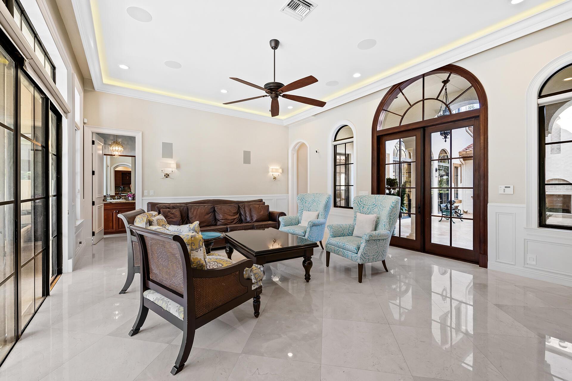 This stunning home offers breathtaking golf and water views, making it a true gem in Parkland Golf. Constructed with CBS materials, including the second floor, and equipped with all impact windows and doors, this Tuscan-inspired residence ensures both safety and elegance. Boasting five bedrooms, four and a half baths, and a spacious three-car garage, this home is situated on one of the most sought-after streets, featuring large lots and fantastic views.Upon entering, you'll be captivated by the soaring ceilings, intricate crown moldings, solid core doors, and numerous architectural details that add a touch of sophistication throughout. The first floor includes a guest suite with a sitting area, providing a comfortable and private space for visitors. The formal living room,