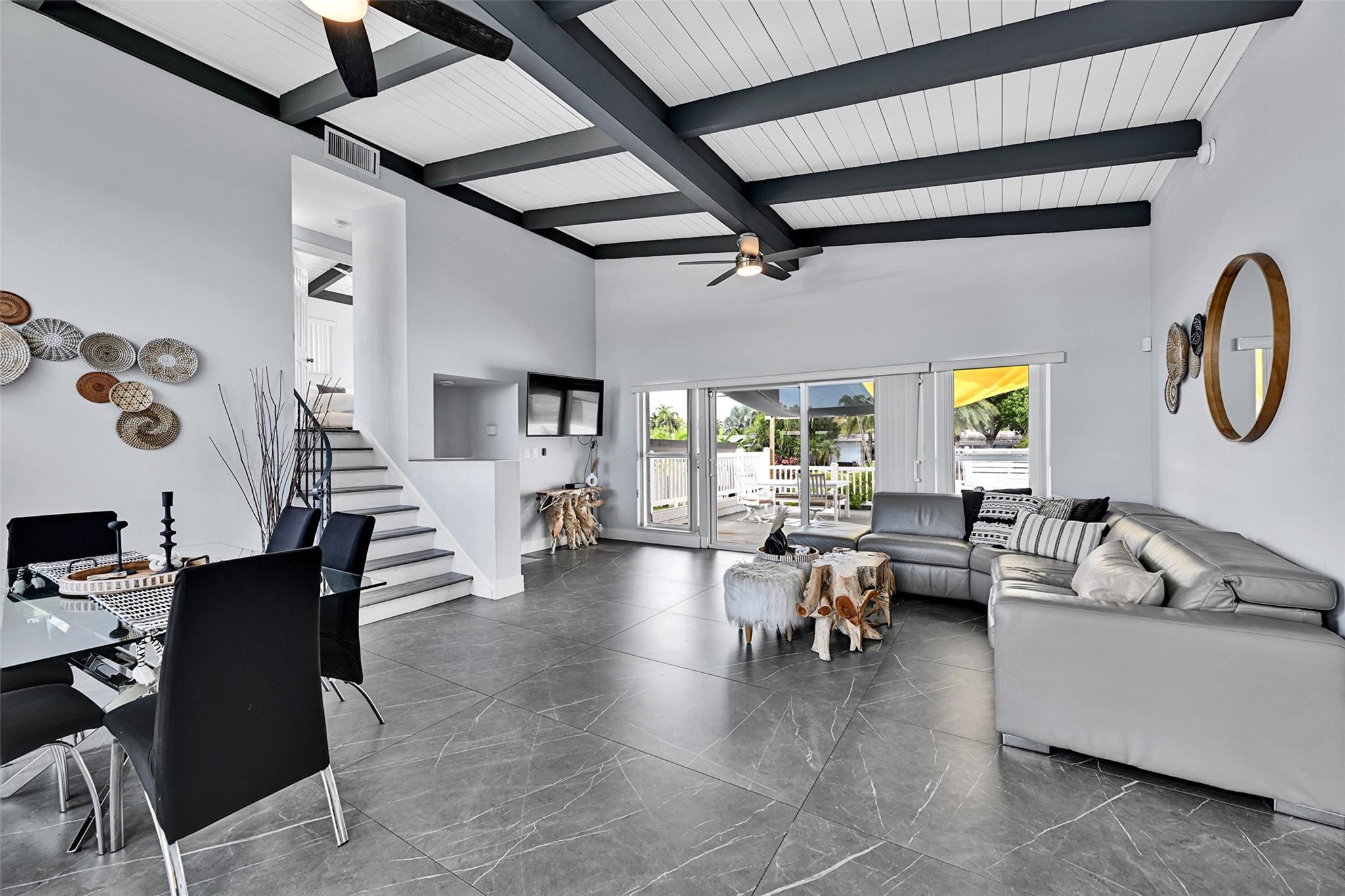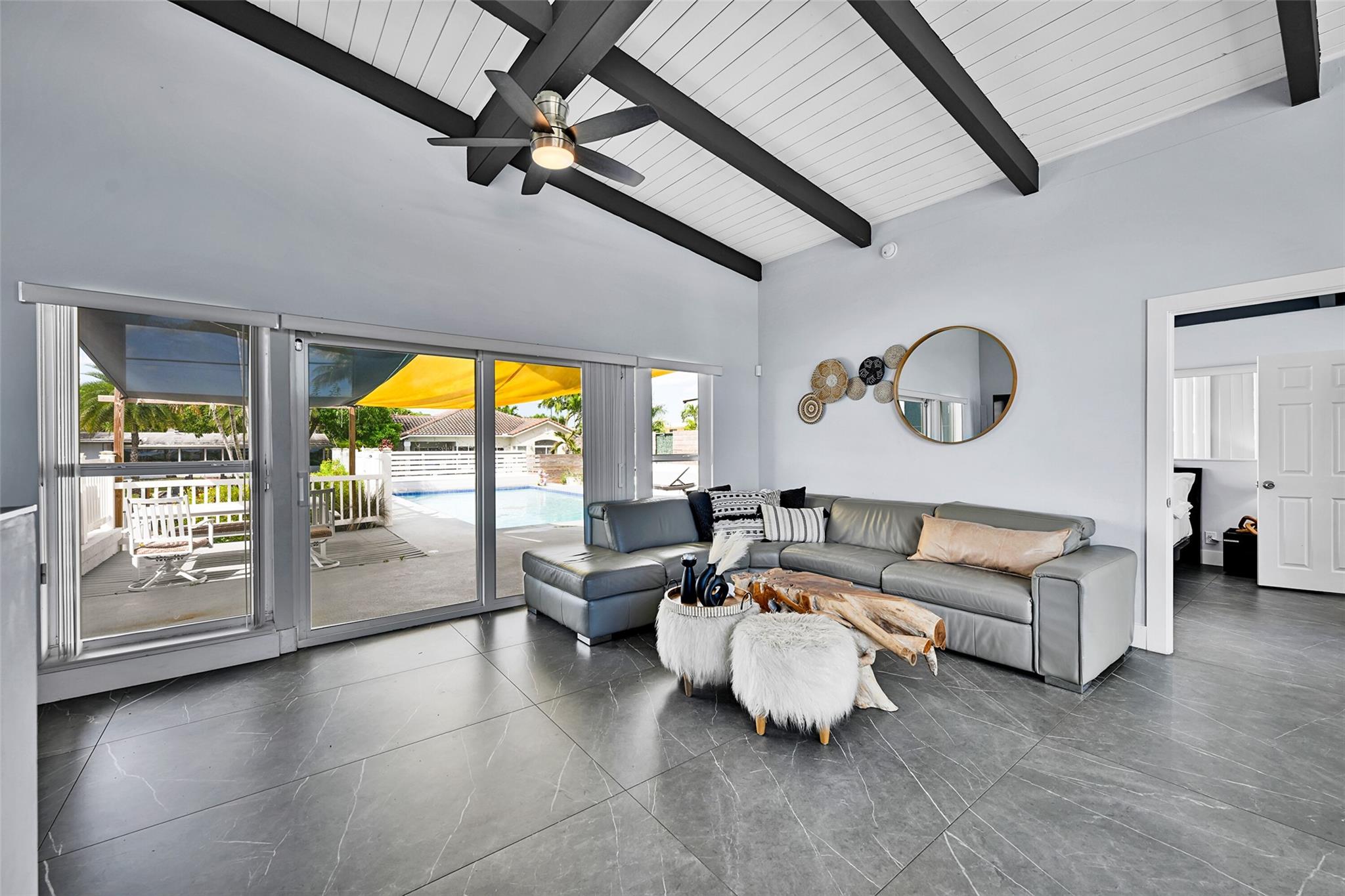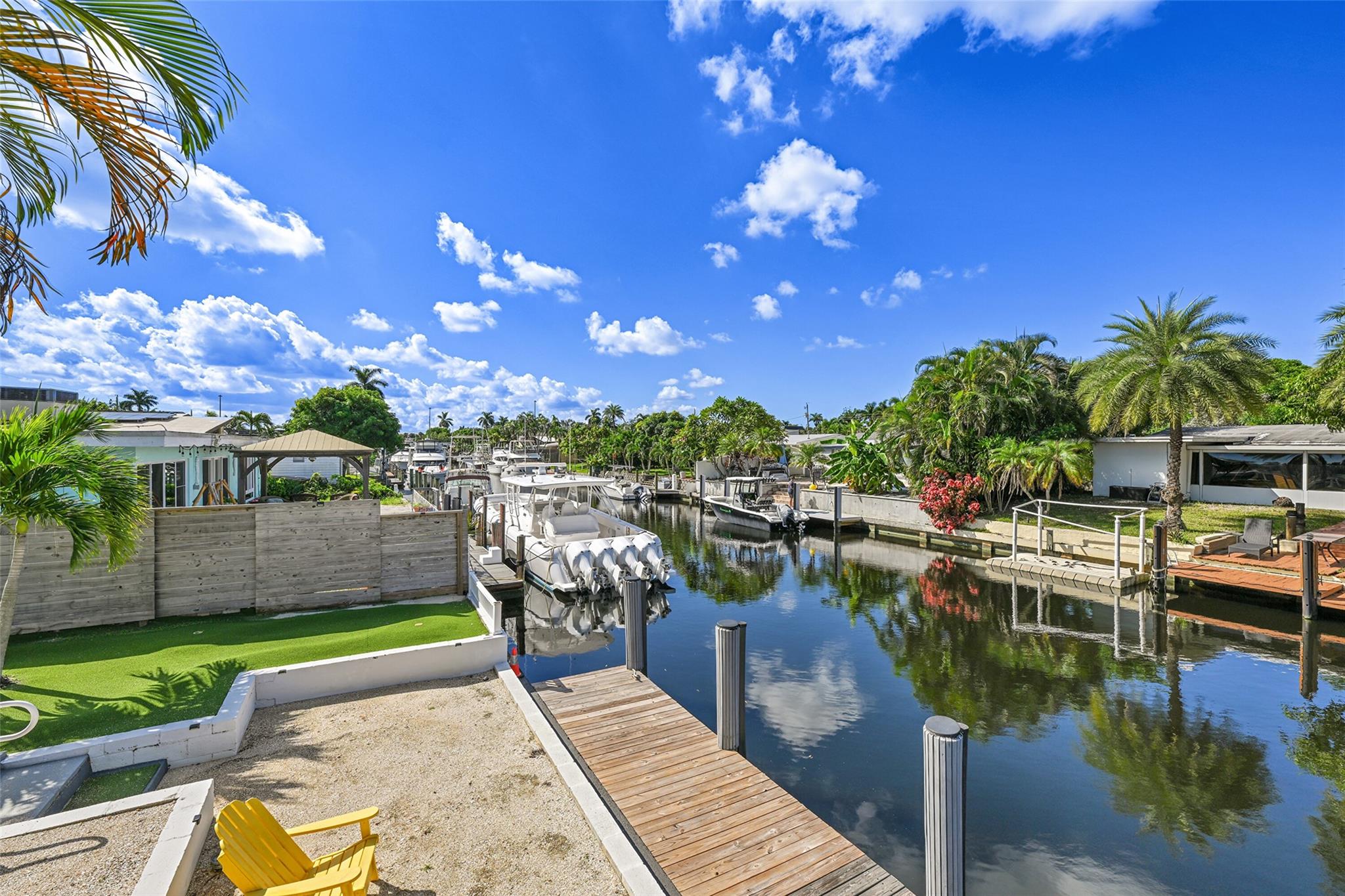Welcome to your slice of paradise! This stunning 3 bedroom, 3 bathroom waterfront home offers year-round resort style living with large in-ground pool, private putting green and covered outdoor lounging and dining areas. In the highly sought after neighborhood of Lauderdale Isles, this home features a 50-foot dock included with your rental on an ocean access canal with no fixed bridges to the Intracoastal waterway and Atlantic Ocean. Split level design with over 1500 sq ft of living space, high ceilings, stainless steel appliances and ample parking. Hidden away from the hustle and bustle yet conveniently located just minutes from shopping, dining, entertainment and highway. Professional pool maintenance and lawn care covered by landlord at no additional cost. Choice of furnished or not.