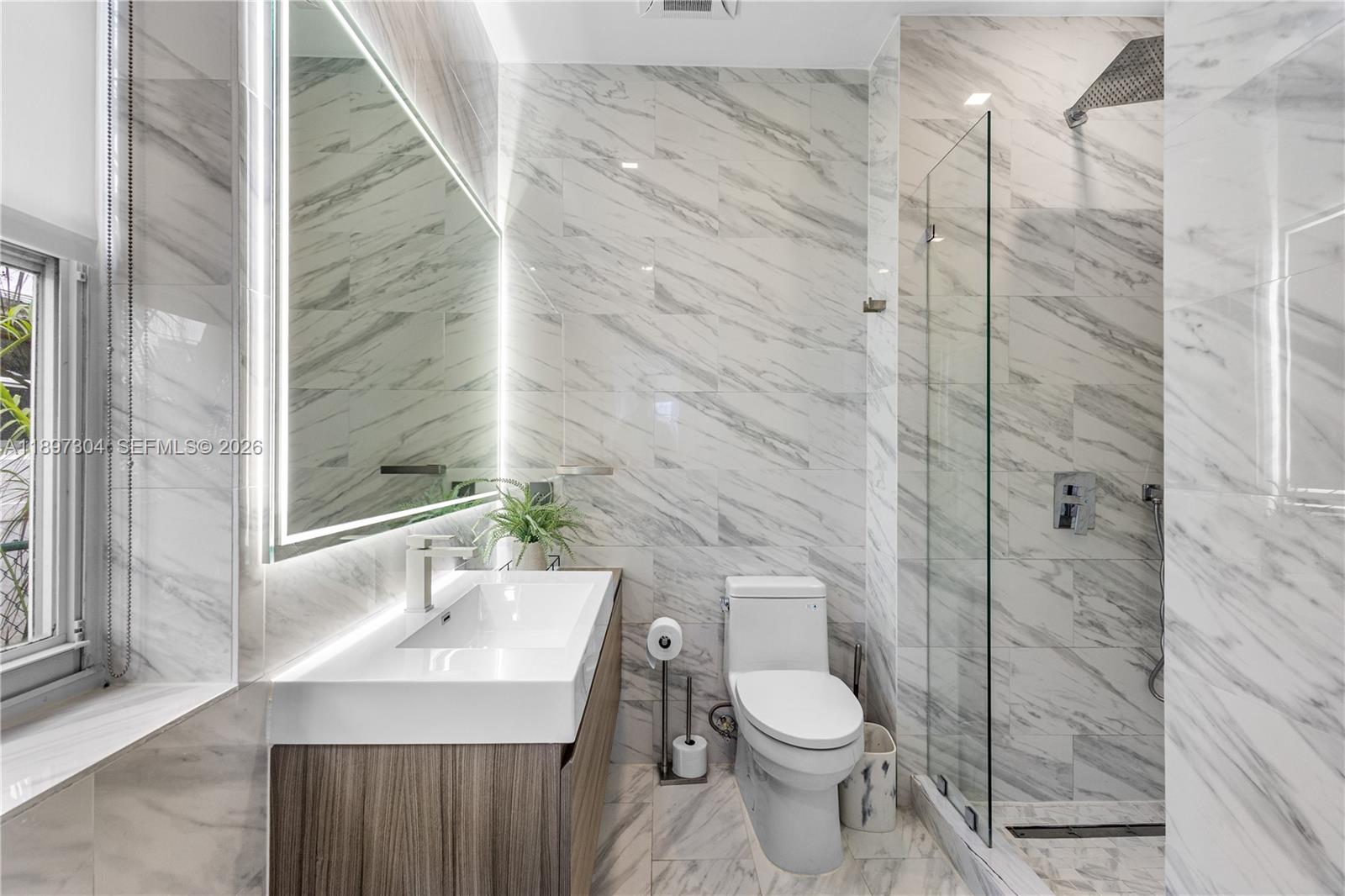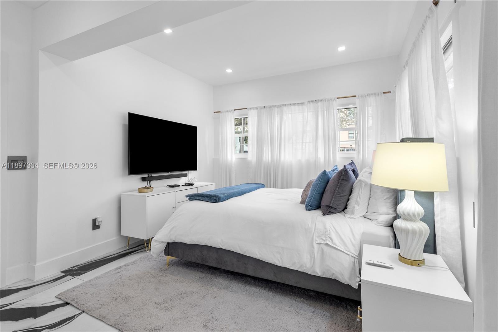 This beautifully remodeled contemporary style, furnished, 3 bedroom, 3.5 bathroom, single family home, boasts high ceilings and an open floor plan with private parking. With oversized impact balcony doors and windows that open up to a spacious private deck with abundant seating. This home has it all, custom built-ins, eat-in kitchen, abundant cabinet storage, stone countertops, high end stainless steel appliances, perfect blend of high style and modern conveniences. Located steps away from Lincoln Road, blocks away from great shops and the beach.