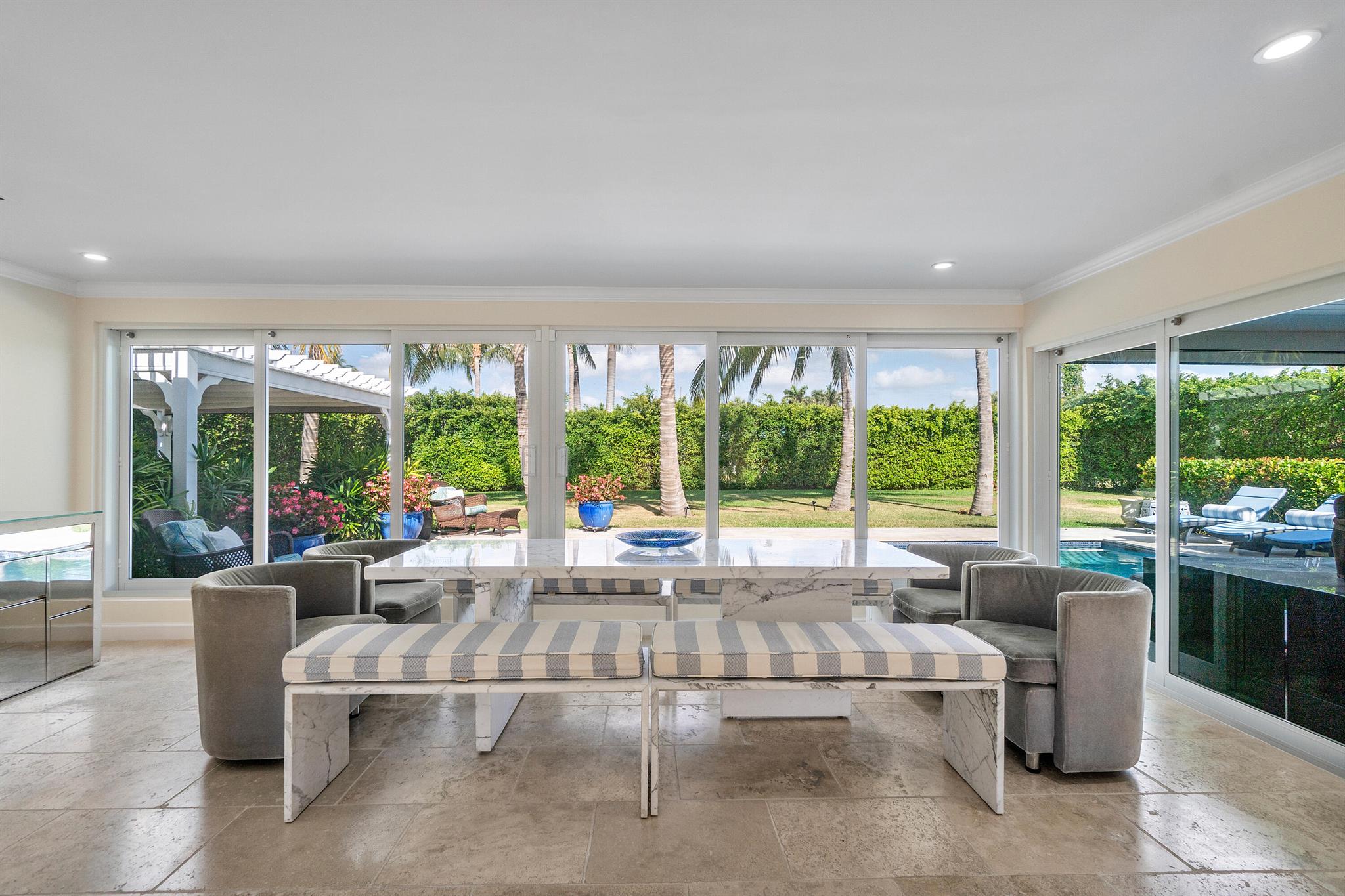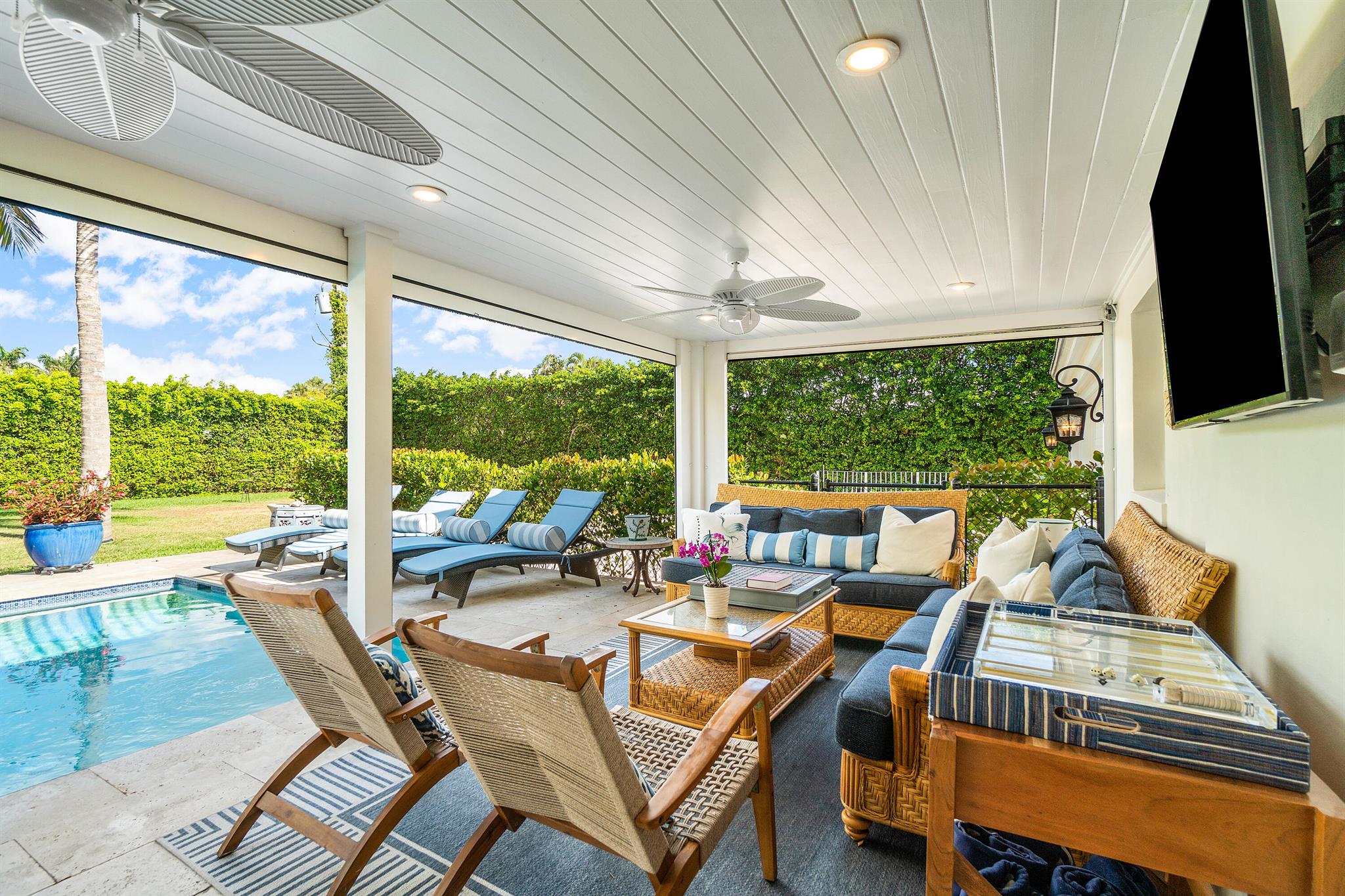 Chic island home for lease in beautiful Point Manalapan. This turn-key 4 bedroom, 3 and a half bath + office, fully furnished home sits on an oversized private lot with a massive heated saltwater pool, two-car garage, and natural light throughout. Includes 5-day per week maid service, access to La Coquille Club & 5-star Eau Hotel and Spa. Please inquire for more information.