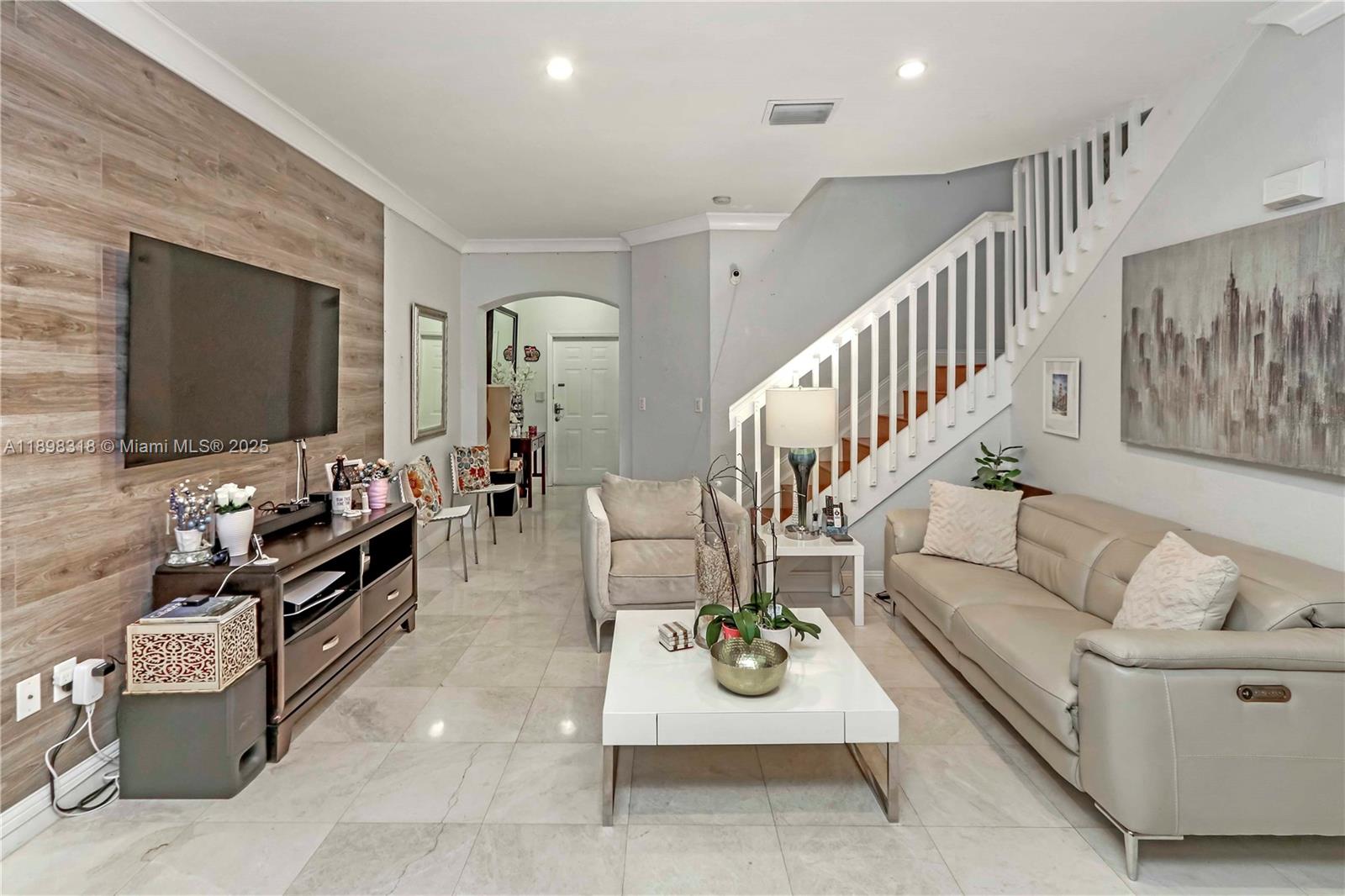 Beautifully remodeled 3BR/3BA townhouse in the desirable Leeward at Doral community. This home features a modern open-concept layout, new kitchen with stainless steel appliances, quartz countertops, and elegant finishes throughout. Spacious living and dining areas with abundant natural light and stylish tile flooring. Private fenced patio ideal for outdoor dining or entertaining. Enjoy resort-style amenities including a clubhouse, gym, pool, tennis courts, and playground. Walking distance to A+ schools, shops, Publix, and restaurants at Midtown Doral. Move-in ready! Easy to show.