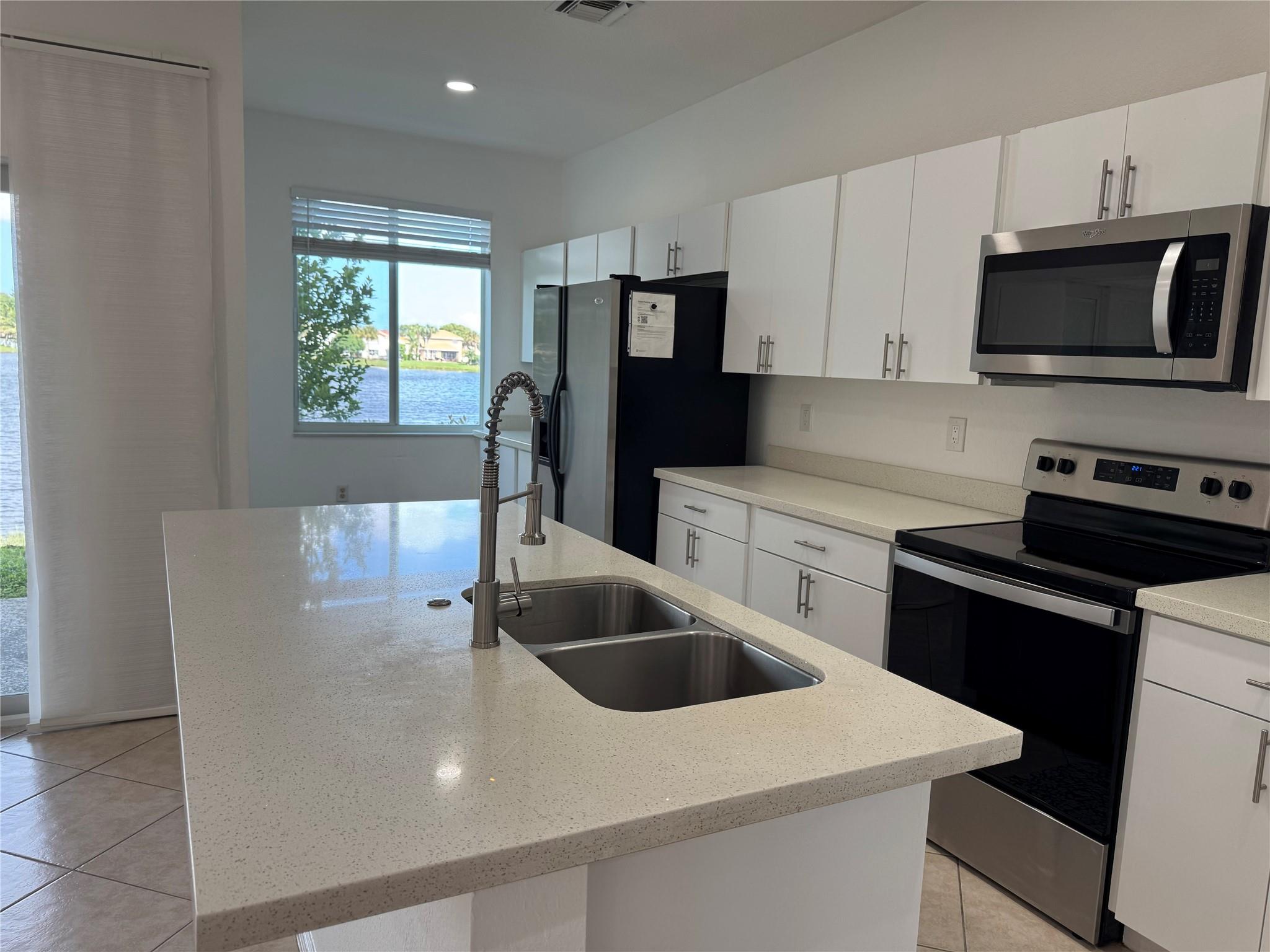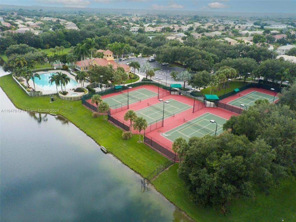 Beautiful lake view three bedroom townhome tastefully renovated. Tiles throughout the property, no carpet. Spacious kitchen features two refrigerators, stainless steel appliances and quartz countertop. Bathrooms have been beautifully renovated. All windows and doors are hurricane impact proof. Rent includes water, sewer and internet. Main bathroom has a shower separate from the perfect tub to soak and relax, dual sinks for his and hers and the guest bathroom has a tub and shower combination. Main bedroom over looks the paeceful lake and features a large walking closet. Perfect back patio overlooking the lake just bring your grill. The community has a great clubhouse with a swimming pool, gym, tennis and basketball courts and a social clubroom perfect for private parties. Split Bedrooms