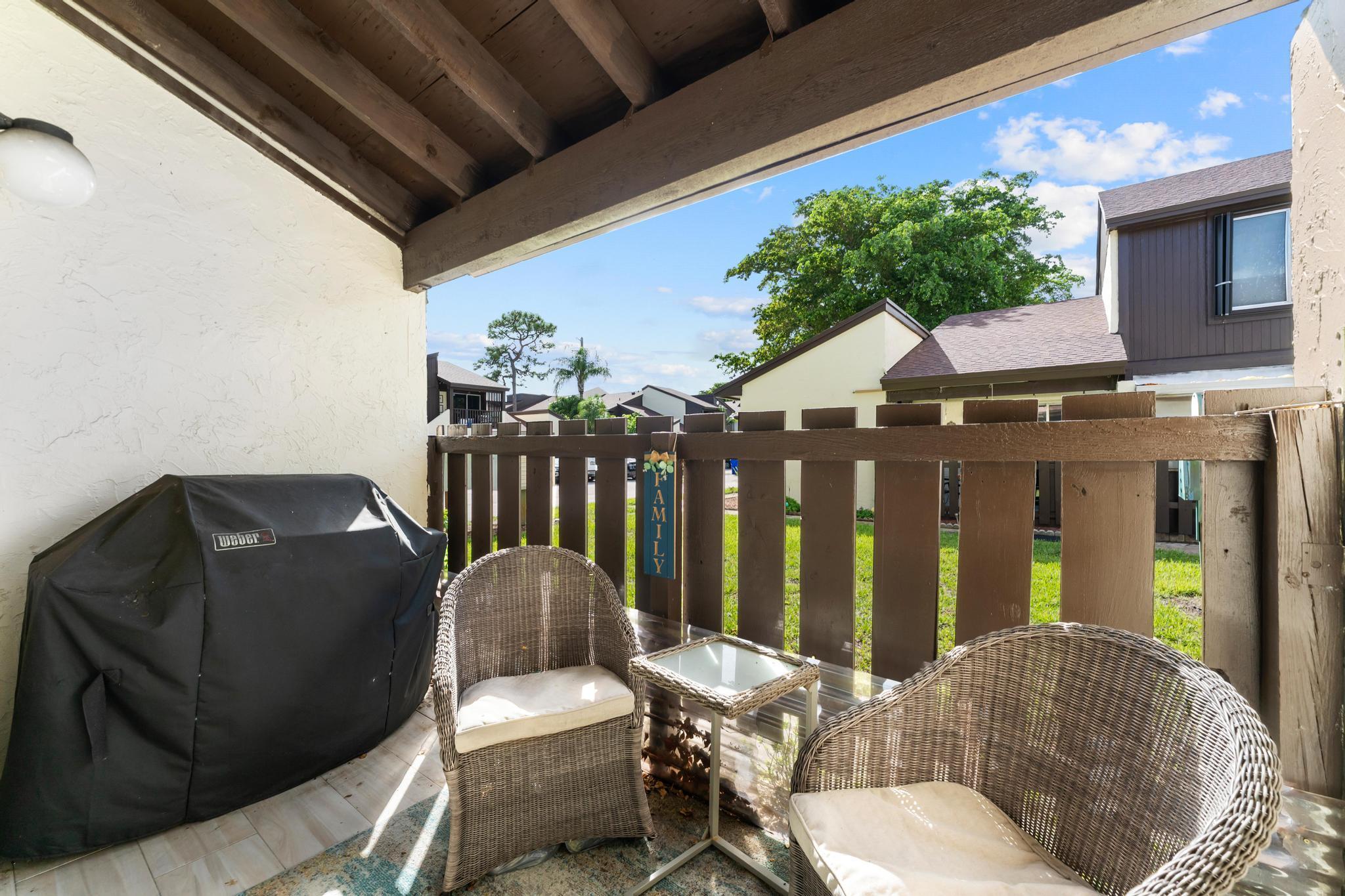 Fully furnished and turn-key 2BD/1BA condo with 1-car garage in The Forest Condominiums. Enjoy an open floor plan with ceramic tile throughout, a well-equipped kitchen, an in-unit washer/dryer, and a private patio complete with a BBQ grill. Rent includes cable, water, internet, lawn care, trash, and pest control--hassle-free living at its best. The pet-friendly community offers a pool, tennis and basketball courts, playground, and ample green space. Located off Southern Blvd, between I-95 and the Turnpike, close to shopping, dining, and beaches. One assigned space plus guest parking included. Don't miss this rare opportunity!