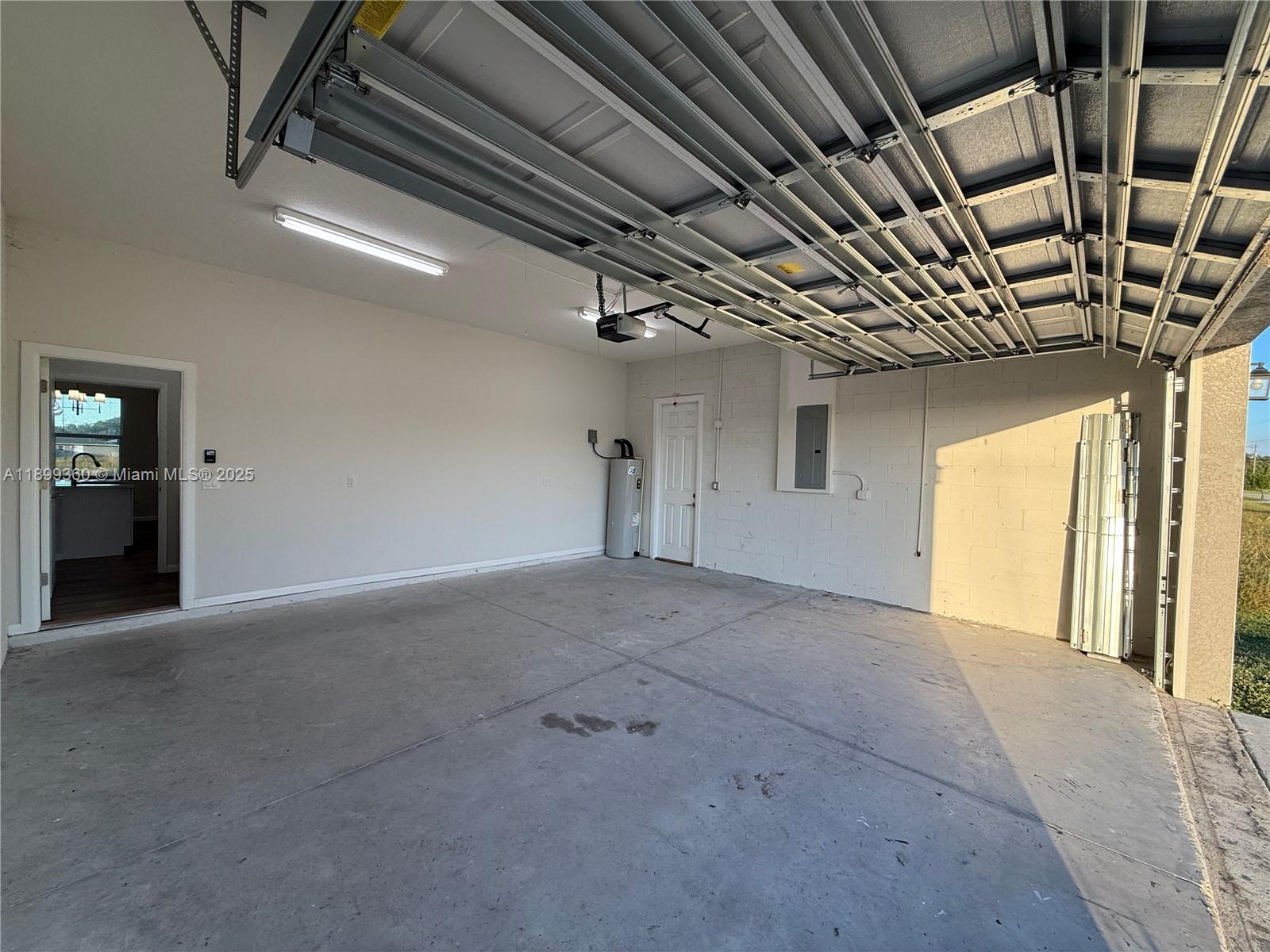 Spectacular house built in 2023. 1 story Single Family Home located in a great community in Port Labelle FI. 4 Bedrooms, 2 full bathrooms2 car garage, 2 bedrooms and a primary suite with large walk-in closet, his & hers sinks, tiled shower, granite counters in bathrooms and kitchen, center island, stainless steel energy efficient appliance package. Approximately 1500 SF under air, over 2100 SF total, covered terrace, soft close cabinets, open floor plan, spacious living room, vaulted ceilings, Bay for 4 cars, Great Backyard! Move-In ready!