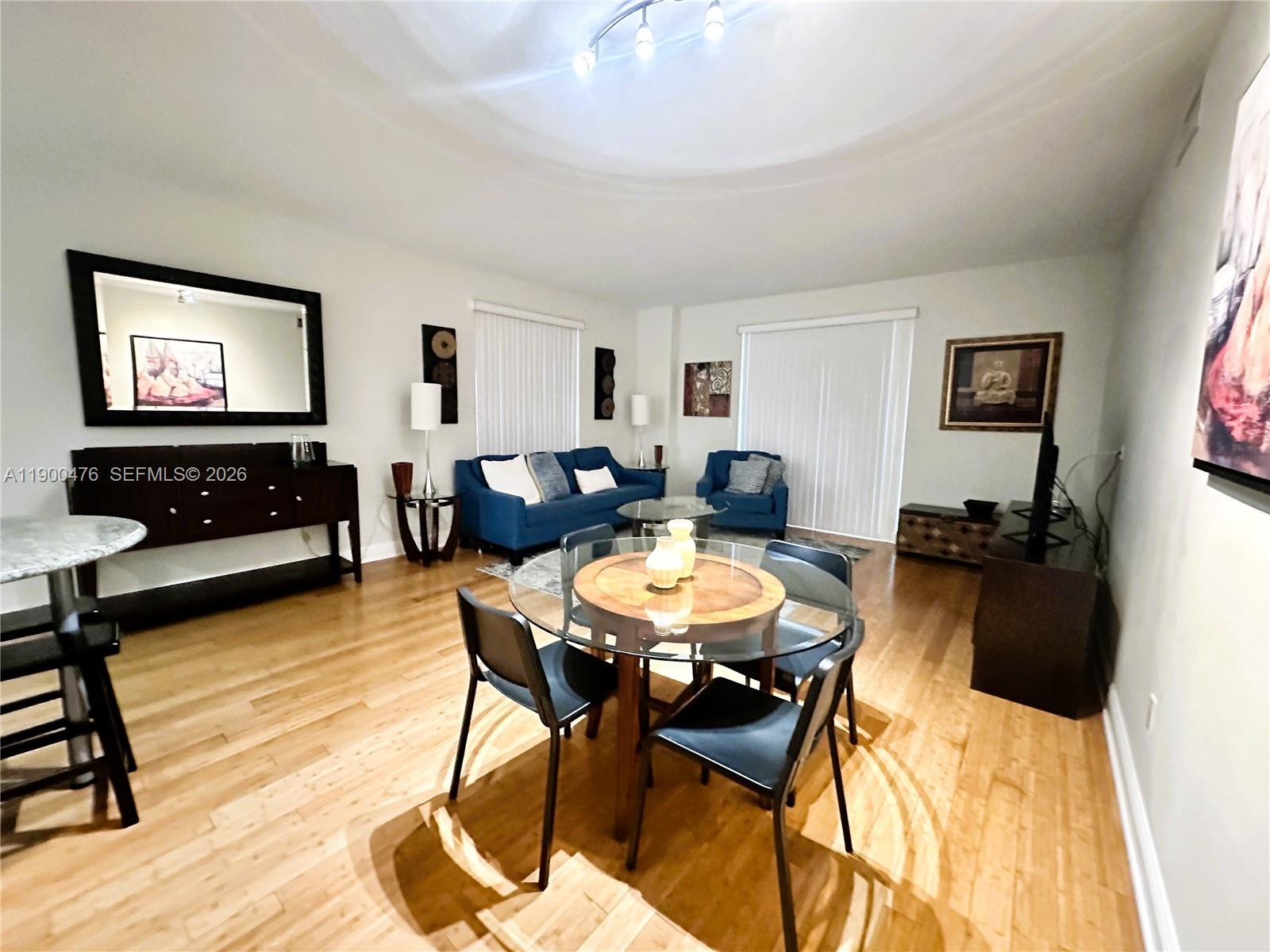 This beautiful corner unit feature 2 bedrooms and 2 bathrooms with bamboo and tile floors, a fully equipped kitchen stocked with appliances and utensils, an open dining and living area, and in-unit washer and dryer; the unit comes furnished with 2 new queen beds and a pull-out sofa bed, includes cable and internet services in the rent, and is recognized as one of the best units in the building—move-in ready. The apartment is located in the sought-after Downtown Dadeland offers an ideal urban lifestyle with walking access to Dadeland Mall, restaurants, and Metrorail, and more. Easy to show.