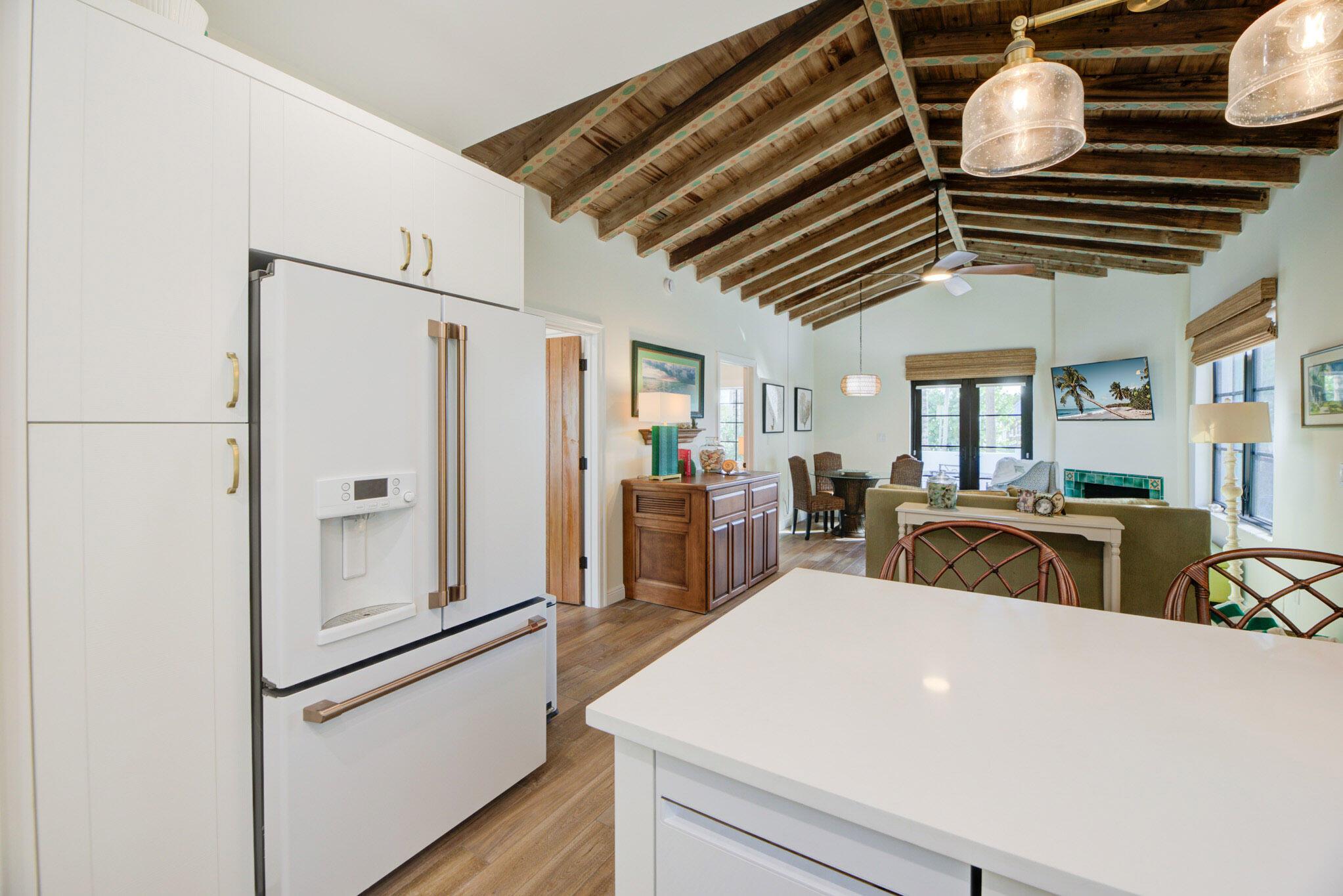 Tucked away in the heart of downtown Delray Beach's Historic Marina District, yet quietly removed from the bustle, lies Marine Way Villas--a charming enclave of beautifully restored 1938 cottages. Rich in character and filled with natural light, this coastal hideaway is the perfect seasonal retreat or annual rental home. Valencia #3 is a freestanding 2-bedroom, 2-bath villa, offered fully furnished and turn-key ready. Step inside to discover a bright, open floor plan with wood-beamed ceilings, a cozy fireplace, and impact glass windows and doors throughout.The chef-inspired kitchen features quartz countertops, a breakfast bar with under-cabinet lighting, a deep farmhouse sink, and white-on-white Cafe appliances--combining timeless charm with modern convenience. details click MORE