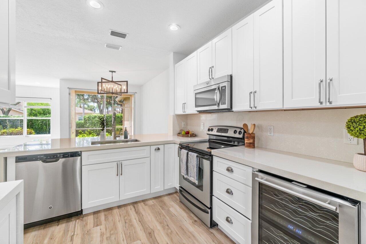 Now available for rent in the sought-after Boynton Oasis community! This beautifully renovated home combines modern design, comfort, and convenience in one inviting package. The chef's kitchen is a true highlight, featuring white shaker cabinetry, luxurious quartz countertops, top-of-the-line stainless steel appliances, a built-in wine cooler, and an expansive island perfect for cooking, dining, and entertaining. The 2.5 bathrooms have been tastefully updated with matching white cabinetry, sleek backlit mirrors, and contemporary fixtures, creating a clean, refined look. Enjoy your morning coffee or unwind in the evening on the screened-in patio, offering a peaceful outdoor retreat.