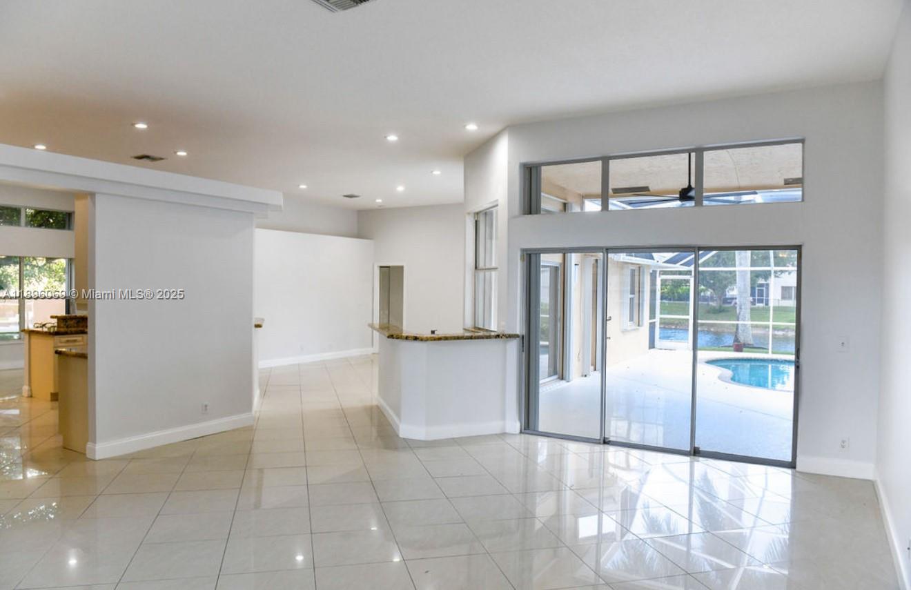 Beautiful lakefront home, open floor plan with 4br/2 with a private heated screened-in pool with waterfall. Situated in a cul-de-sac of a 24/7 gated community (guard at gate ) with tennis courts. Kitchen with granite countertops ad stainless steel appliances and remodeled bathrooms. GREAT home for a family. A+ schools . The community is conveniently located right by Terramar Park.