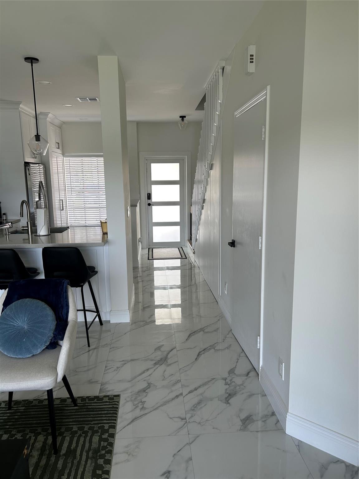 Enjoy lakefront living in this beautifully renovated 2-bedroom, 2.5-bathroom townhome featuring en-suite bedrooms with walk-in closets & thoughtful updates throughout. The home boasts a brand-new kitchen with modern finishes, updated bathrooms, new flooring, upgraded lighting, & hurricane impact windows. The kitchen includes a spacious bar w/ built-in storage underneath—perfect for both entertaining and functionality. Additional smart storage beneath the stairwell. Backyard has low-maintenance turf overlooking the tranquil lake. Parking is easy with a 2-car driveway and guest parking conveniently nearby. Enjoy the community pool, gym, tennis, and rec center. Community is gated. Move in available Dec. 1, 2025.