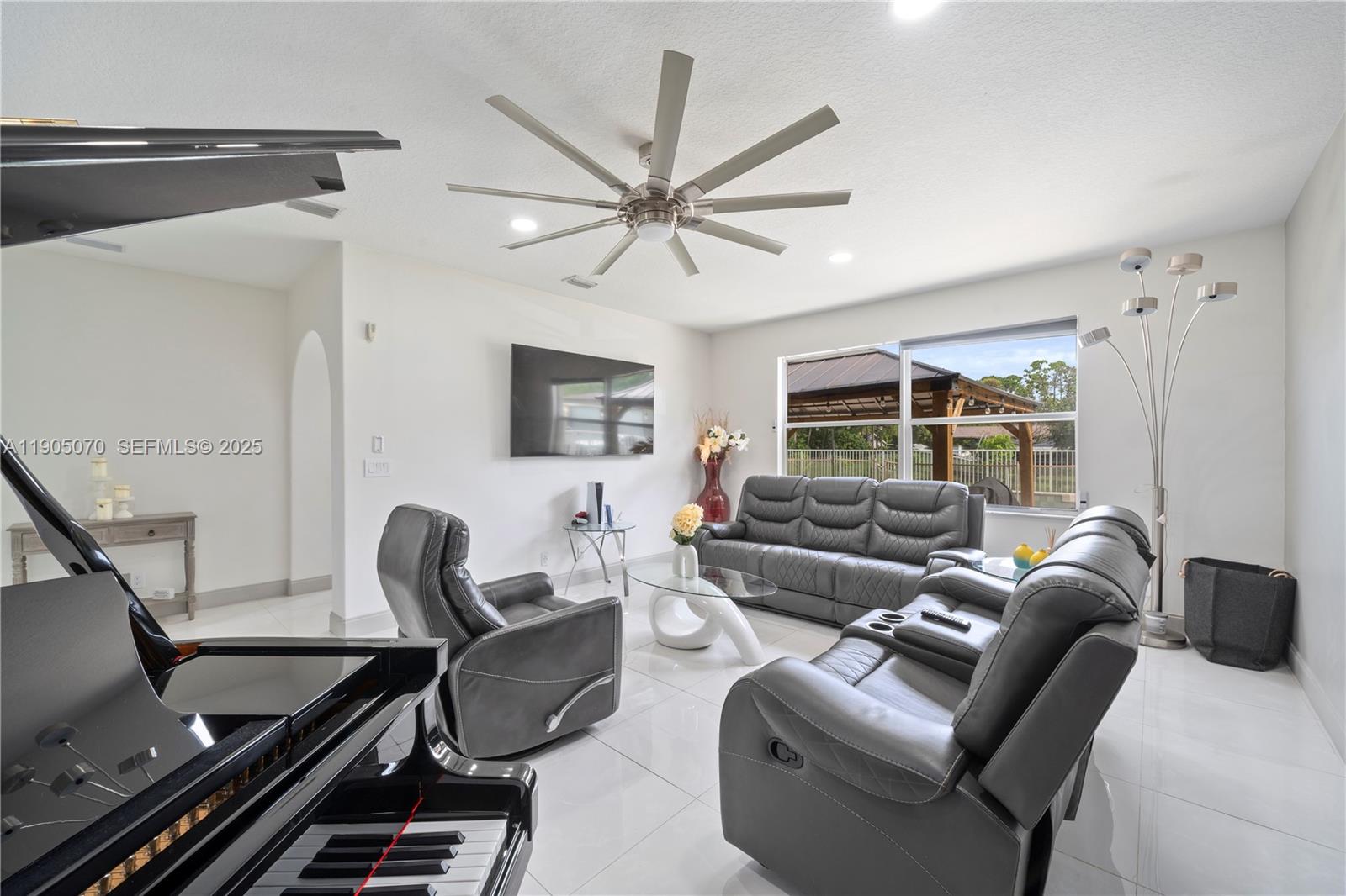 Spacious 3-bed, 2.5-bath pool home on 1.14 acres. Features a 5-car garage, including an 800 sq. ft. detached garage. Enjoy a large pool with a gazebo for entertaining. Newly remodeled kitchen with quartz countertops and top-of-the-line stainless steel appliances. Updated bathrooms with double sinks, tub, and separate shower. Master suite with a walk-in closet. Includes recessed lighting throughout the house, built-in surround sound, solar panels for energy savings, and a storage shed. A perfect blend of luxury and comfort!