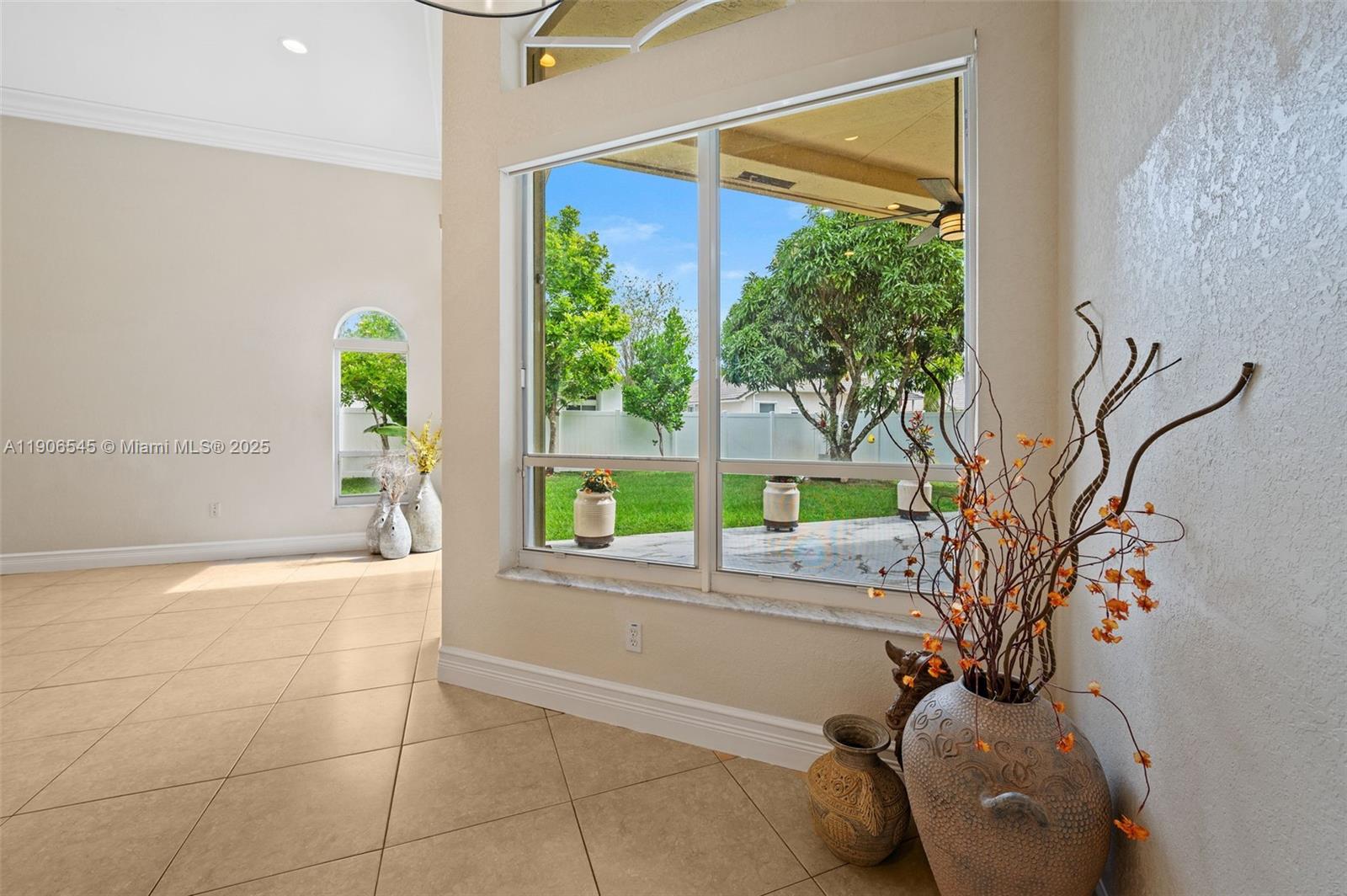 Welcome to this stunning 5-bedroom (office is 5th bedroom), 3-bathroom, one-story home in the prestigious gated community of Pembroke Falls. This beautifully maintained residence offers an open floor plan that perfectly blends elegance and comfort, ideal for everyday entertaining. Enjoy a spacious living and dining area with abundant natural light and seamless flow into the modern kitchen and family room with the triple split floor plan layout. Step outside to a covered patio overlooking a lovely backyard, perfect for relaxing or hosting gatherings year-round. Pembroke Falls is known for its exclusive amenities and resort-style clubhouse, with a state-of-the-art fitness center, swimming pools, tennis courts, and scenic walking trails—all within a beautifully, secure community.