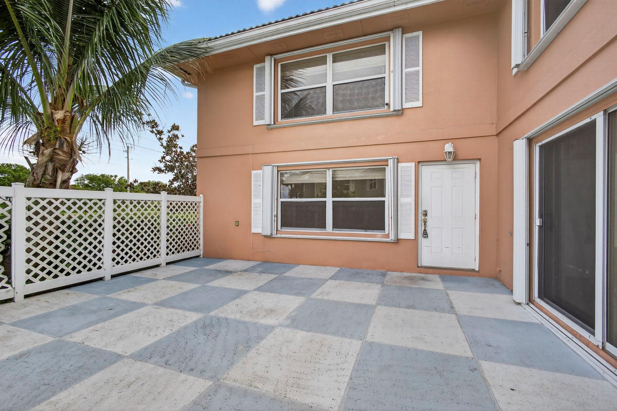 This 2-bedroom, 2.5-bathroom townhouse offers 1,350 sq ft of living space with brand new AC installed. The property features a practical layout, ideal for comfortable living. Features fenced open courtyard patio - perfect for relaxing or entertaining! Decorative tile on 1st floor. 2nd floor living features carpet and 2 master suites with their own private bathrooms & balconies. Large open kitchen with stainless steel appliances and half bath downstairs with washer & dryer. Accordion shutters on all windows for added protection and convenience! Water included with rent!