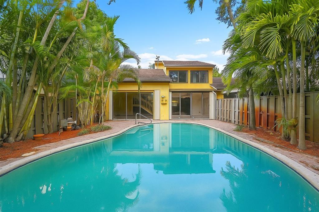 Completely updated 2BR/2BA townhouse with private pool and tropical landscaping. Features vaulted ceilings, large windows overlooking the backyard, granite counters, soft-close cabinetry, and newer stainless-steel refrigerator. Bathrooms recently updated with new vanities and flooring. One bedroom is on the ground level; the upstairs master includes an enclosed patio and walk-in closet and has new flooring. Additional highlights include laminate flooring, loft area, covered parking for two or more cars, accordion shutters, indoor and outdoor storage, and brick pavers surrounding the pool — perfect for entertaining or relaxing in your private oasis.