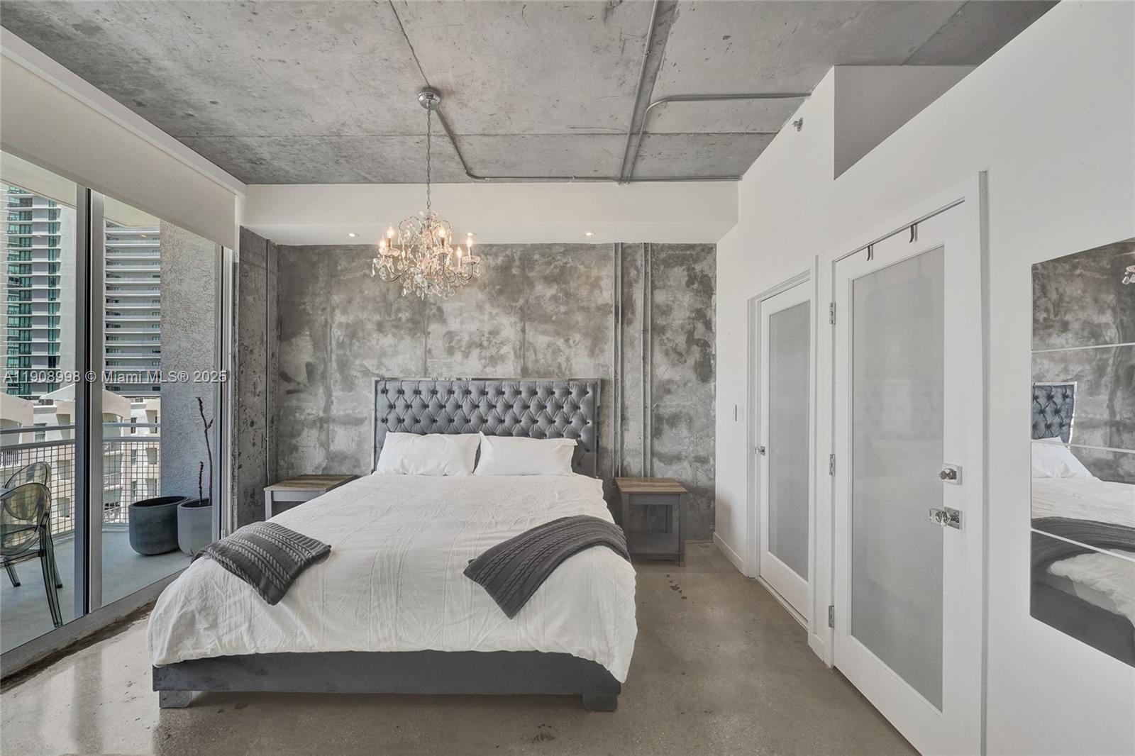 Experience the essence of loft living in Edgewater's thriving neighborhood, offering stunning Biscayne Bay views from a spacious and luxurious balcony. This loft is flooded with natural light through its 10-foot floor-to-ceiling sliding glass impact windows, showcasing a modern industrial aesthetic with sleek concrete floors. Situated just minutes from Downtown, the Design District, and Miami Beach.