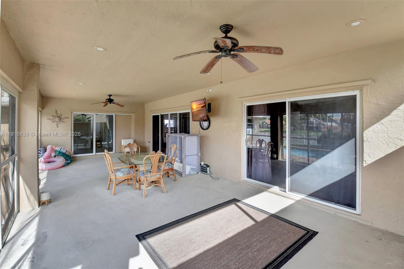 AVAILABLE JANUARY 2026! This stunning 4-bedroom, 3-bath pool home offered furnished or unfurnished is perfect for comfortable family living. Designed with a sleek contemporary style, your welcomed thru a covered porch leading into an open foyer and spacious living room that flows effortlessly into the dining area and breakfast kitchen with bar seating. A custom addition enhances the layout with a large media room, office, or study, complete with its own full bathroom. Each bedroom features generous closet space, including a walk-in closet in the primary suite. Additional highlights include a 2-car garage, laundry area, and a screened patio with deck terrace overlooking the backyard. Outdoor living with a heated pool, jacuzzi, and tiki hut—perfect for relaxing or entertaining year-round.