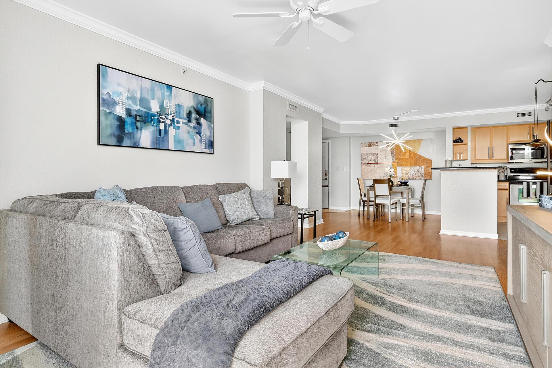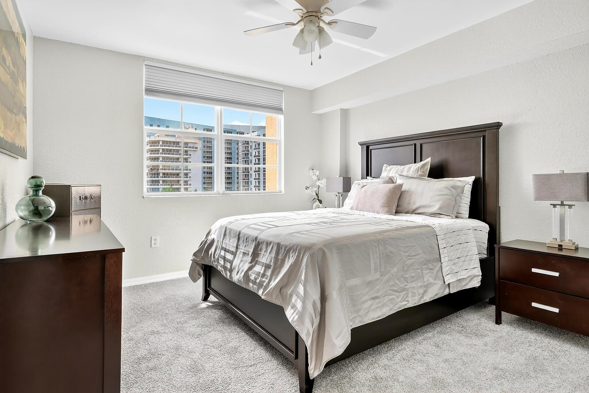 Beautiful two bedroom/ two bathroom Condo with fabulous water views. Available seasonal or annual. This gorgeous condo is newly furnished and fully stocked for a turnkey experience. The primary bedroom has a brand new king size bed & bedroom set including a brand new TV and a newly remodeled spa like bathroom. There is a 65 inch flatscreen TV on the newly remodeled/decorated living room. Just minutes from Palm Beach and city place. Seasonal rates are $6500 for 3 mo, $6000 per mo for 4 mo, $5500 for 5 mo & $5250 for 6 mo and no tax!