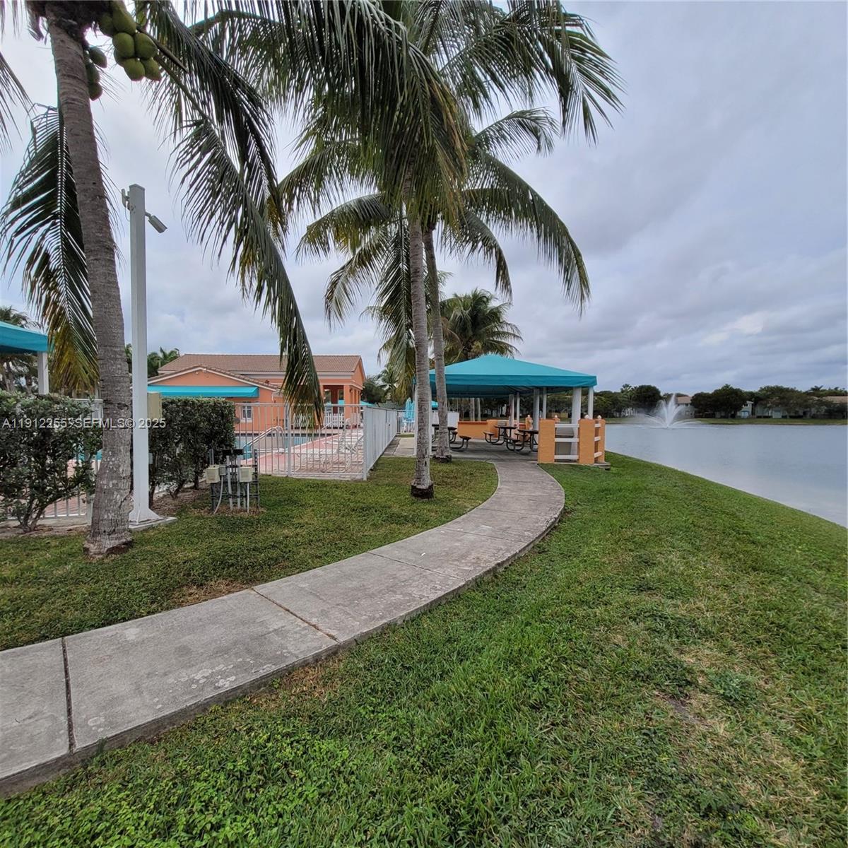 Gated, with guard at the gate and security patrol 24 hours, amenities including pool and BBQ. All tile floors, washer dryer inside unit, one assigned parking, one more in guest spots with decal. Pool and BBQ area, management on site. PS: Washer/Dryer is already installed Free preliminary background check is needed. First month rent and one month security deposit needed before move-in