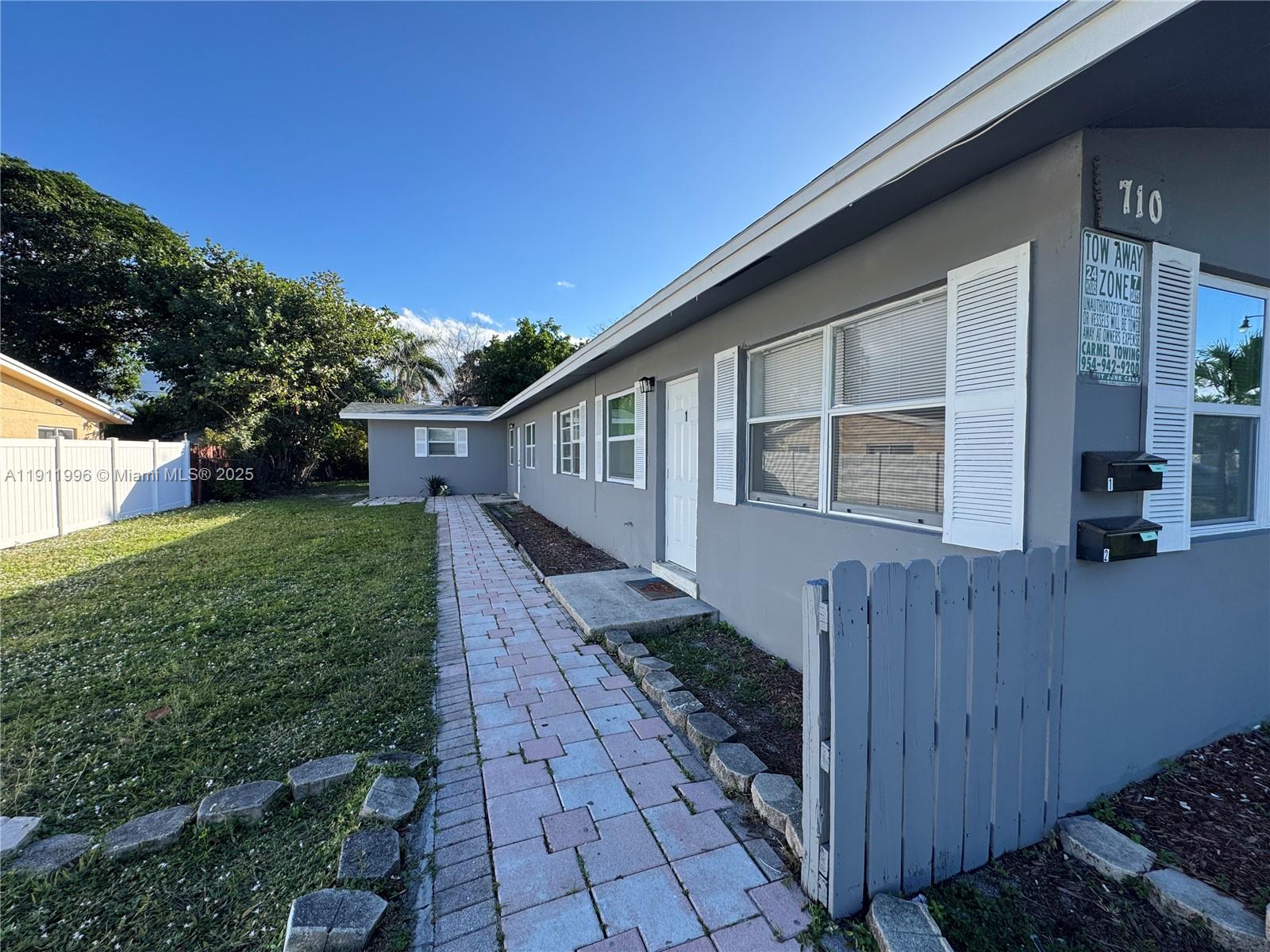 Owner will consider Sec 8 Tenant. Front Unit duplex THREE BEDROOM, very spacious, 1000 sq ft, & one of the largest close by. Newer ROOF (2021), Newer Central AC Unit, Newer electrical panel, NEW Fence, Newly painted interior & exterior, NEW FULL SIZE WASHER & DRYER, NEW ceiling fans, Granite Countertop, ALL TILE, plenty of closets & storage, NEW toilet, NEW windows, NEW INTERIOR doors, NEW FRONT DOOR & Locks, NEW Blinds, PRIVATE BACKYARD separate from back unit, plenty of parking, across the street from an elementary school, & just west of Fed Hwy, & a few miles to the beach! There is a separate exit door to a FENCED IN YARD, away from the back tenants for activities, & for your dog. Owner will consider 1st mo. rent, & security based upon application. PHOTO OF Bathroom posted soon!