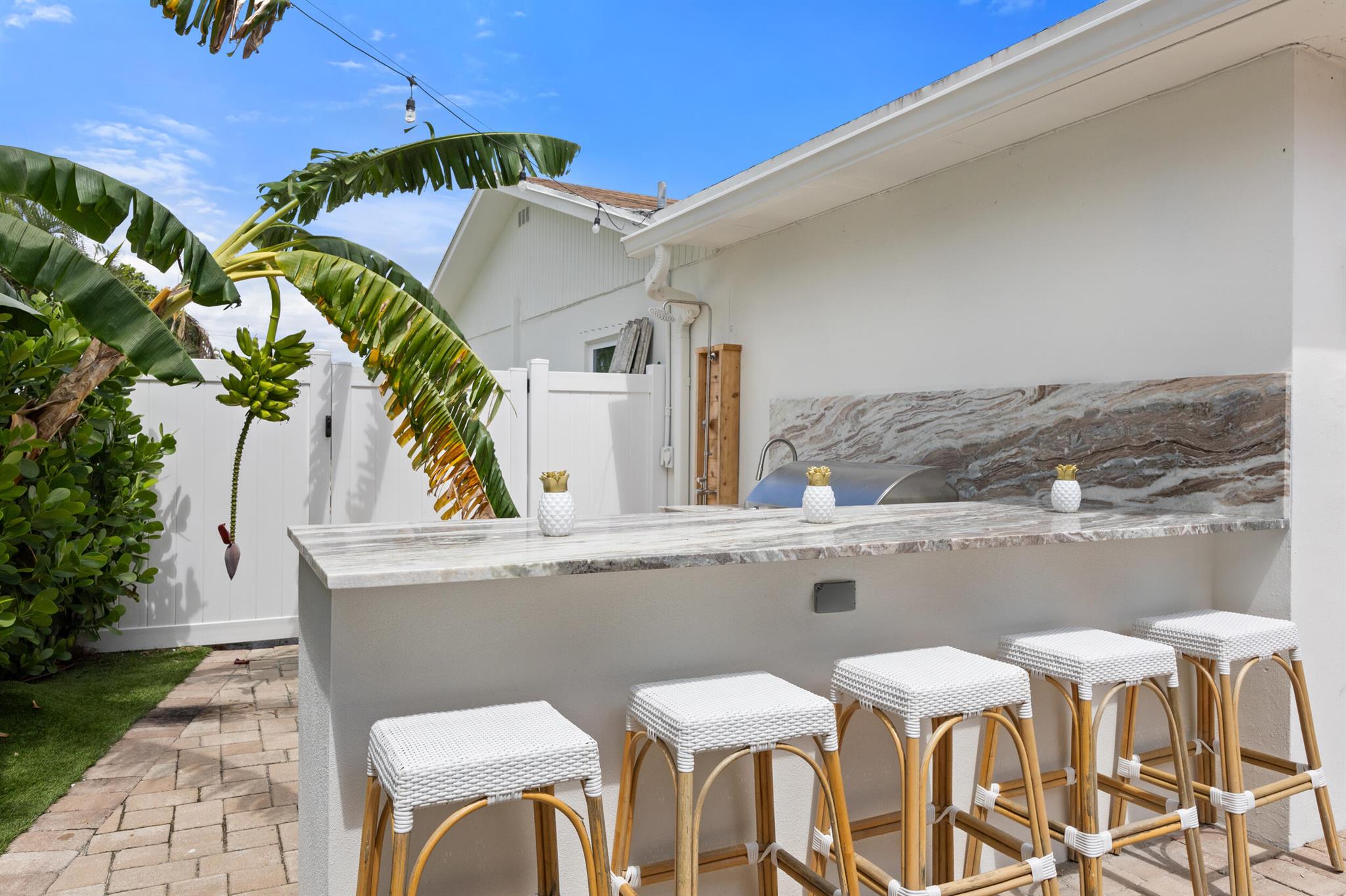 Completely renovated in 2024, this stunning 4-bedroom, 2-bathroom fully furnished home offers the perfect combination of modern comfort and resort-style living. Located just 3 miles to the beach, 4 miles to Atlantic Avenue, and one block from Caloosa Park, a 65+ acre community park featuring pickleball and tennis courts, fitness trails, playgrounds, and sports fields.The home's backyard is a true private oasis -- featuring a heated saltwater pool, covered gazebo with fire pit, outdoor kitchen, and custom putting green. Ideal for entertaining or relaxing year-round.Inside, the open-concept layout includes a bright, modern kitchen, spacious living and dining areas, and a dedicated game room. Every detail has been thoughtfully designed for style, comfort, and functionality.