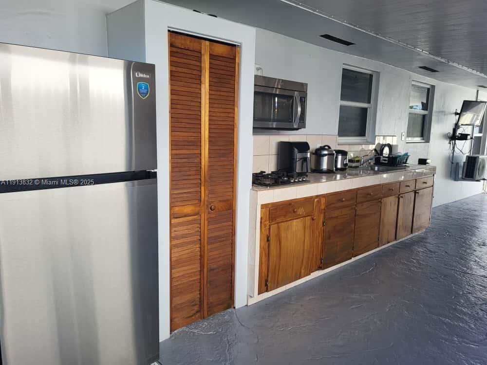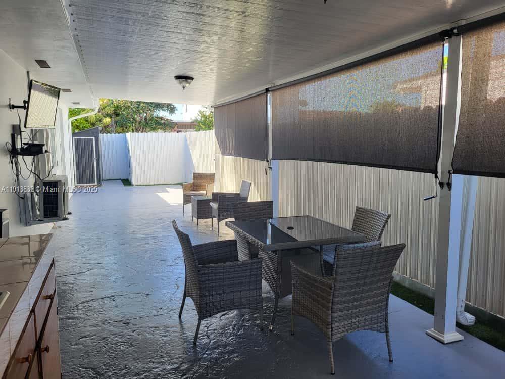 Modern studio apartment partially furnished with laundry, private entrance and 2 parking spaces, centrally located by FIU. Light and water included. Only one month deposit required.