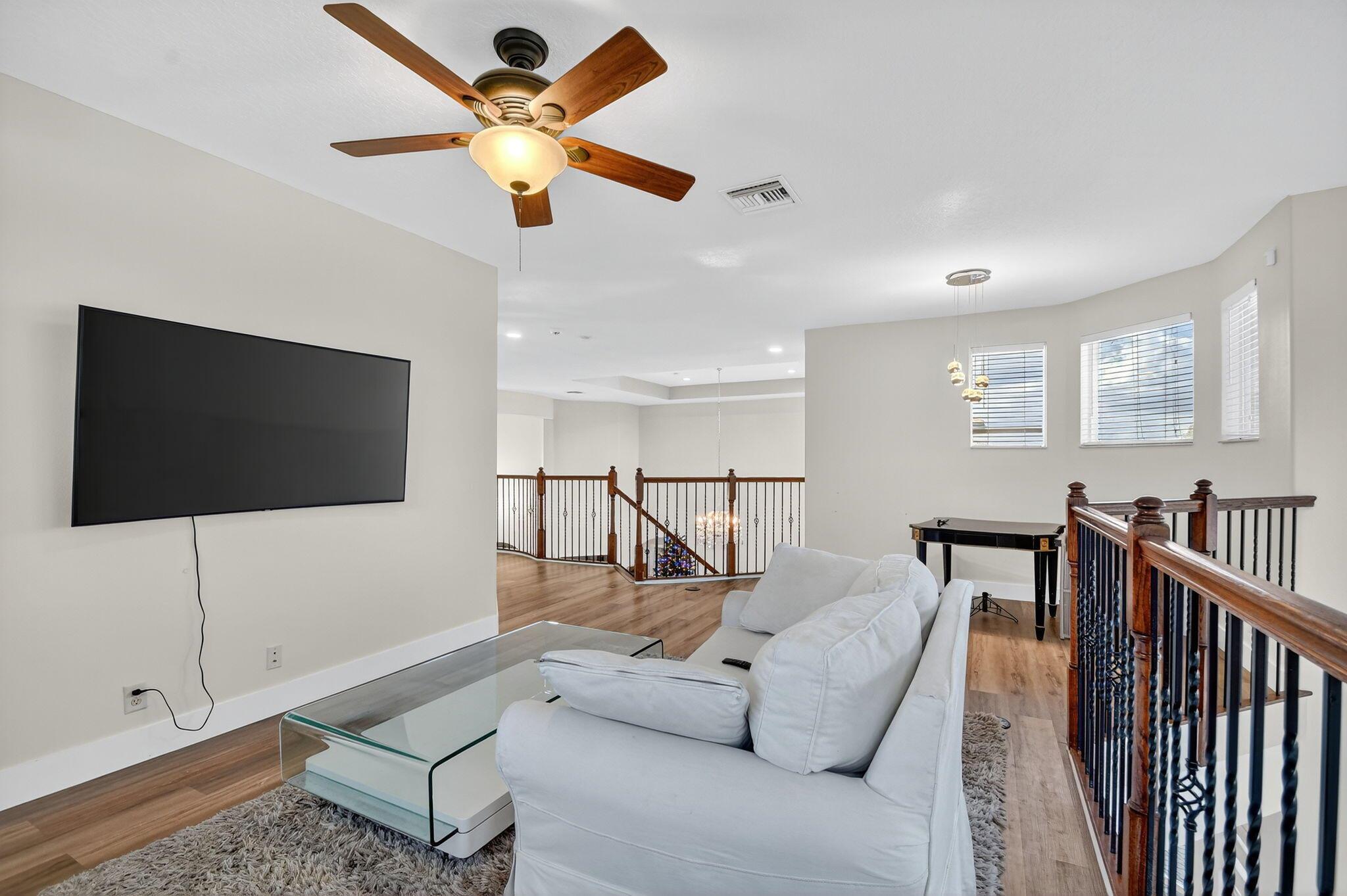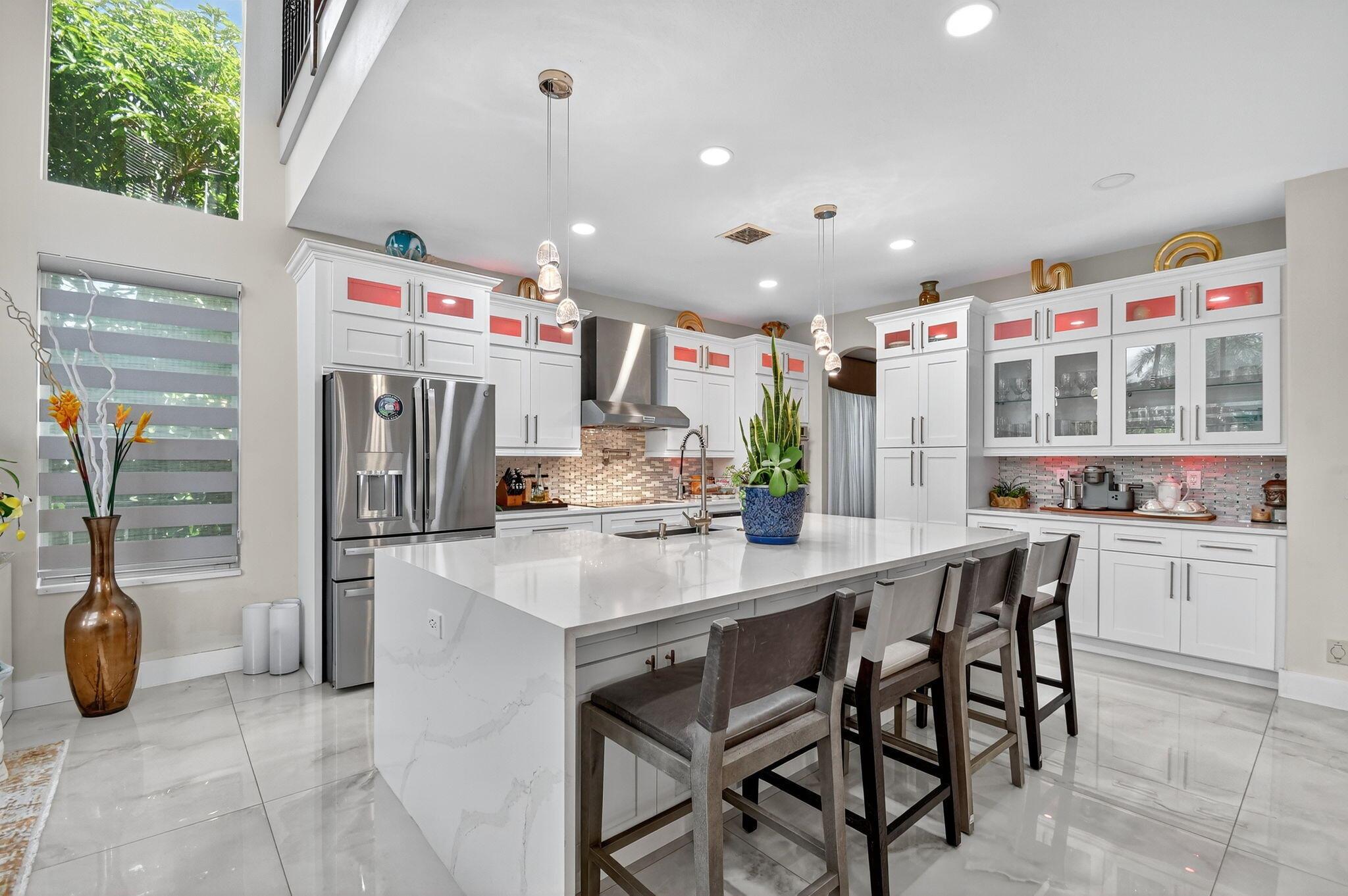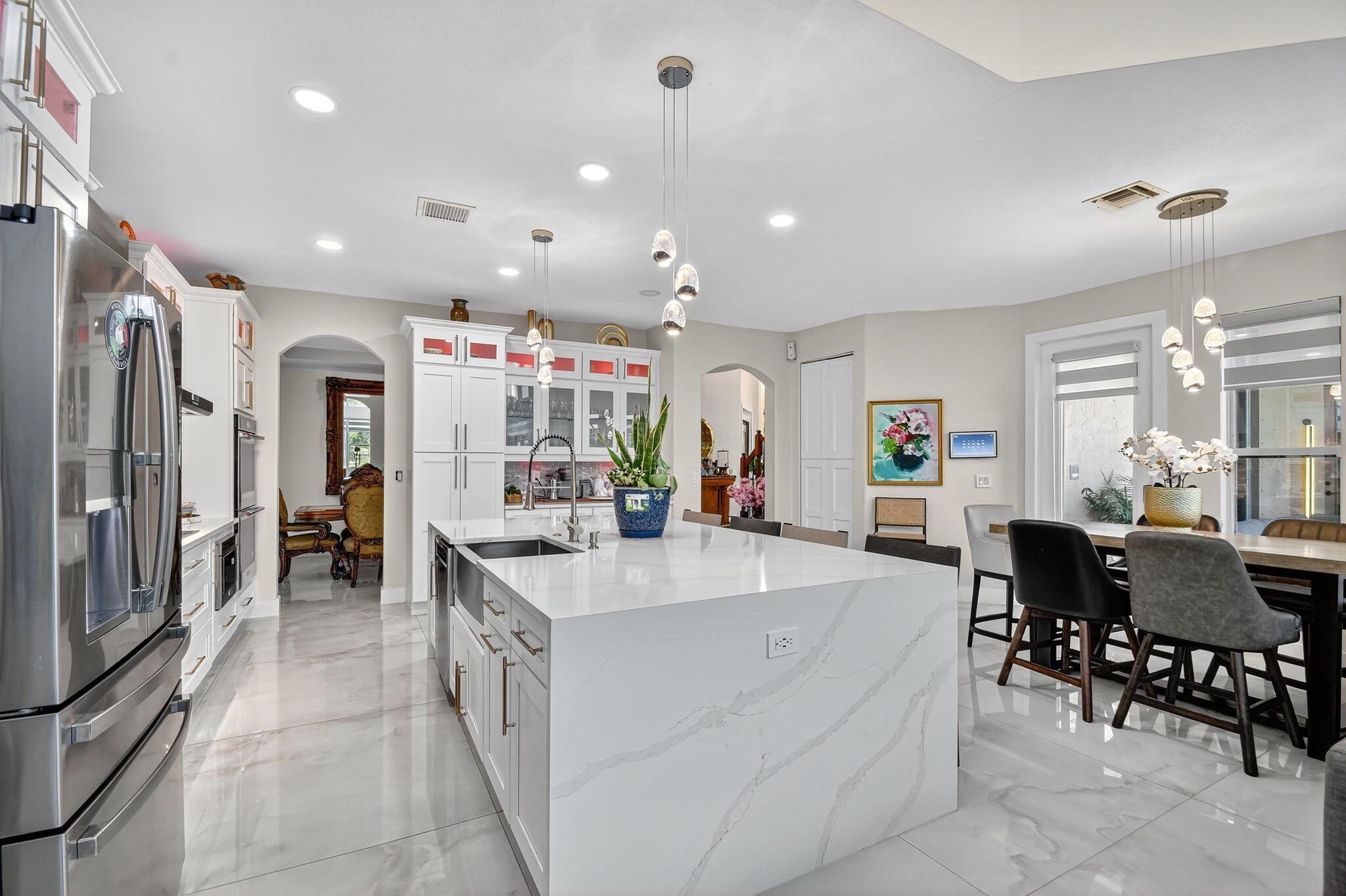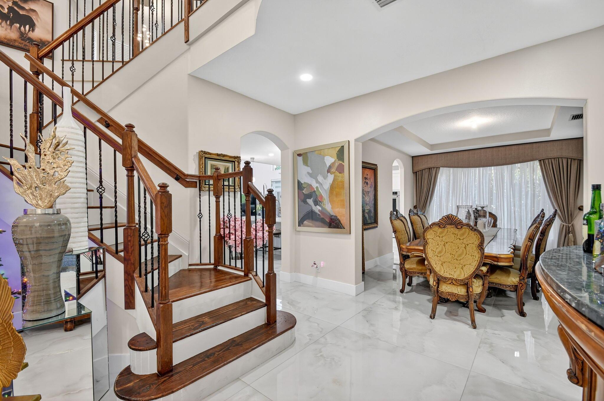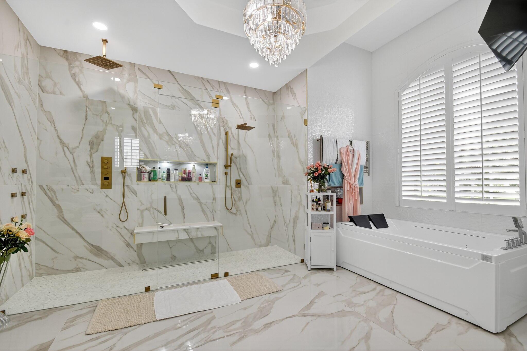Upgraded 4000+ 5 bedroom, 4 baths, plus a den with new flooring, light fixtures, bathrooms, recently painted, and updated landscaping. Master bedroom, master bath, and guest bedroom located on first floor. 21 feet ceiling adds luxury and spaciousness. appealing. The large chef kitchen has been completely redone. The bathrooms have been renovated with modern features. Good schools nearby.