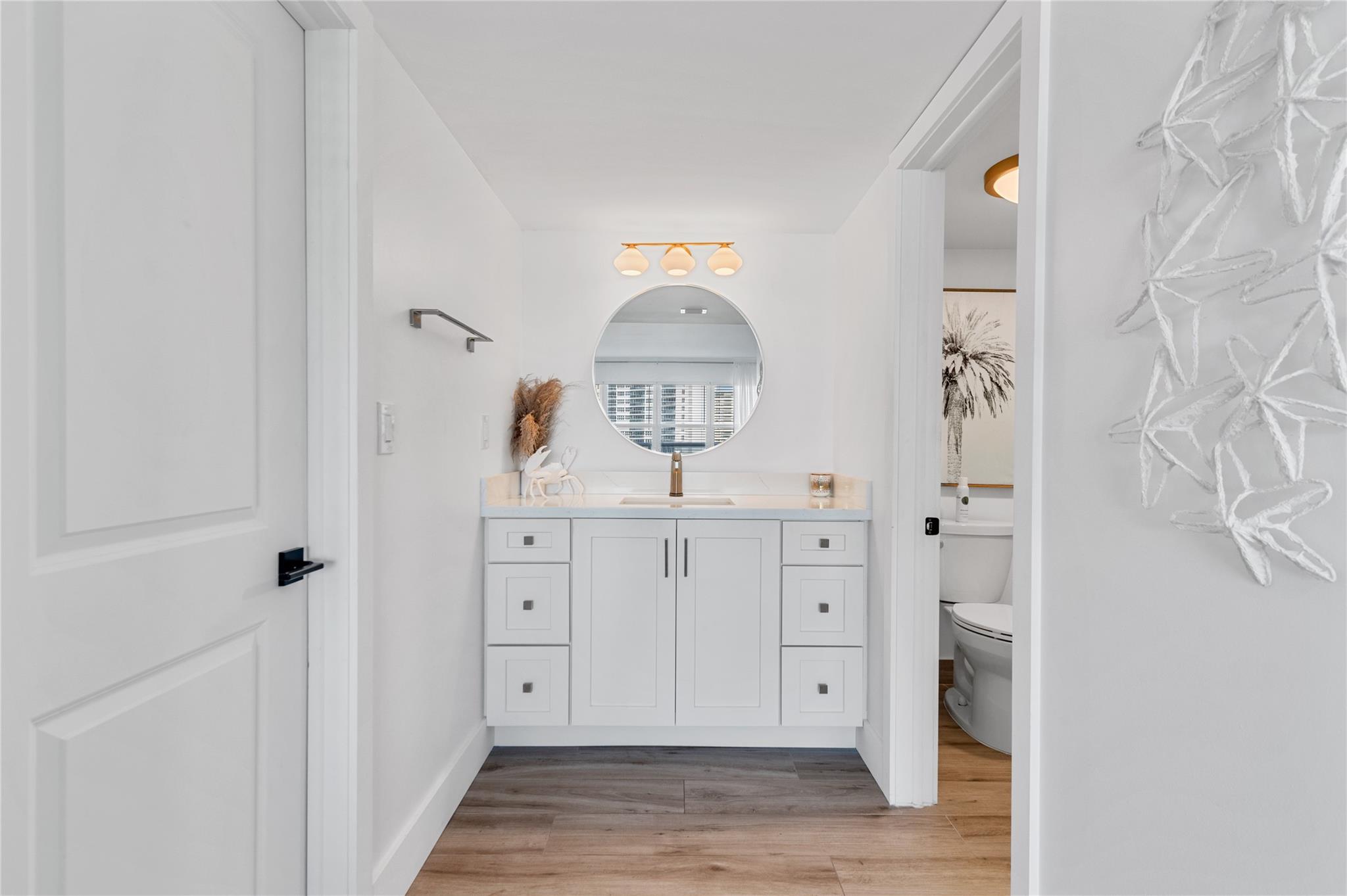 Truly spectacular condo with top of the line updates throughout. This unfurnished annual rental. 1209 sq ft large 1 bedroom 1.5 bath is a perfect beachfront condo. Sandy wood style tile throughout. Large kitchen with white quartz countertops, stainless steel appliances and shaker style cabinets. Also, bar seating area perfect for your morning coffee. Master bedroom with plenty of space for your bedroom furnishings. Large walk in shower with brushed gold shower head and handle. Unit has full size washer / dryer in kitchen. Garage spot. High impact windows and doors. Building amenities include two gyms, game room, large heated pool, gas grills, community room with two bars, library, car wash area, bike storage and more! Walking distance to grocery store, restaurants, entertainment and more!