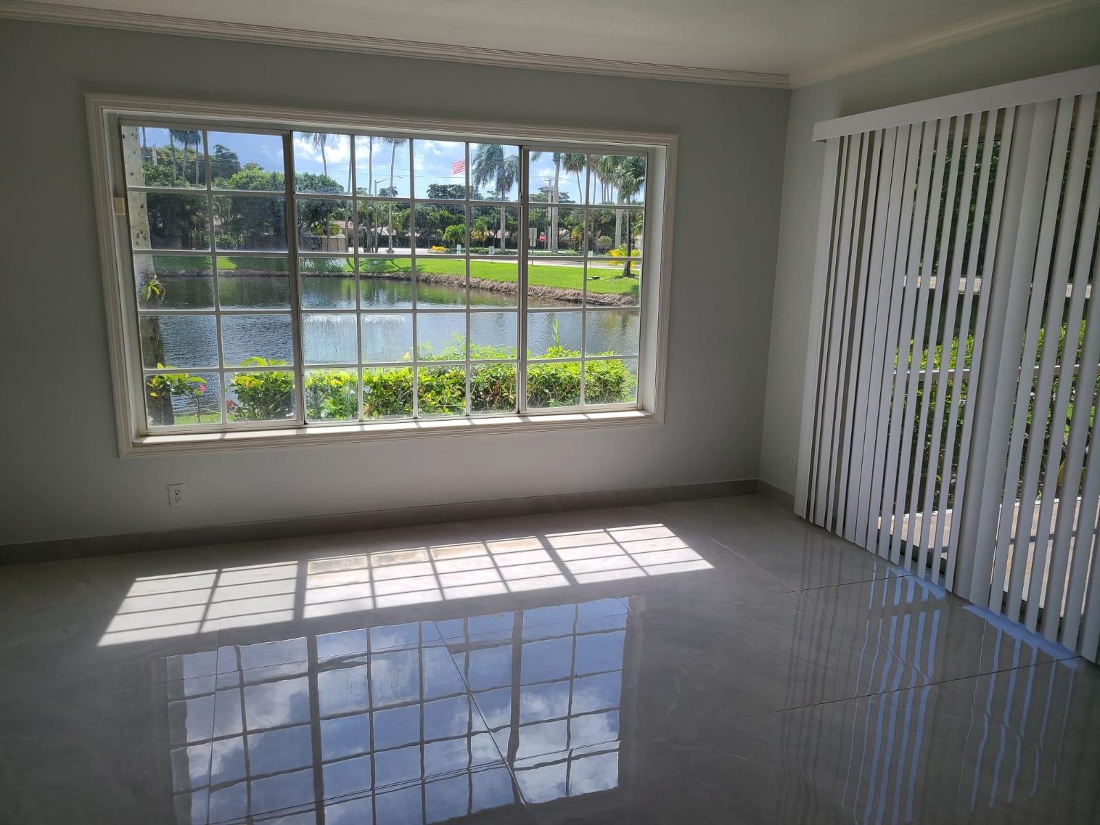Modern gorgeous very spacious 3 condo on the ground floor in Delray Beach. Facing the lake and offering 3 full bedroom + a big den ideal as a studio/office. Almost 1600 Sqft. under air. Brand new white kitchen cabinets with quartz countertop and SS appliances, everything is one year old. New a/c unit. Very long balcony facing the lake. All ages community. Internet, cable tv, water included in rental price. Full size washer/dryer. This property is 2 miles from the Marketplace with great restaurants and a few minutes from downtown Delray and the beach. Porcelain floor throughout. Very bright unit. Two gorgeous pools and Jacuzzi + pickleball court.