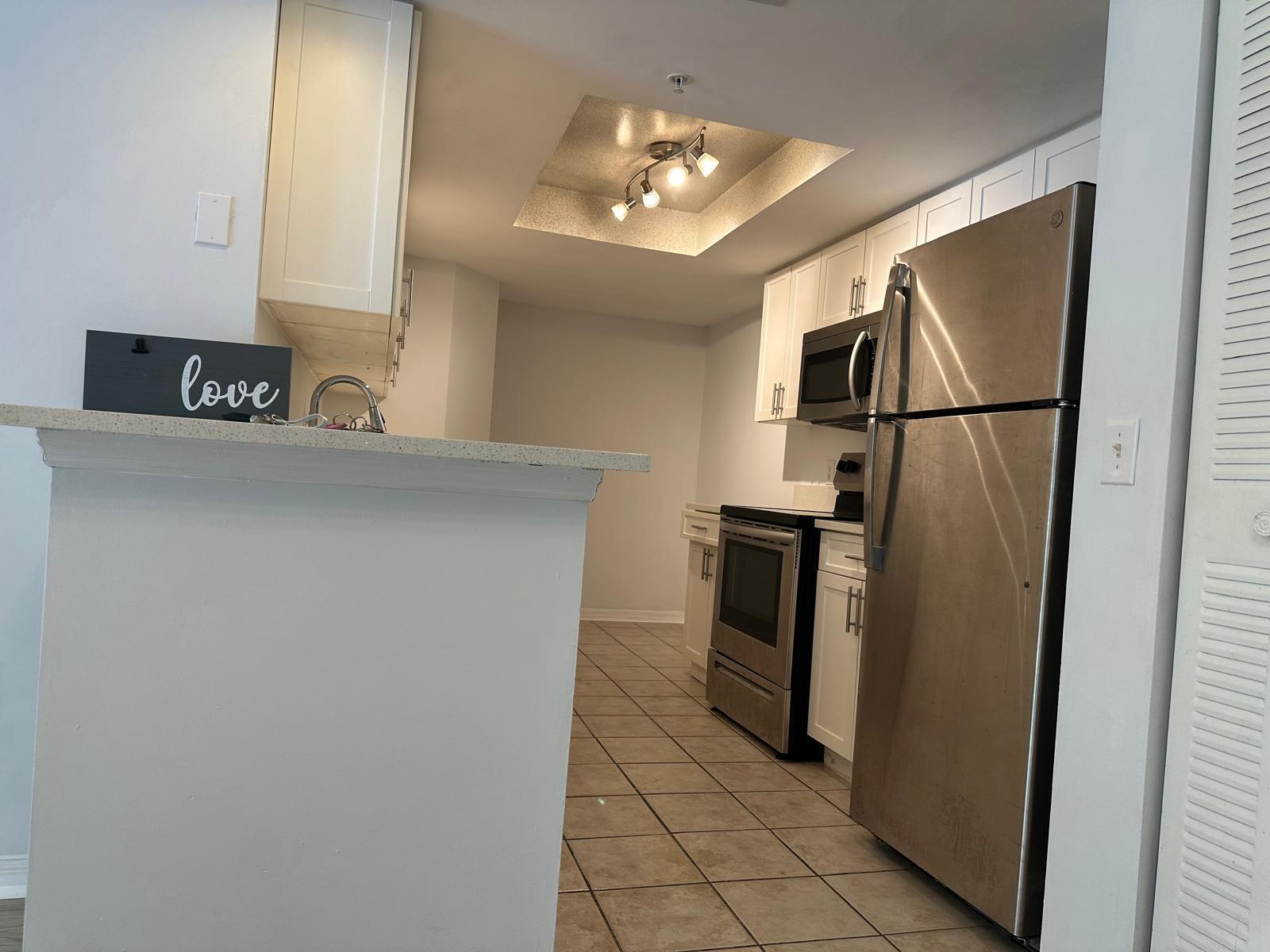 Move in Ready! Spacious and unique 3-bedroom, 2-bathroom condo with a GARAGE an opportunity that doesn't come around often! No popcorn ceiling. Located in a secure, gated community offering a range of amenities including a pool, clubhouse with fitness center, and more. Centrally located near Palm Beach Outlets, downtown, I-95, and the Turnpike. One minute away from Lincoln park with fulls of fun. Don't miss out--schedule your visit today!