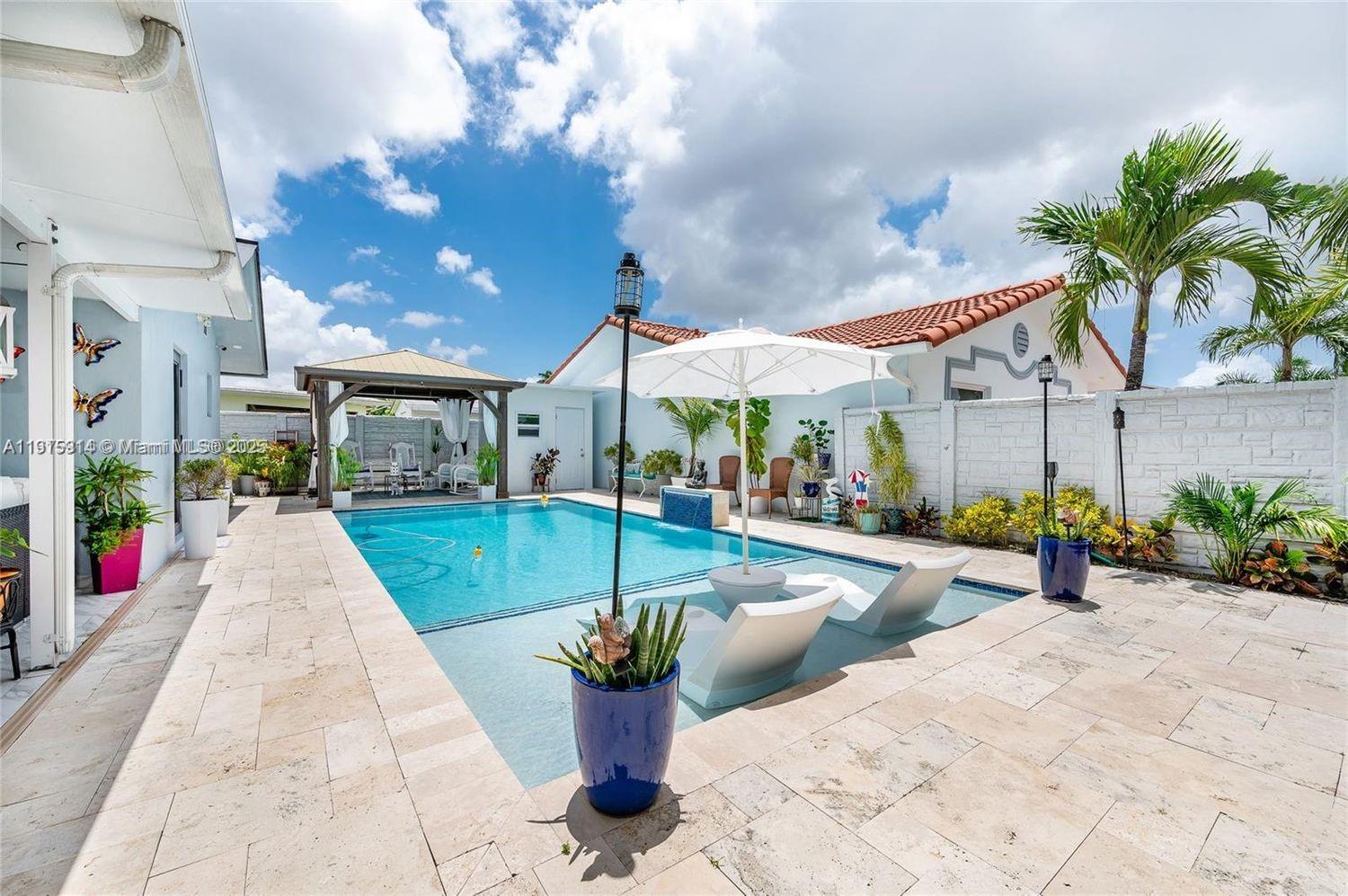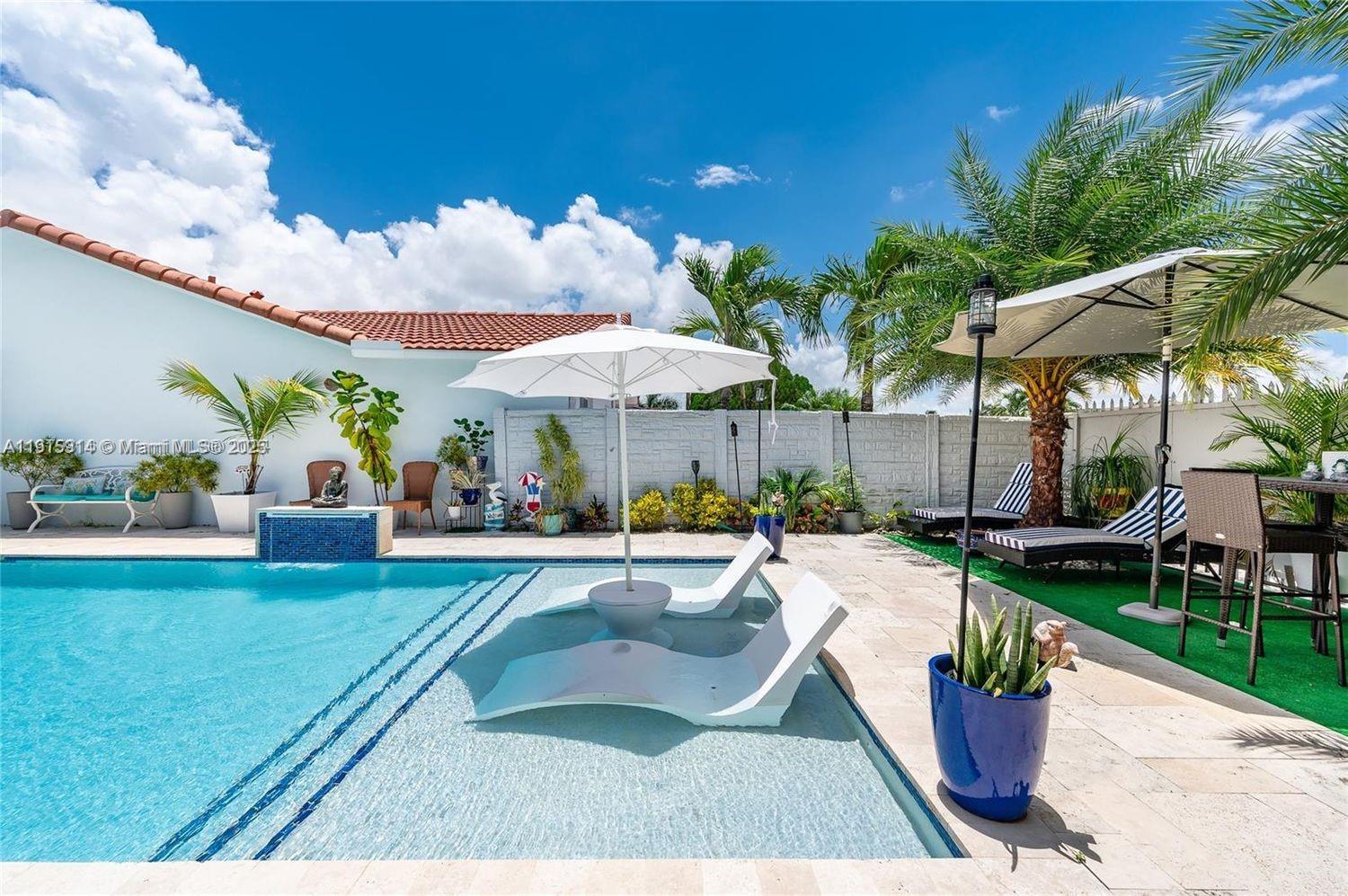 Prime Location! Remodeled home in sought-after location, close to 8th street, close proximity to Florida's Turnpike. Property offers the perfect blend of convenience and comfort living, won't last long. 4 bed and 3 bath corner home with modern driveway offering easy flowing layout, spacious rooms. New metal roof, impact doors and windows, new luxurious pool that is heated, outdoor pergola, new outdoor kitchen and appliances It also features newly renovated baths, with new AC units, installed tile flooring throughout the home, and the exterior is an oasis that can be accessed from the master bedroom as well. Property is fully fenced in with lots of privacy. Turn Key and Must see property!