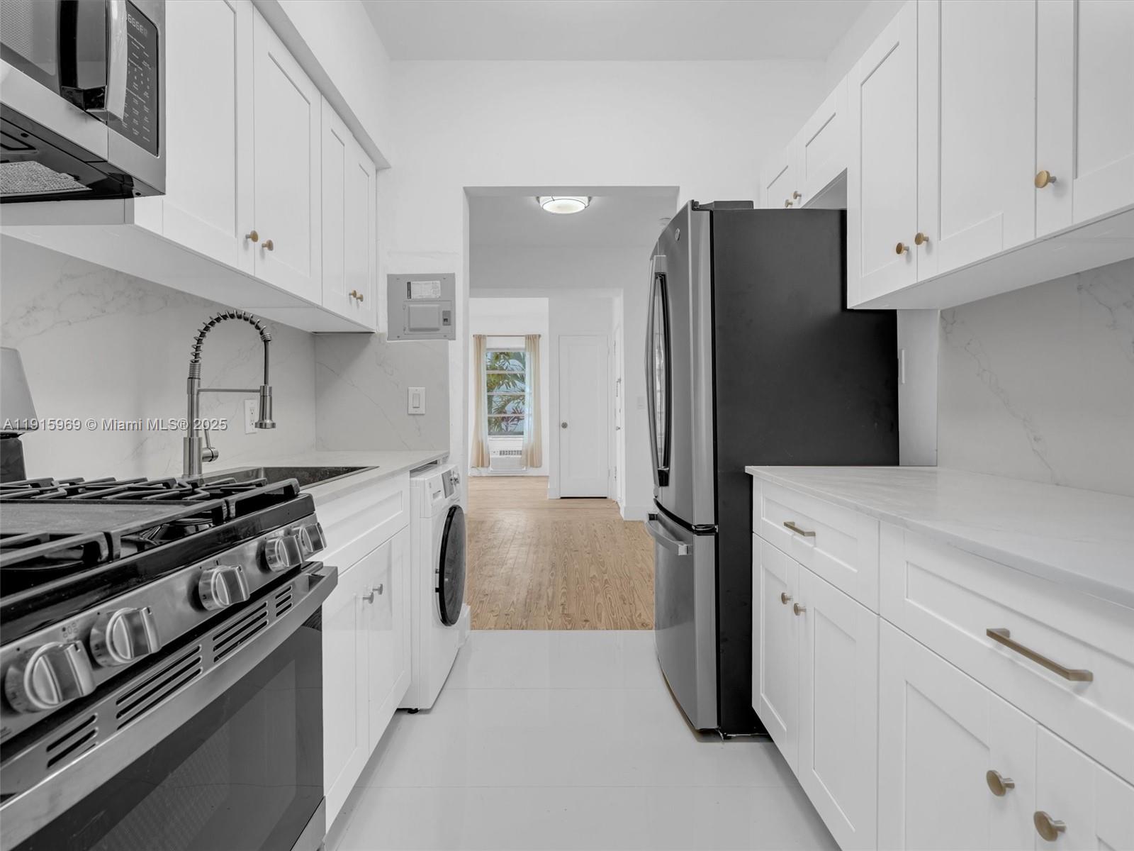 Incredibly charming and spacious one-bedroom condo available now. This newly updated gem is delivered unfurnished and features a gorgeous renovated kitchen with brand new appliances, beautifully refinished wood floors, fantastic natural light, in-unit washer/dryer, high ceilings, four large closets, updated bathroom and a versatile den that can be used as a dining room, office, or guest bedroom. Enjoy generously sized rooms perfect for entertaining, along with peaceful garden views from an abundance of windows. Ideally situated in a quiet, boutique Art Deco building on tree-lined Jefferson Ave—just blocks from Flamingo Park, the ocean, Lincoln Road, restaurants, and entertainment. Video available upon request. Schedule your showing today!