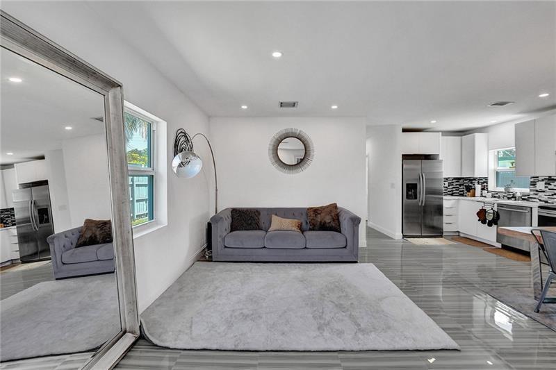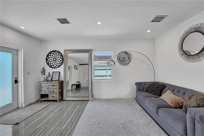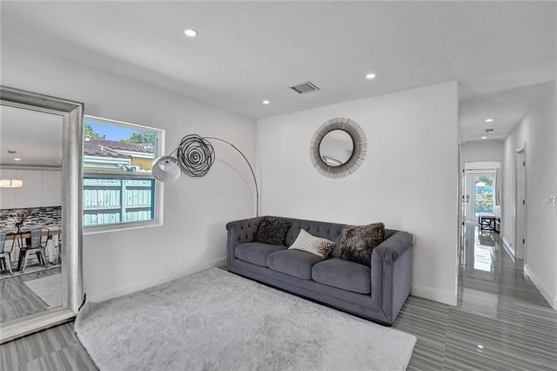 Beautifully updated 3 bedroom, 2 bath single-family home located in a desirable residential neighborhood. This property features a fully remodeled kitchen with stainless steel appliances, modern cabinetry, and updated bathrooms with quality finishes. Marble floors run throughout the home, complemented by central A/C and impact windows for comfort and security. A spacious den/bonus room provides the flexibility of a 4th bedroom, office, or additional living area. The large fenced-in backyard offers plenty of room for entertaining, pets, or future outdoor additions, and the paver driveway provides ample parking. Centrally located close to restaurants, shopping, major roadways, and just 10–15 minutes from the beaches, this home offers convenience, space, and move-in ready updates.