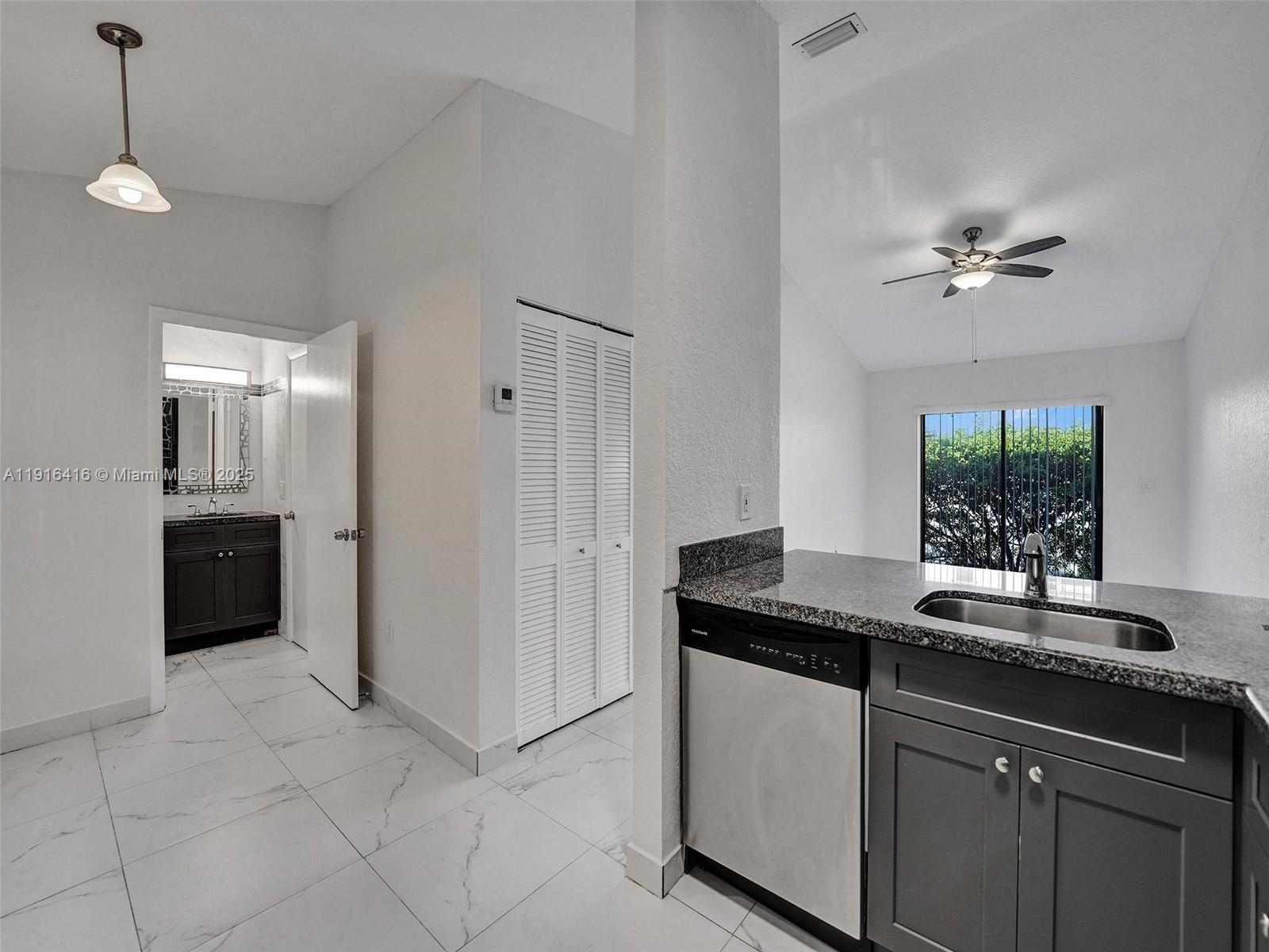 Beautifully renovated Redondo Villas unit in East Hollywood! This 1BR villa-style apartment features new porcelain tile throughout, a modern kitchen with granite countertops, all stainless-steel appliances including a built-in microwave, dishwasher, and the convenience of an in-unit washer/dryer. Enjoy central A/C, a private outdoor patio, and reserved parking. Located next to a private golf course in a serene community with an in-ground pool. A must-see!