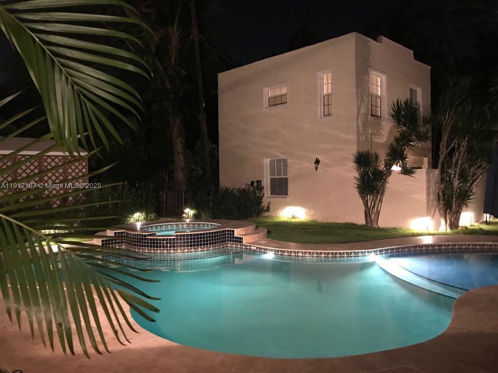 Exquisite 1920s Grand Spanish Home with Guest Cottage. Step into timeless elegance with this beautifully restored 1920s Spanish-style home, a true architectural gem. The main house features 4 bedrooms and 3.5 baths, showcasing authentic encaustic tile, handcrafted stone floors and walls, and hand-painted coffered ceilings and a stunning kitchen with top-quality finishes. The property also includes a separate 2-bedroom, 2-bath cottage, ideal for guests, extended family, or a private office space and a beautiful pool side courtyard for relaxing. This residence comes fully furnished, with pool and lawn service included in the rent. Located minutes from Miracle Mile, Coconut Grove, Coral Gables, Brickell, and Miami International Airport. Short-term lease available.