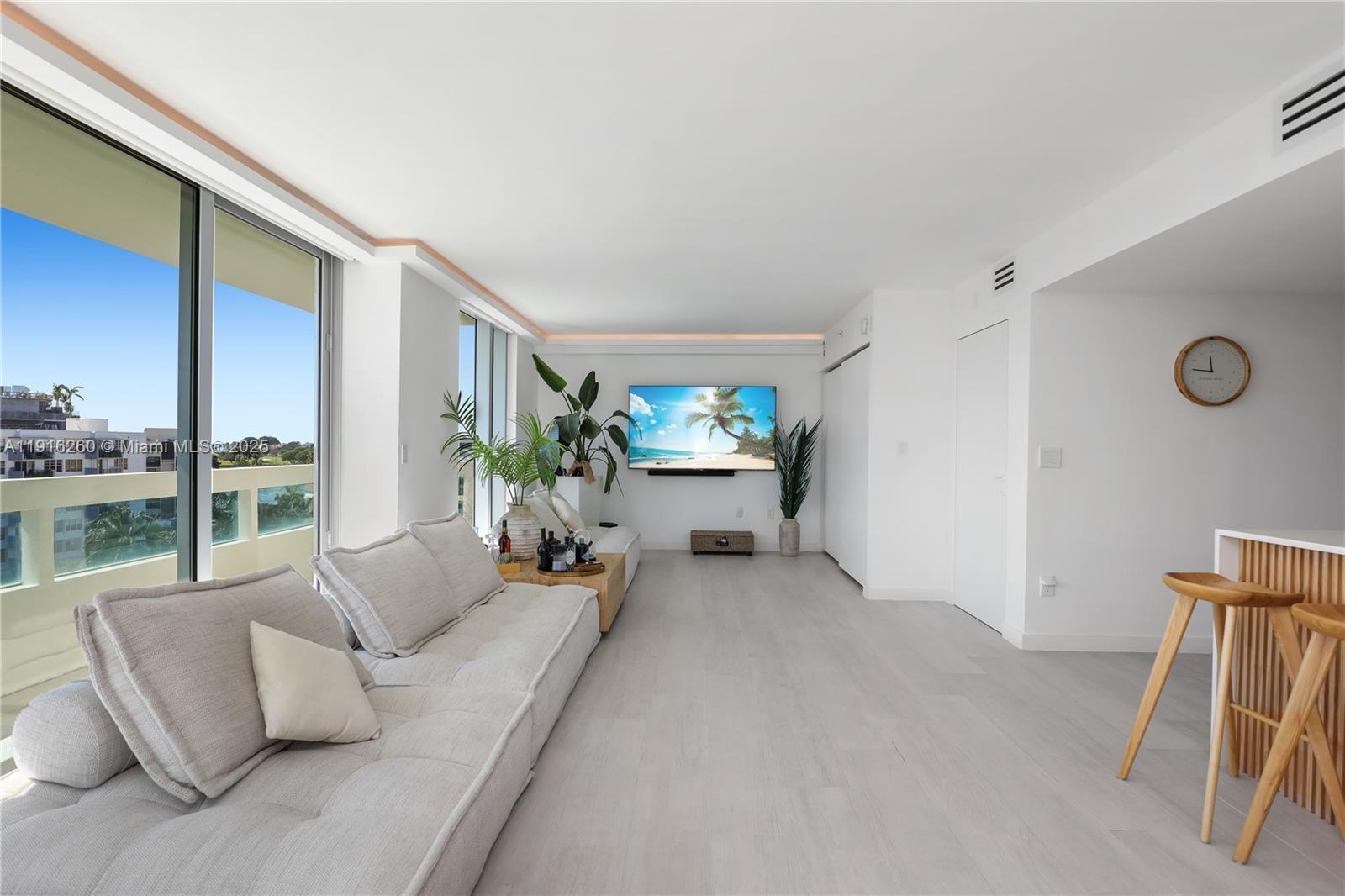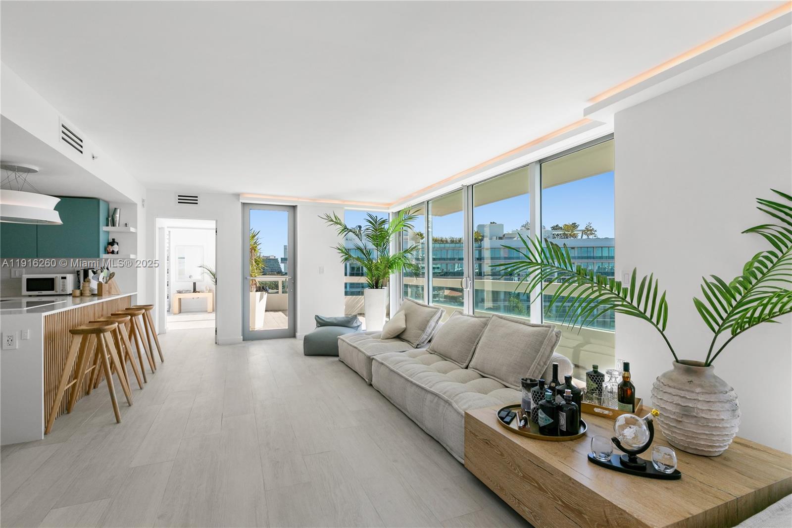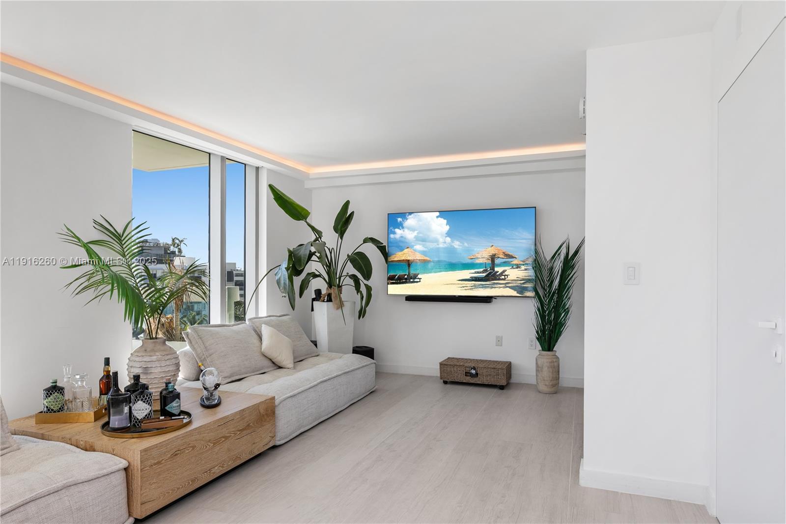 Experience luxury island living in this beautifully furnished (with kitchen amenities) and newly remodeled large 1-bedroom, 2-bath Penthouse Floor residence in the heart of Bay Harbor Islands. This spacious modern condo features elegant designer finishes, a brand-new Bosch refrigerator, electric blinds, curated designer furniture, and an amazing spacious balcony ideal for relaxing or entertaining. Floor-to-ceiling windows fill the space with natural light, highlighting the open-concept layout and sophisticated lighting design. Enjoy resort-style amenities including a rooftop infinity pool, jacuzzi, BBQ and entertainment areas with panoramic skyline views. The boutique building also offers a stylish lobby, fitness area, and secure 2-car tandem garage parking. Available move in Jan 1, 2026